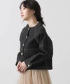 ノーカラーのすっきりした衿元と着丈短めのコンパクトなフォルムは、スカートやワイドパンツとも好相性。アウターとしてはもちろん、アウターインでも活躍するのでロングシーズン楽しめます。