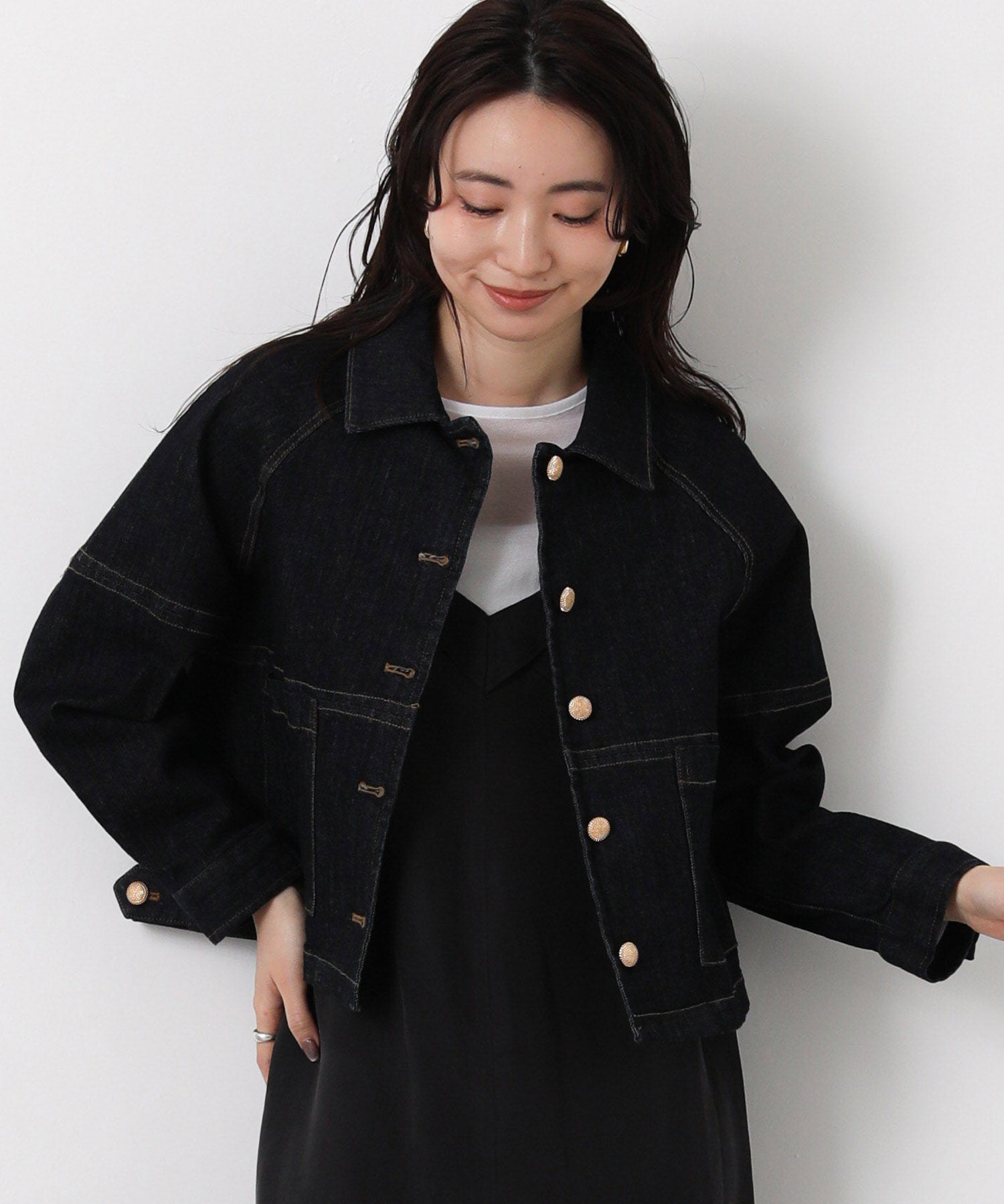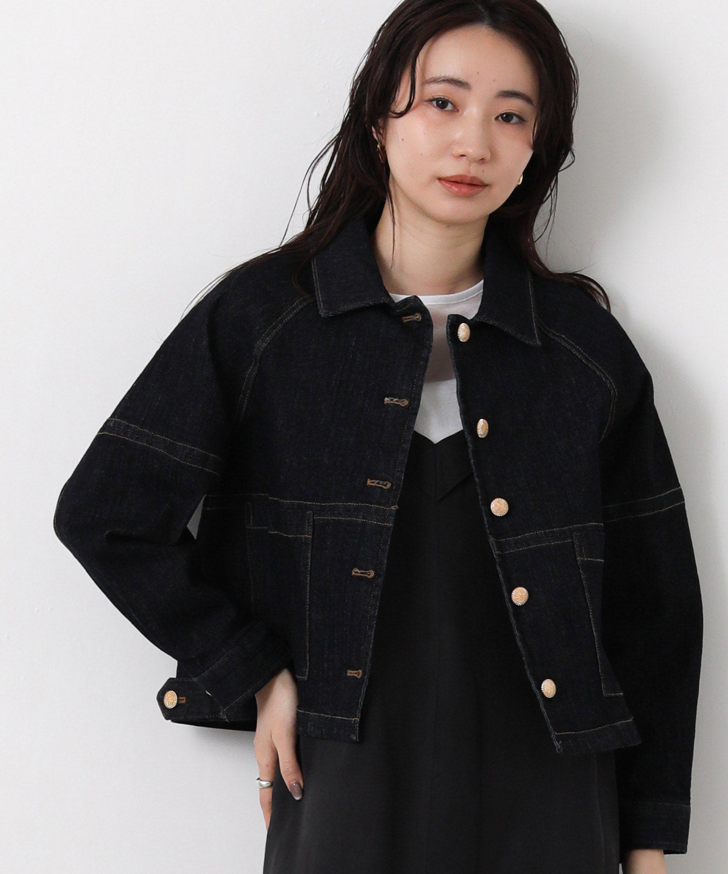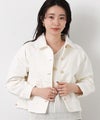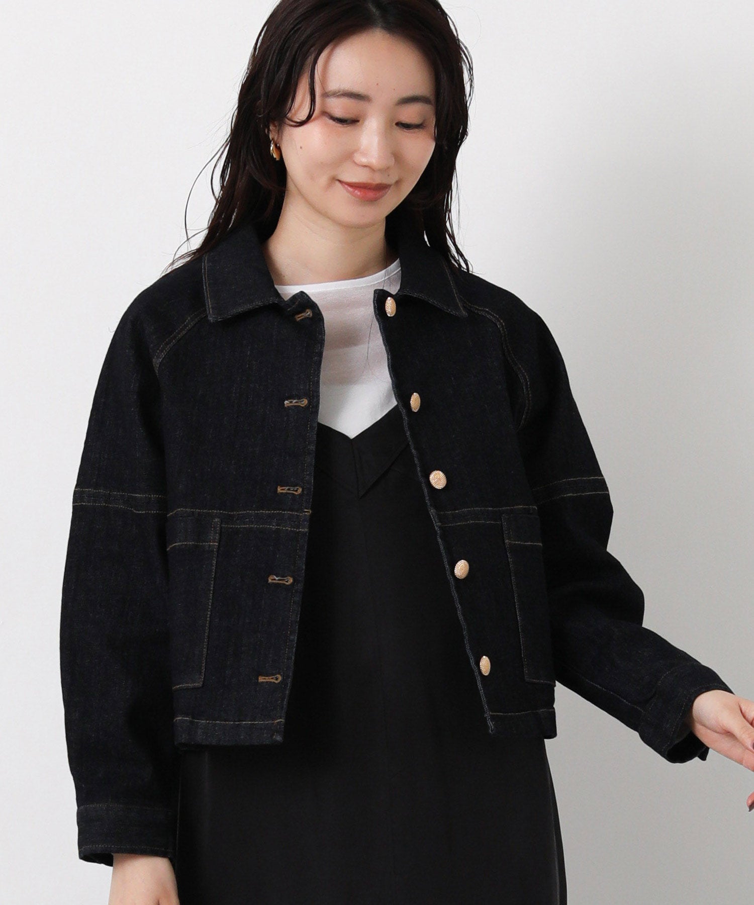 デニムのカジュアル感を楽しみつつ、女性らしい着こなしにもマッチするGジャン。襟付きだと、前を開けて着た時にサマになります。存在感のあるゴールド釦や配色ステッチがポイントでシンプルになり過ぎず、ストレッチが効いているので着心地が良いのも特徴です。