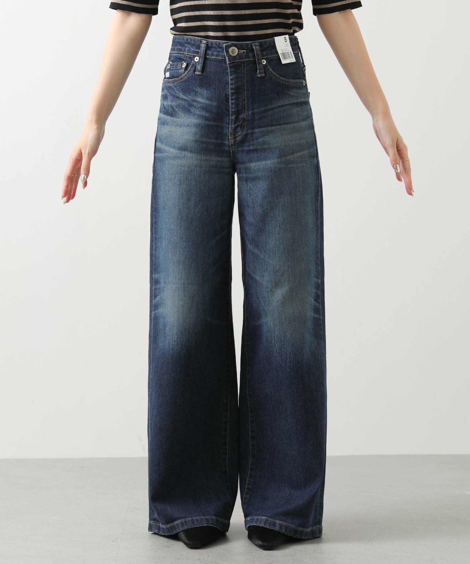 ハイウエストでしっかりとフィットした腰回りが、ワイド特有の着太りを解消。
