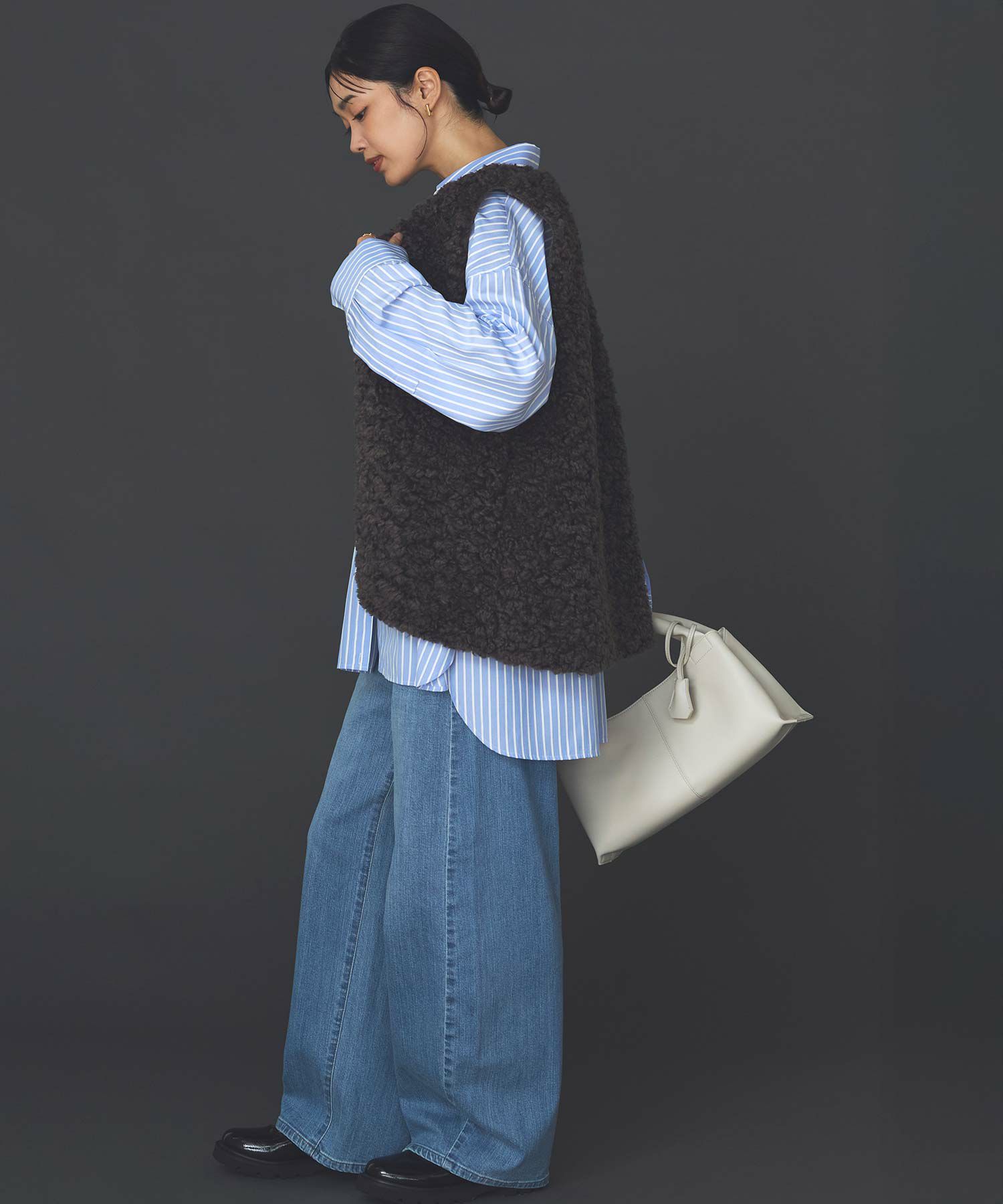 ※着用画像は撮影状況、光の当たり具合で色みが違って見える場合がございます。実際の色みについては、画像一覧の最後に掲載している詳細画像をご参照ください。