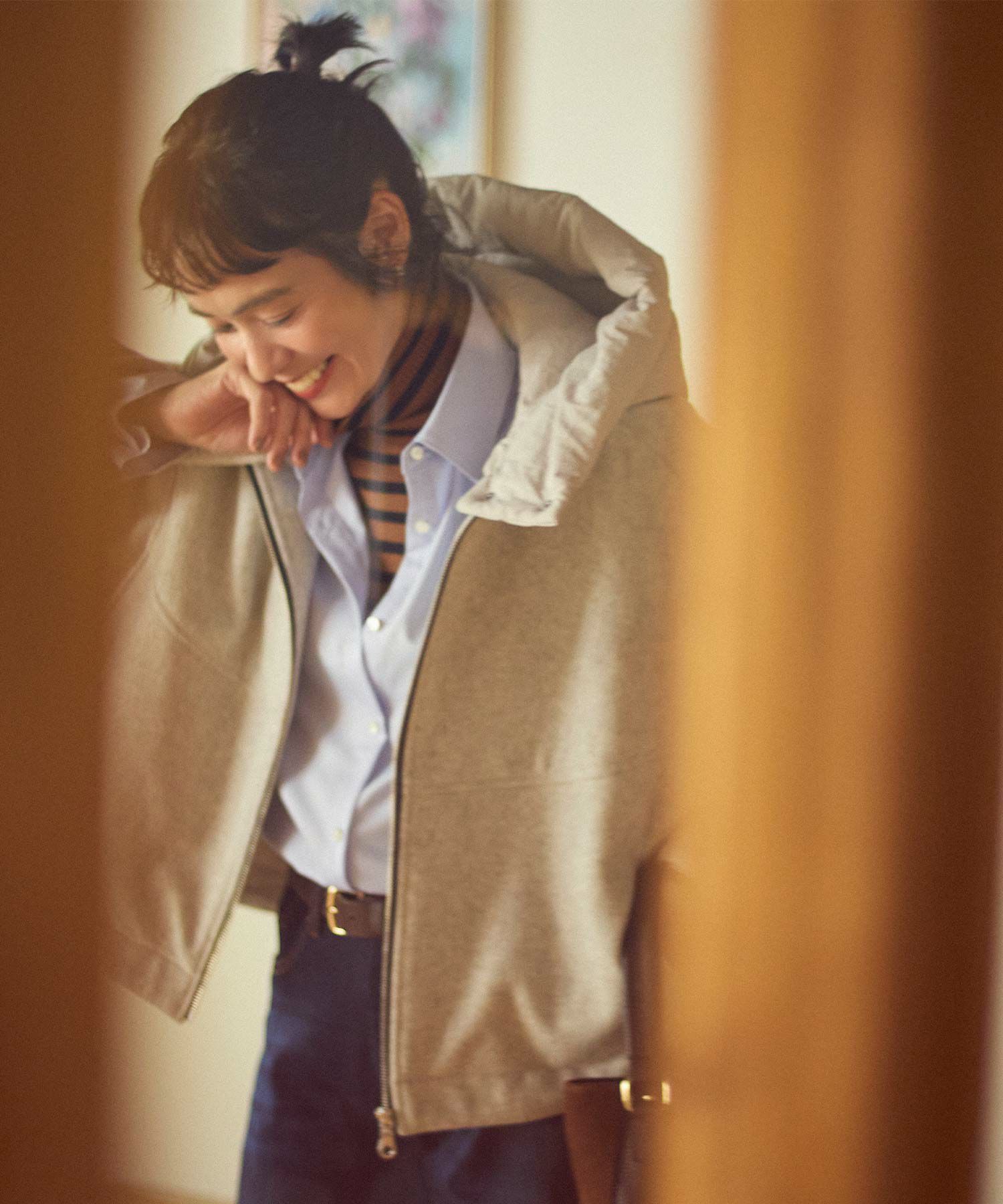 ※着用画像は撮影状況、光の当たり具合で色みが違って見える場合がございます。実際の色みについては、画像一覧の最後に掲載している詳細画像をご参照ください。