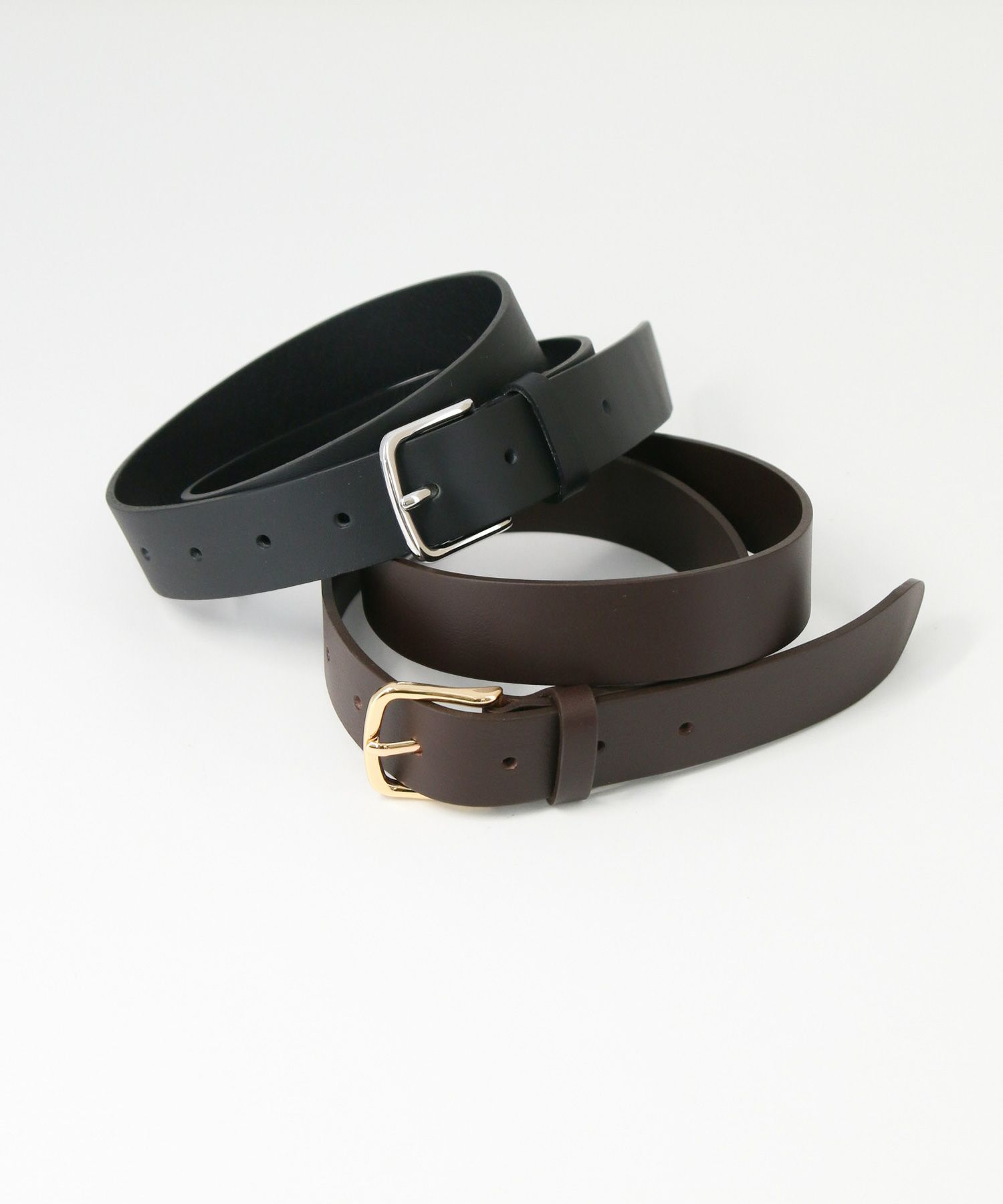 ブラックにはシルバー、ブラウンにはゴールドのバックルでスタイリングのアクセントに。
