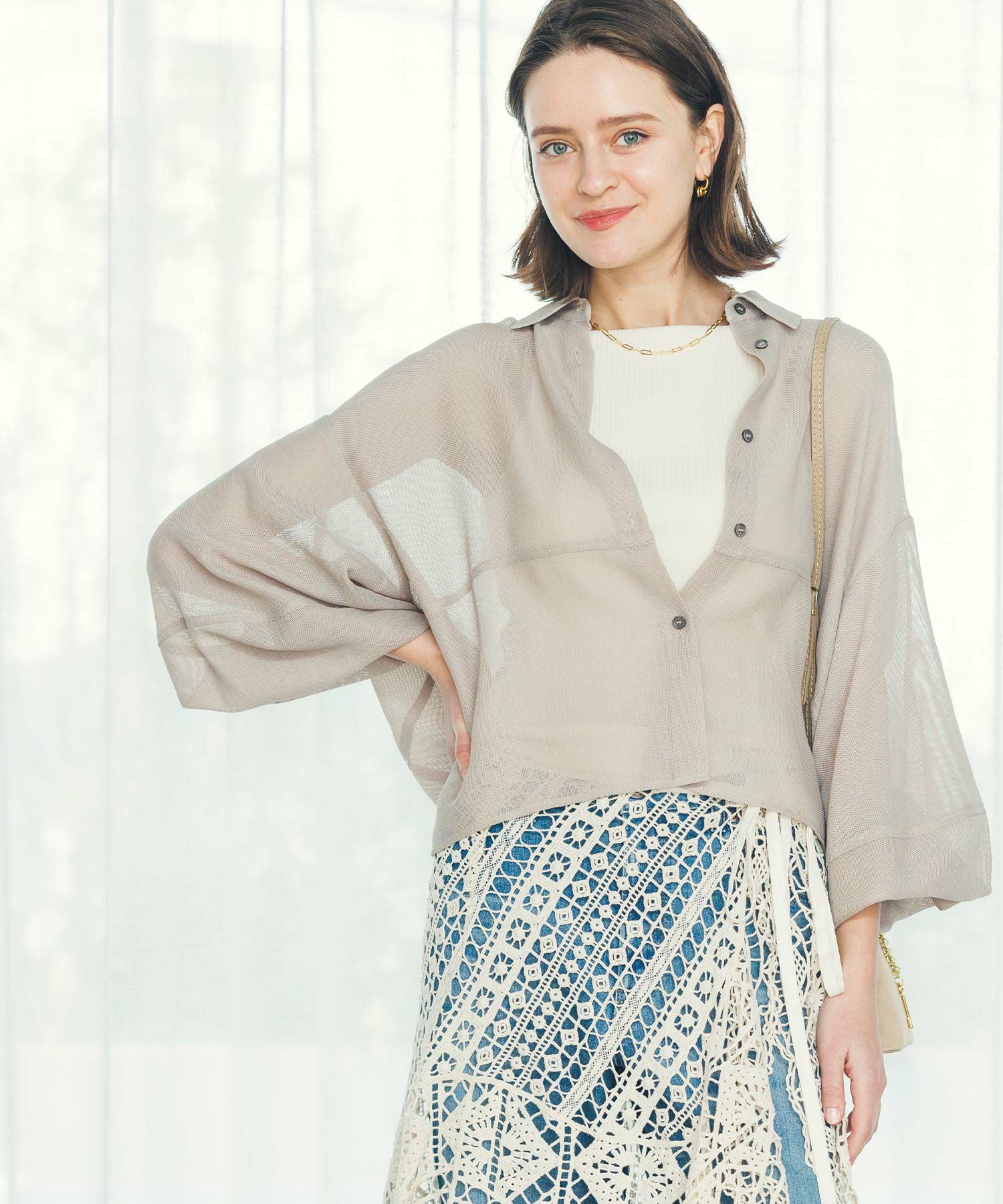 ※着用画像は撮影状況、光の当たり具合で色みが違って見える場合がございます。実際の色みについては、画像一覧の最後に掲載している詳細画像をご参照ください。