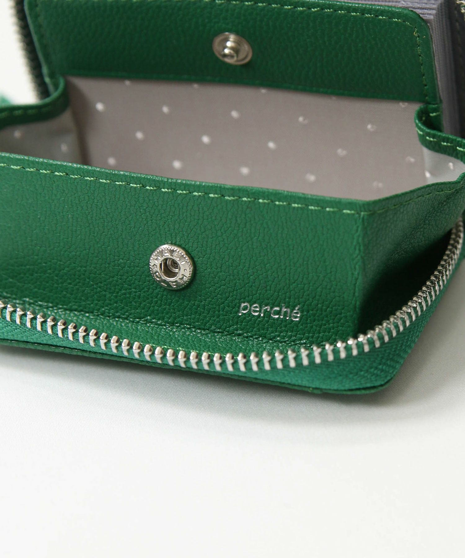 スマホストラップにもなるPercheのグレディー別注ミニウォレット。