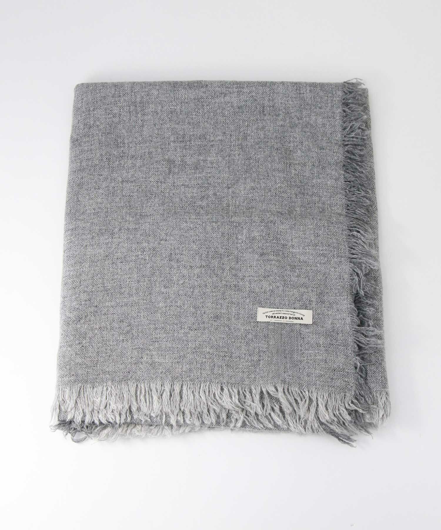 幅広のストールは肩掛け用としても首に巻いてもサマになる万能アイテム。