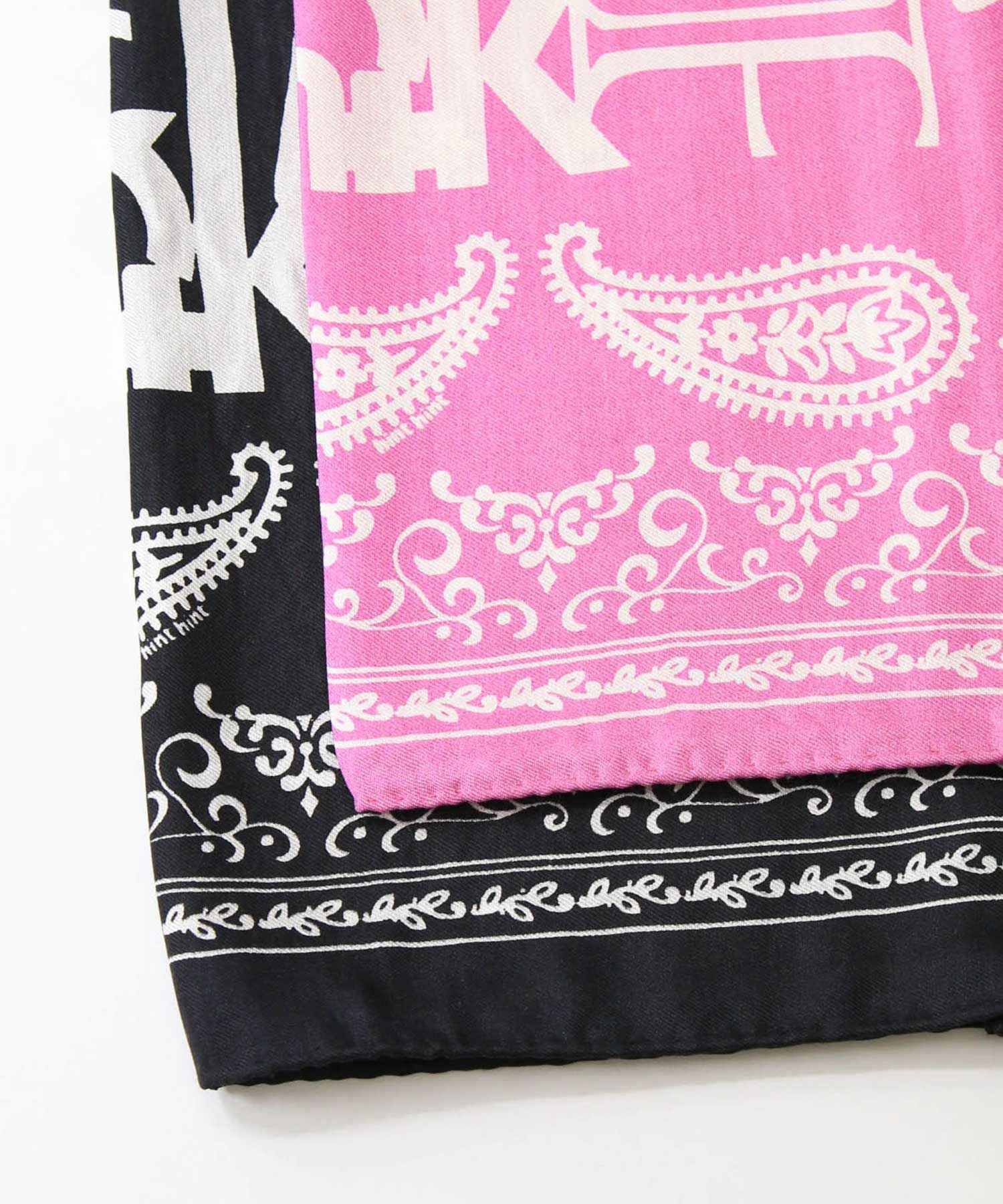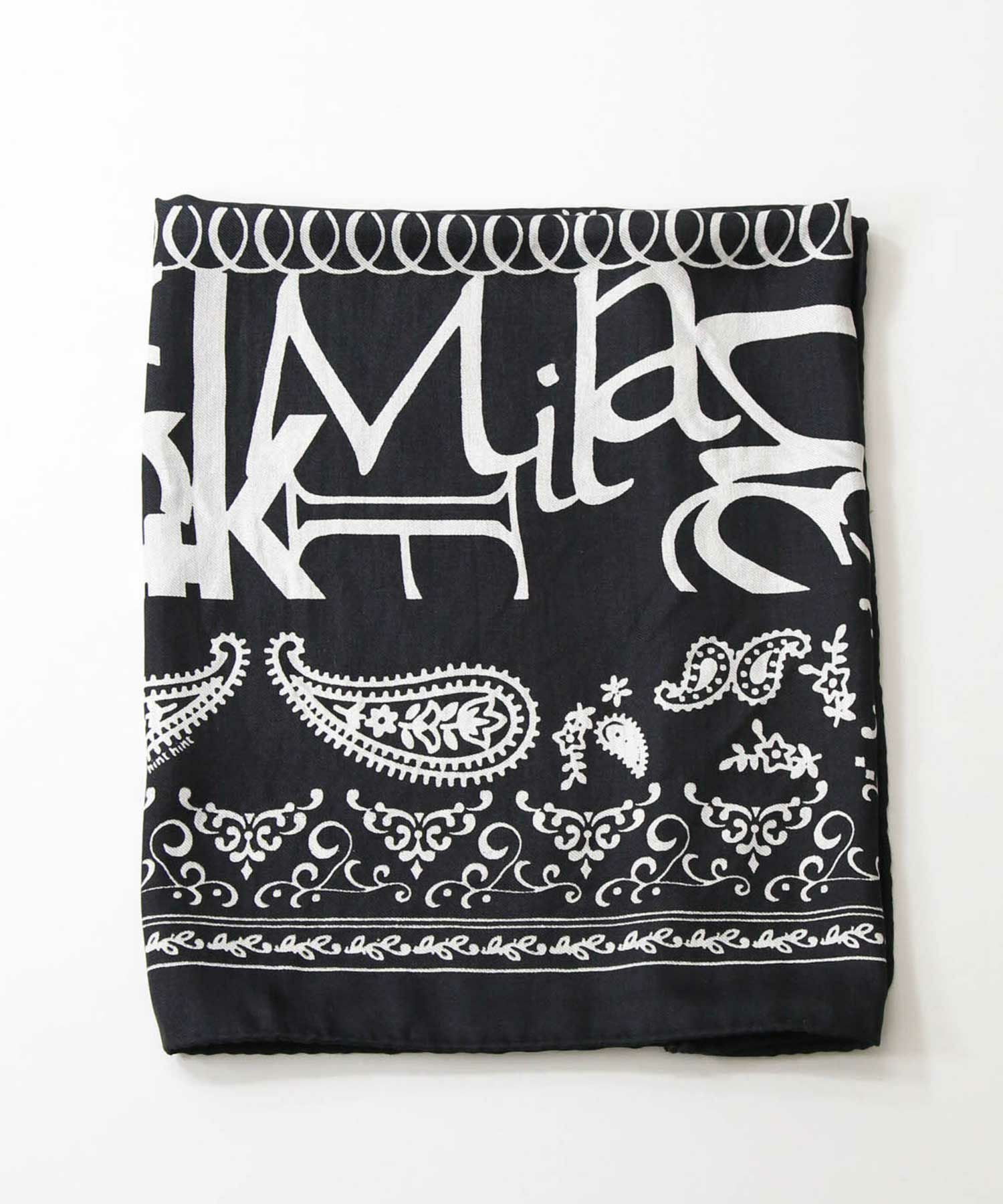 ラフなタッチで描かれたペイズリーやオリエンタルな柄がキャッチーで、スタイリングのポイントになるスカーフ。