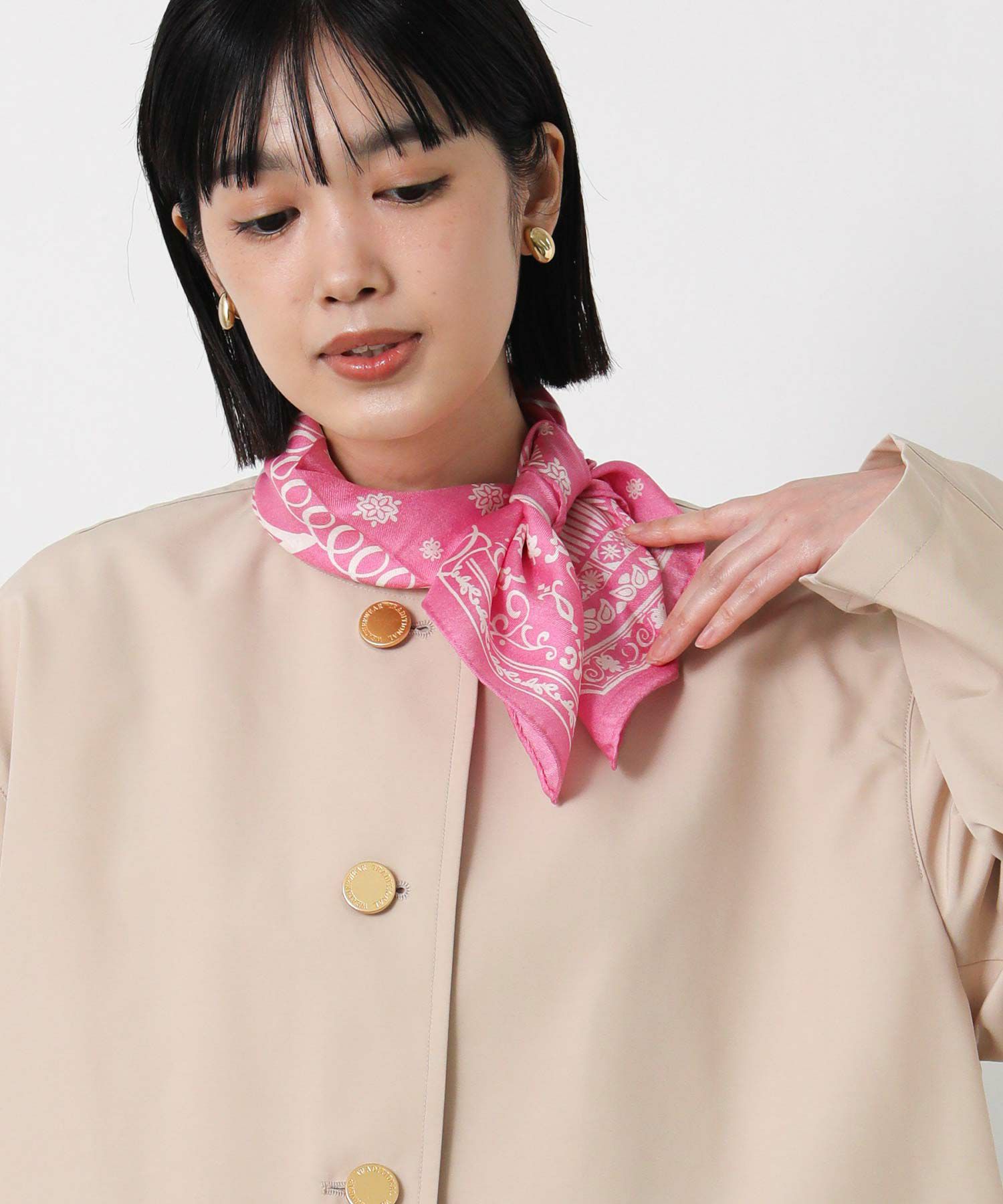 ラフなタッチで描かれたペイズリーやオリエンタルな柄がキャッチーで、スタイリングのポイントになるスカーフ。