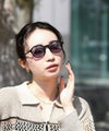 日光に当てるとレンズの色が変わる調光レンズサングラス。