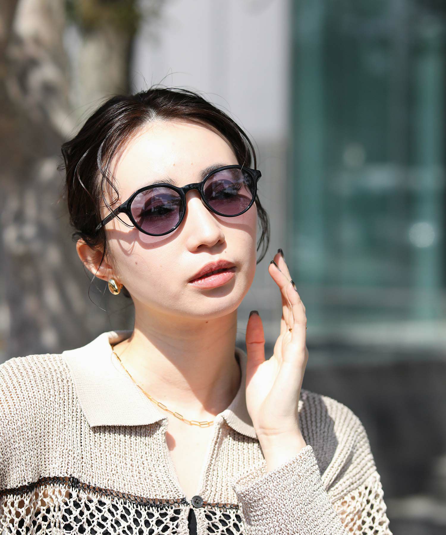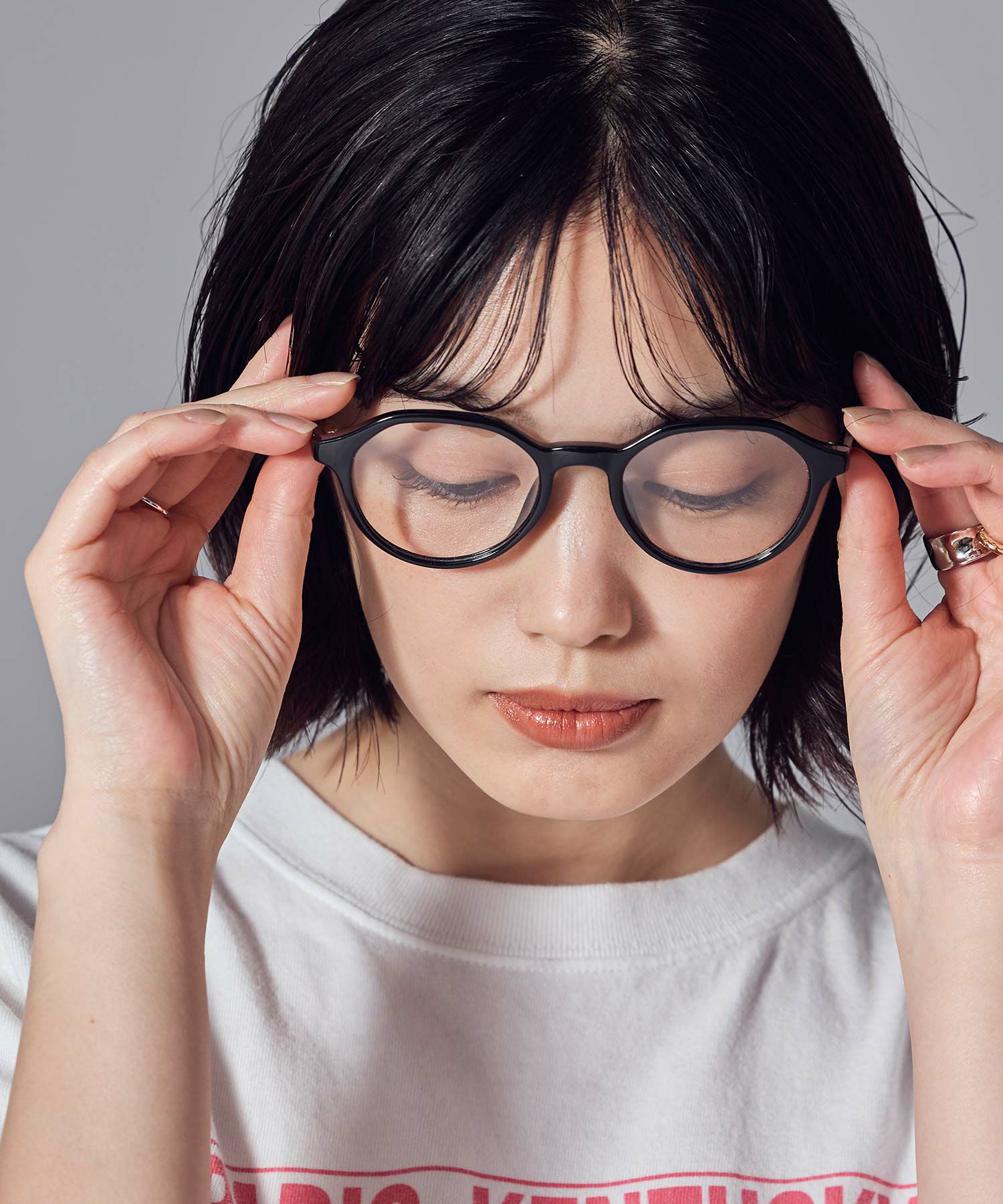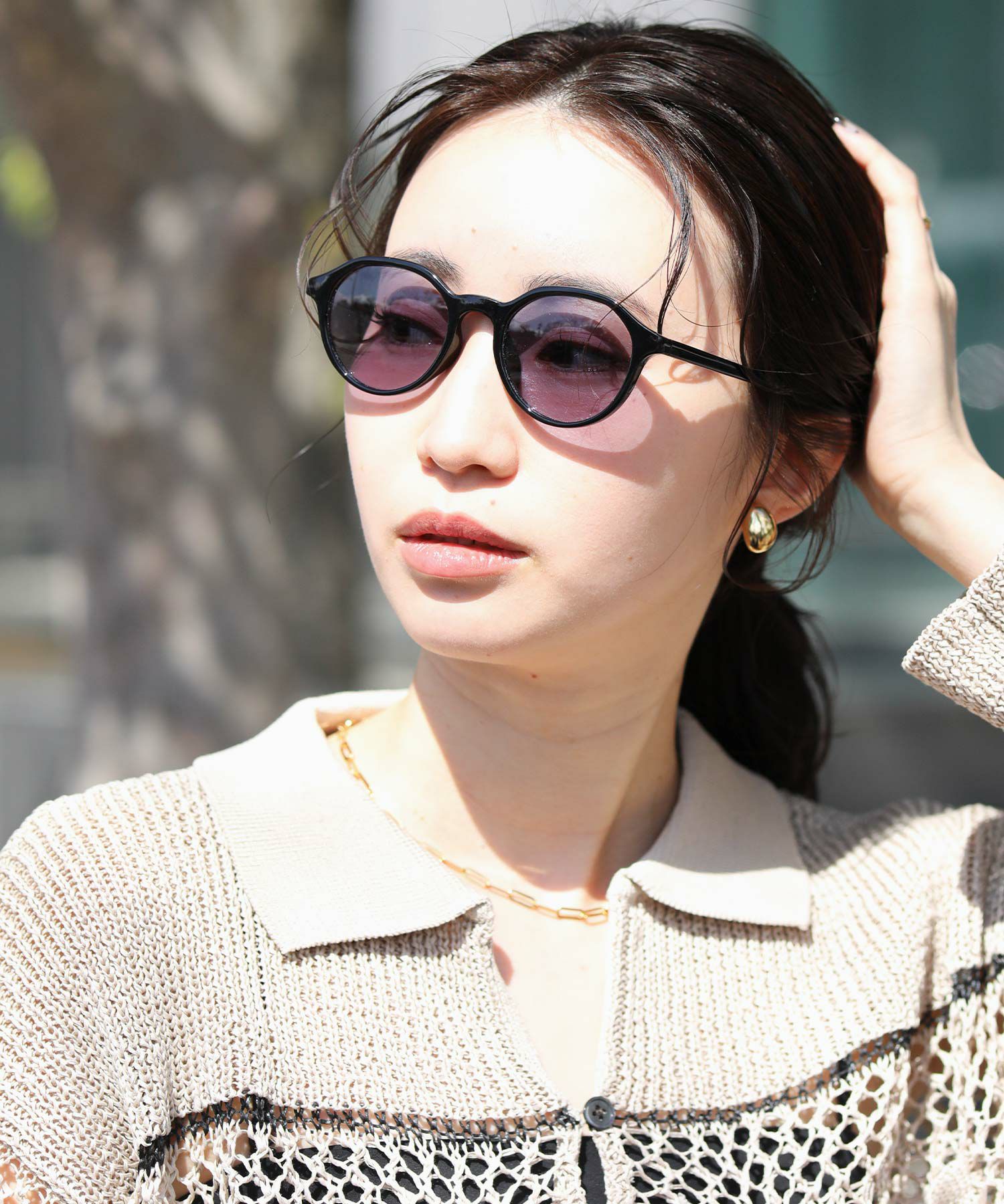 室内ではクリアレンズになるので、スタイリングのポイントとして使える汎用性の高いアイテム。