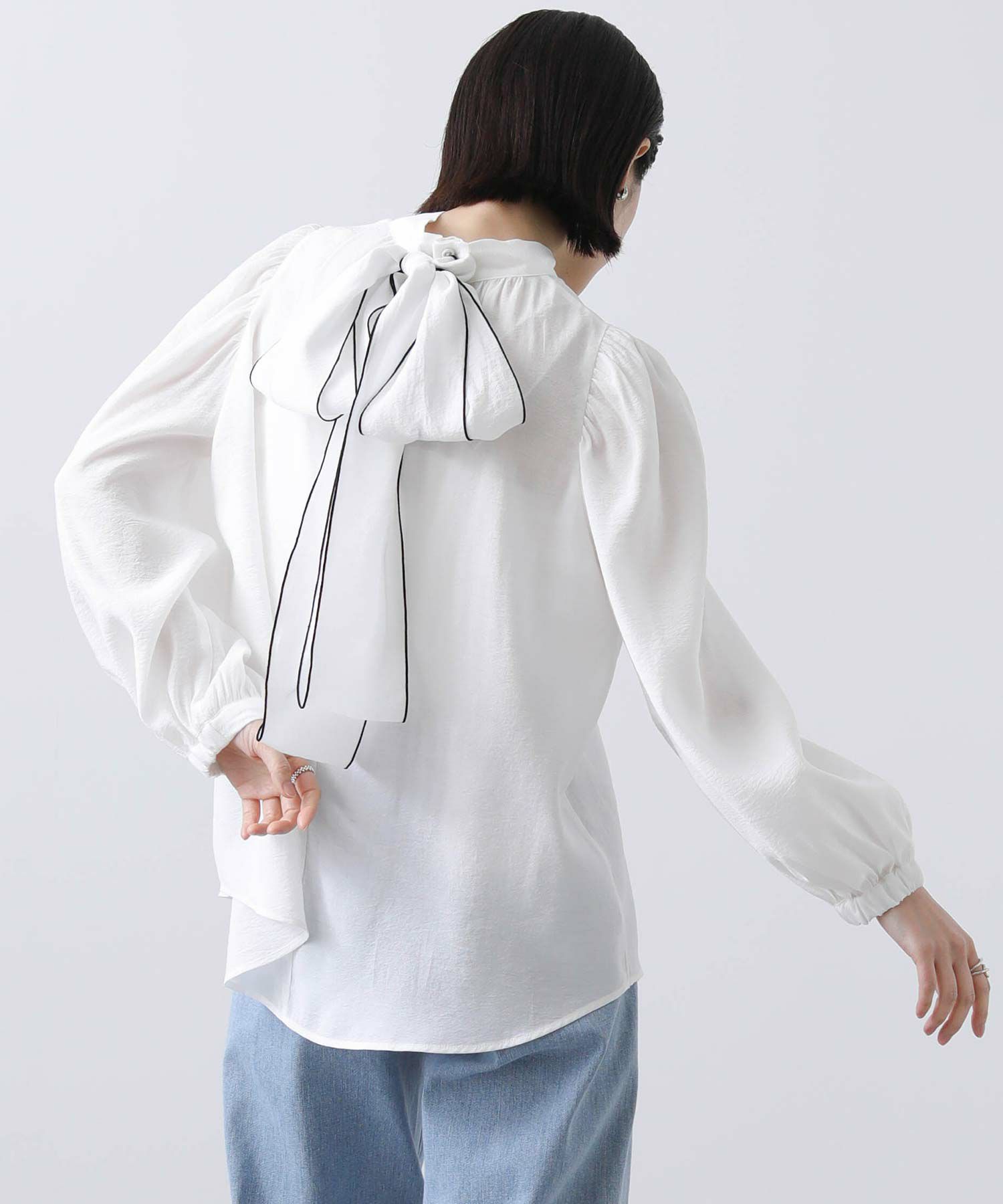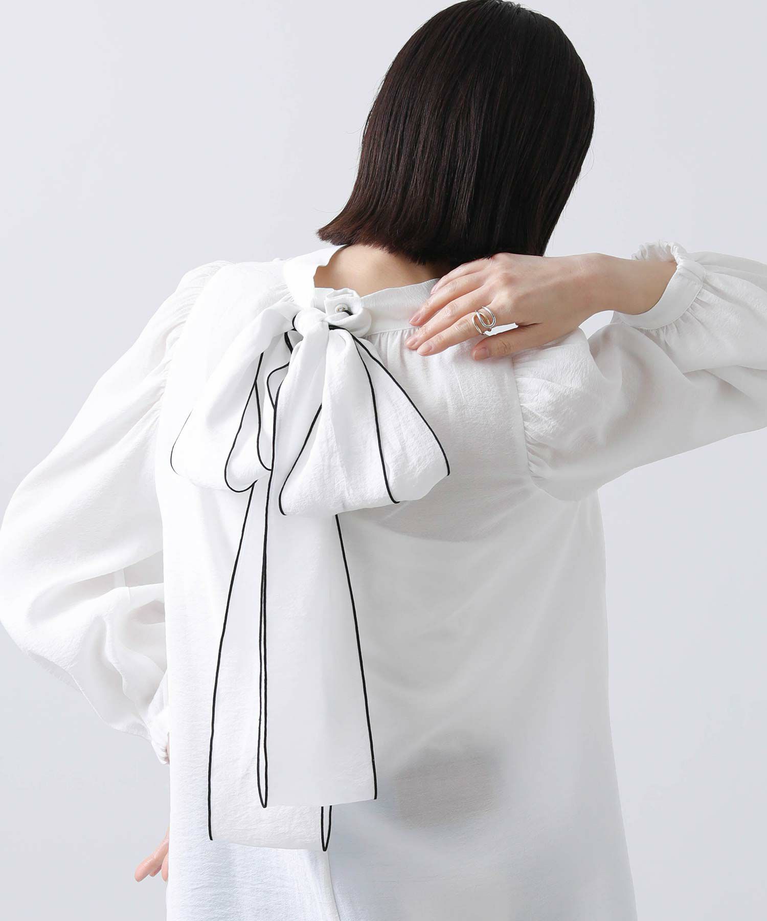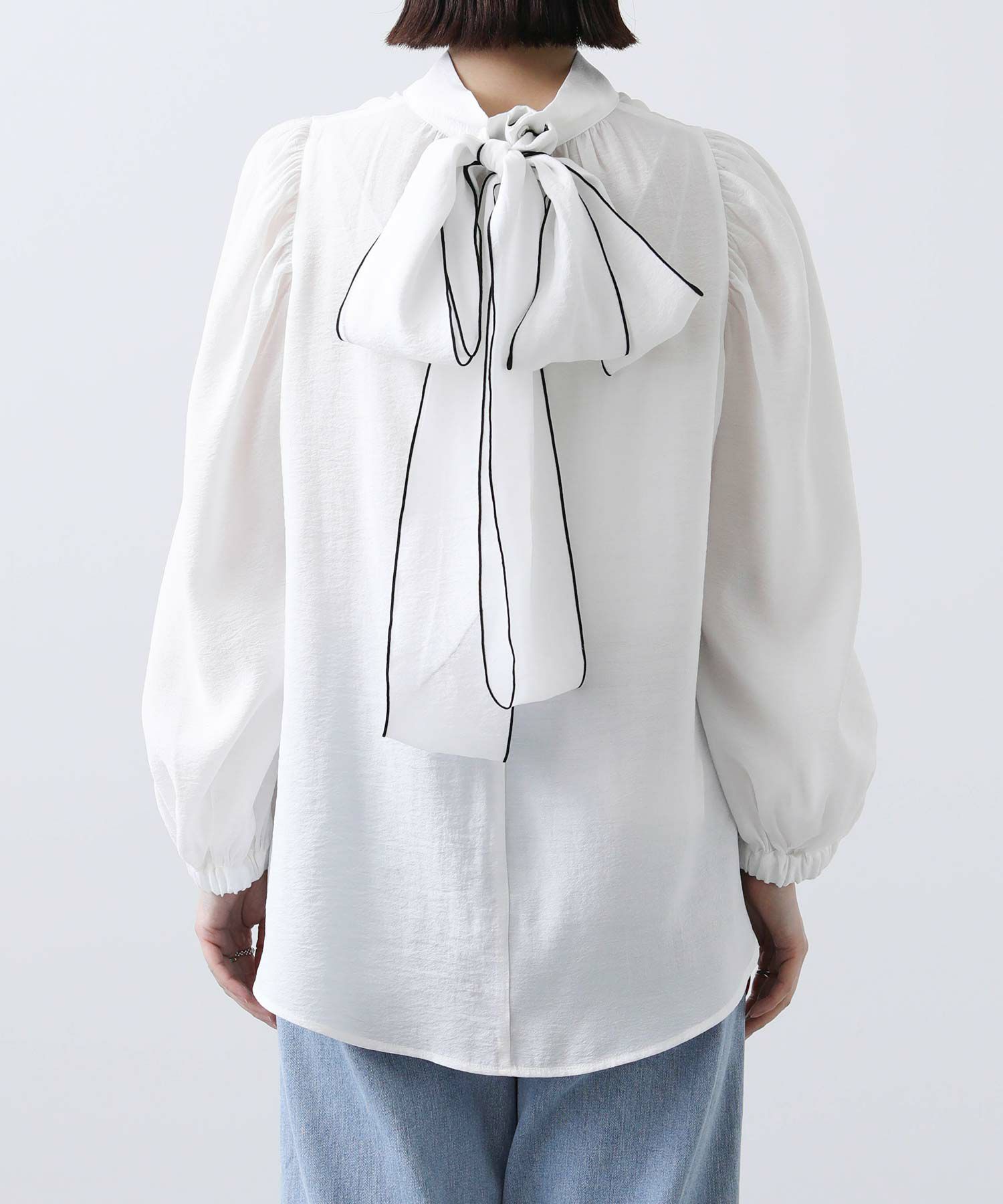 春らしいシアーの風合いが軽やかなリボンブラウス。