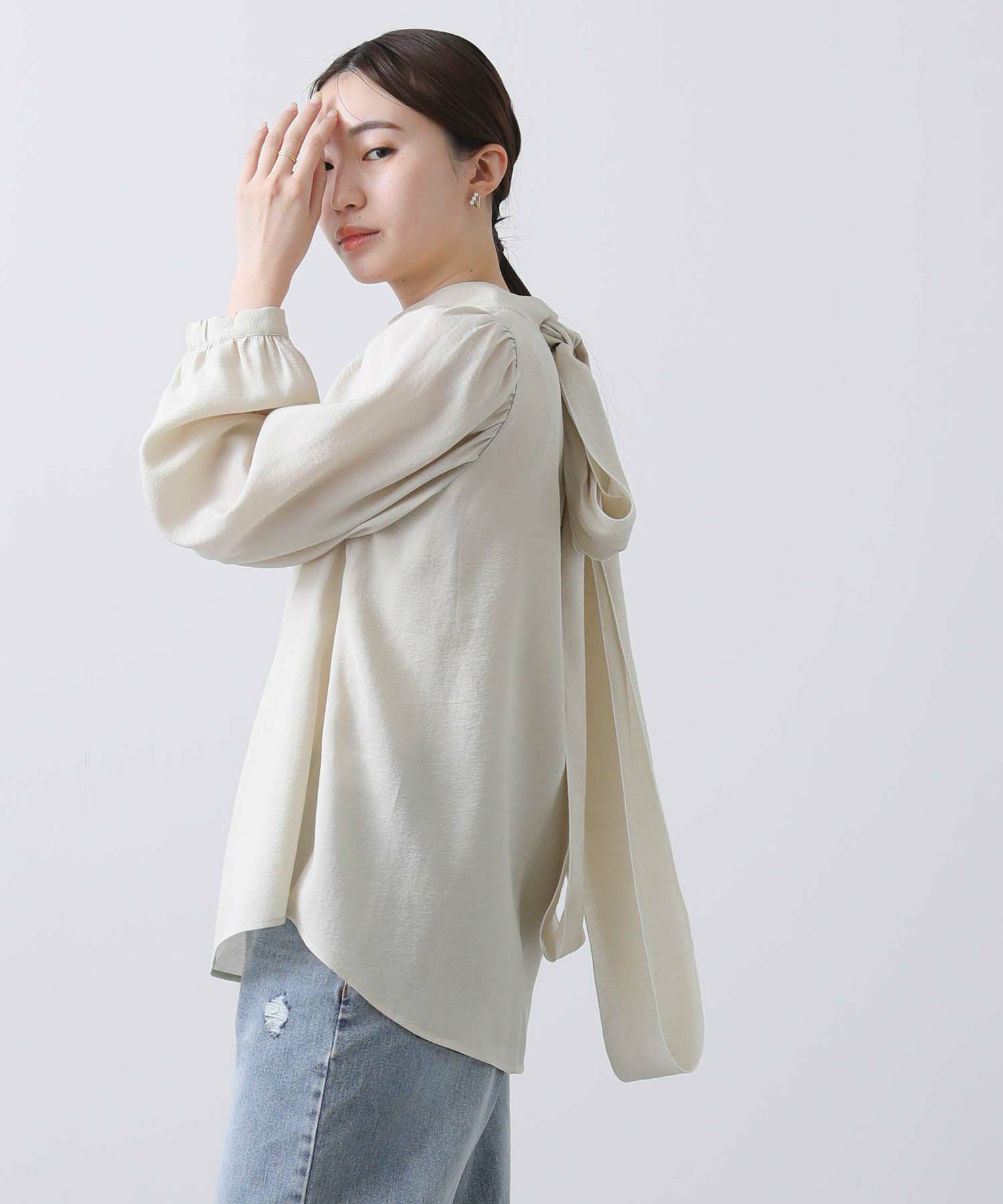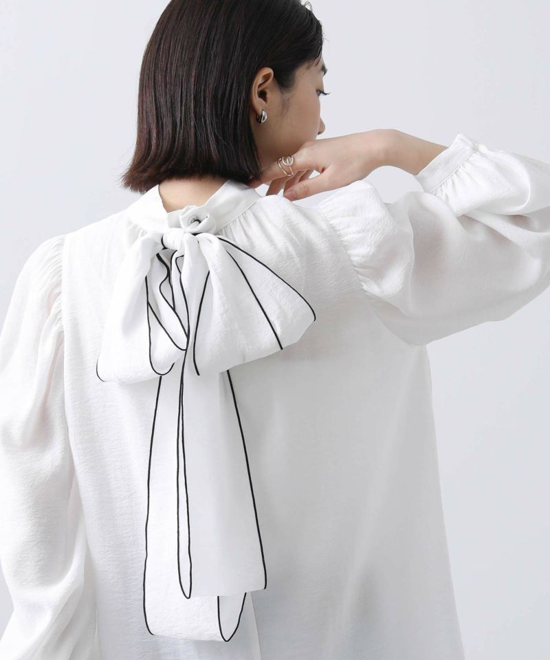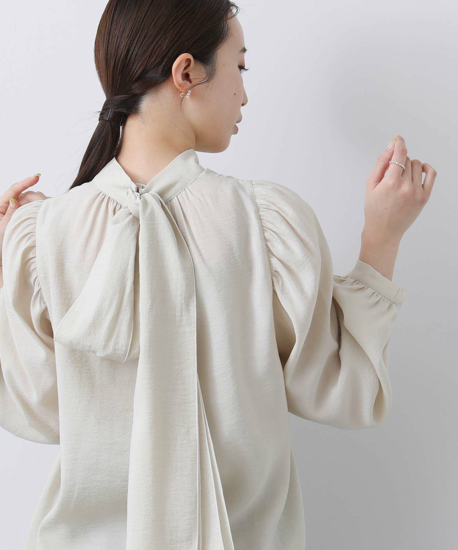 春らしいシアーの風合いが軽やかなリボンブラウス。