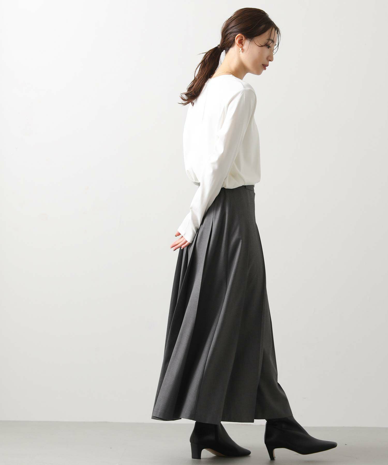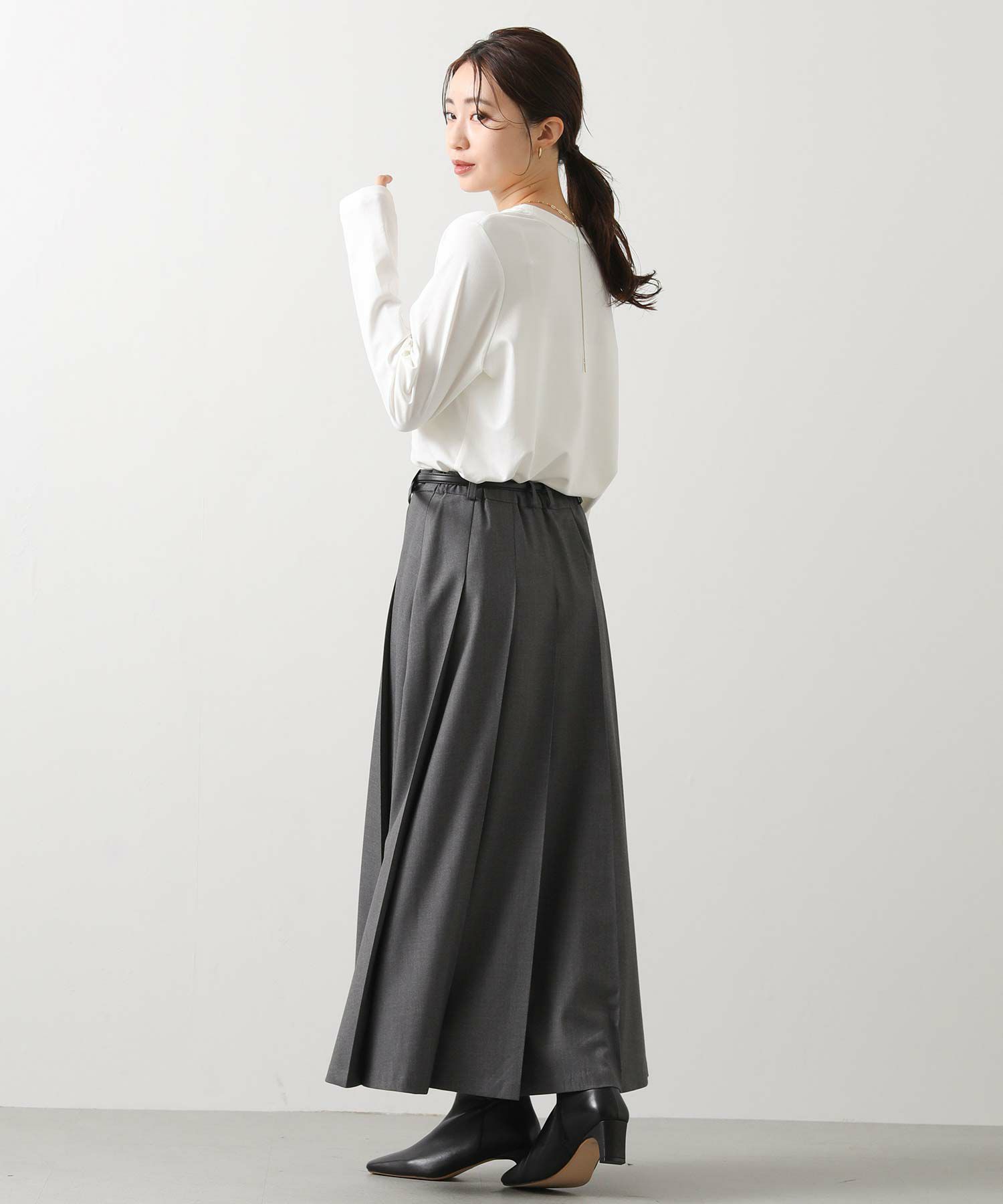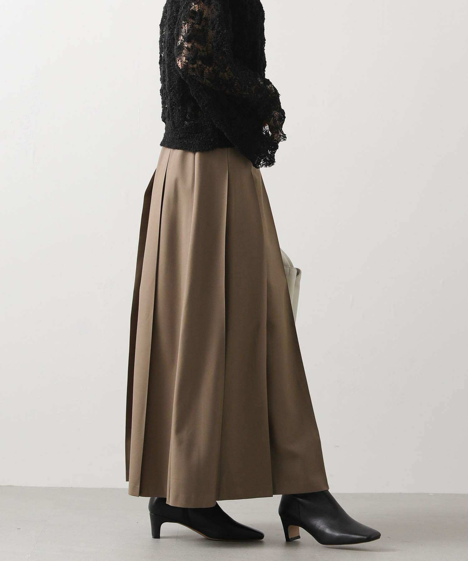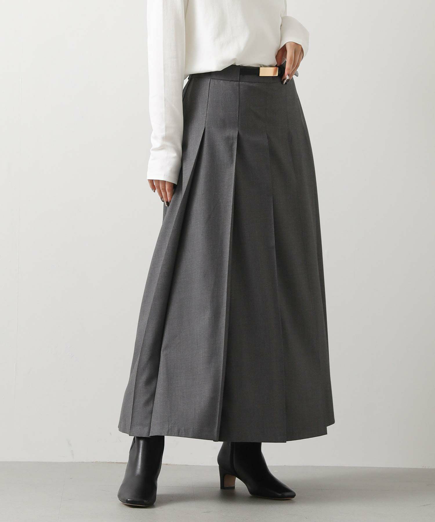 今季トレンドのワイドプリーツがトラッドでクラシカルな印象のスカート。