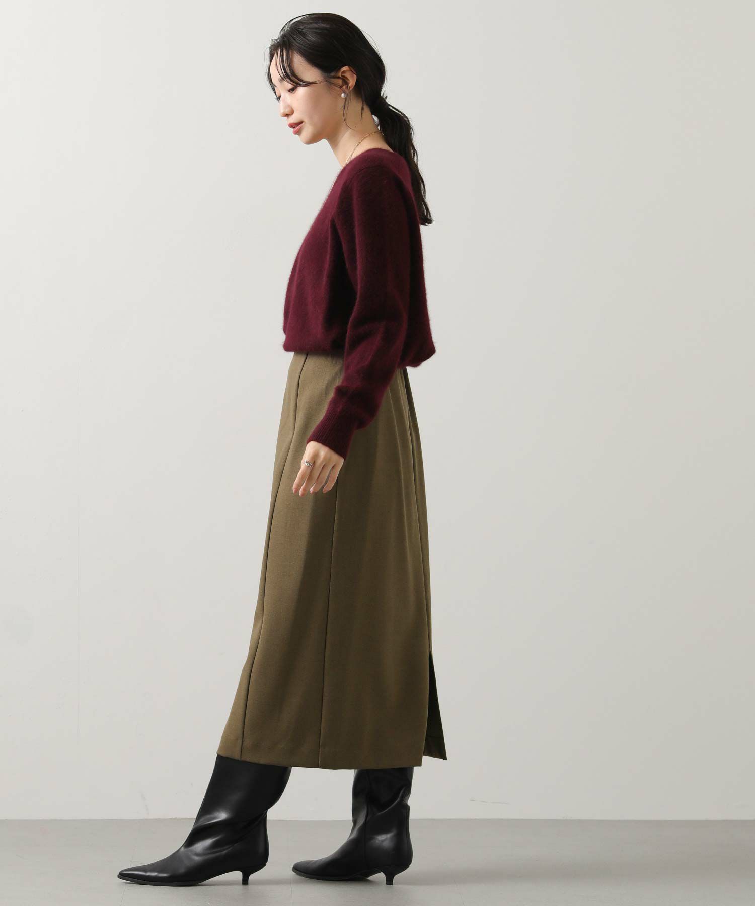 ラップスカートを外せば、シンプルなタイトスカートとしても着用できる2WAY仕様です。