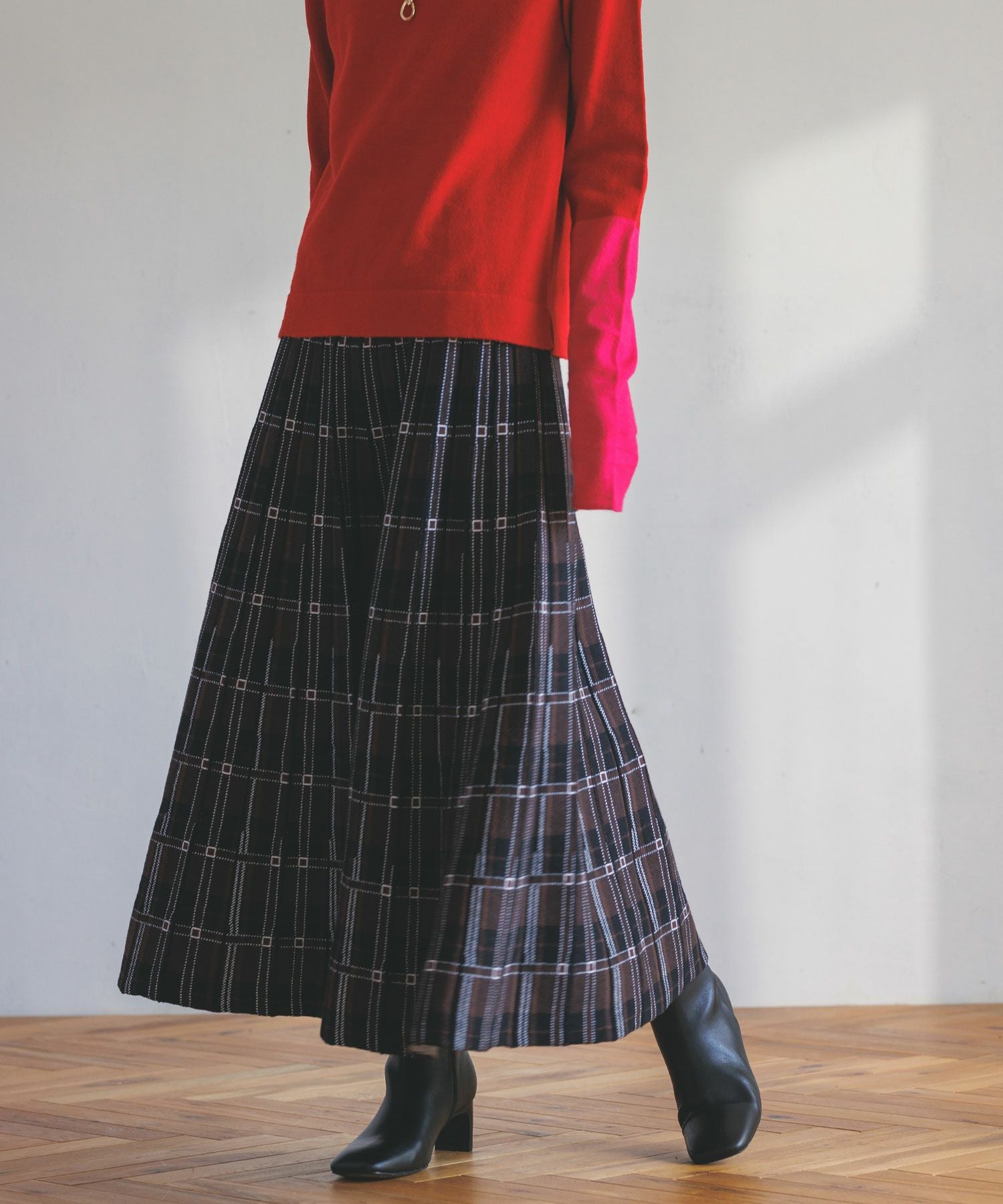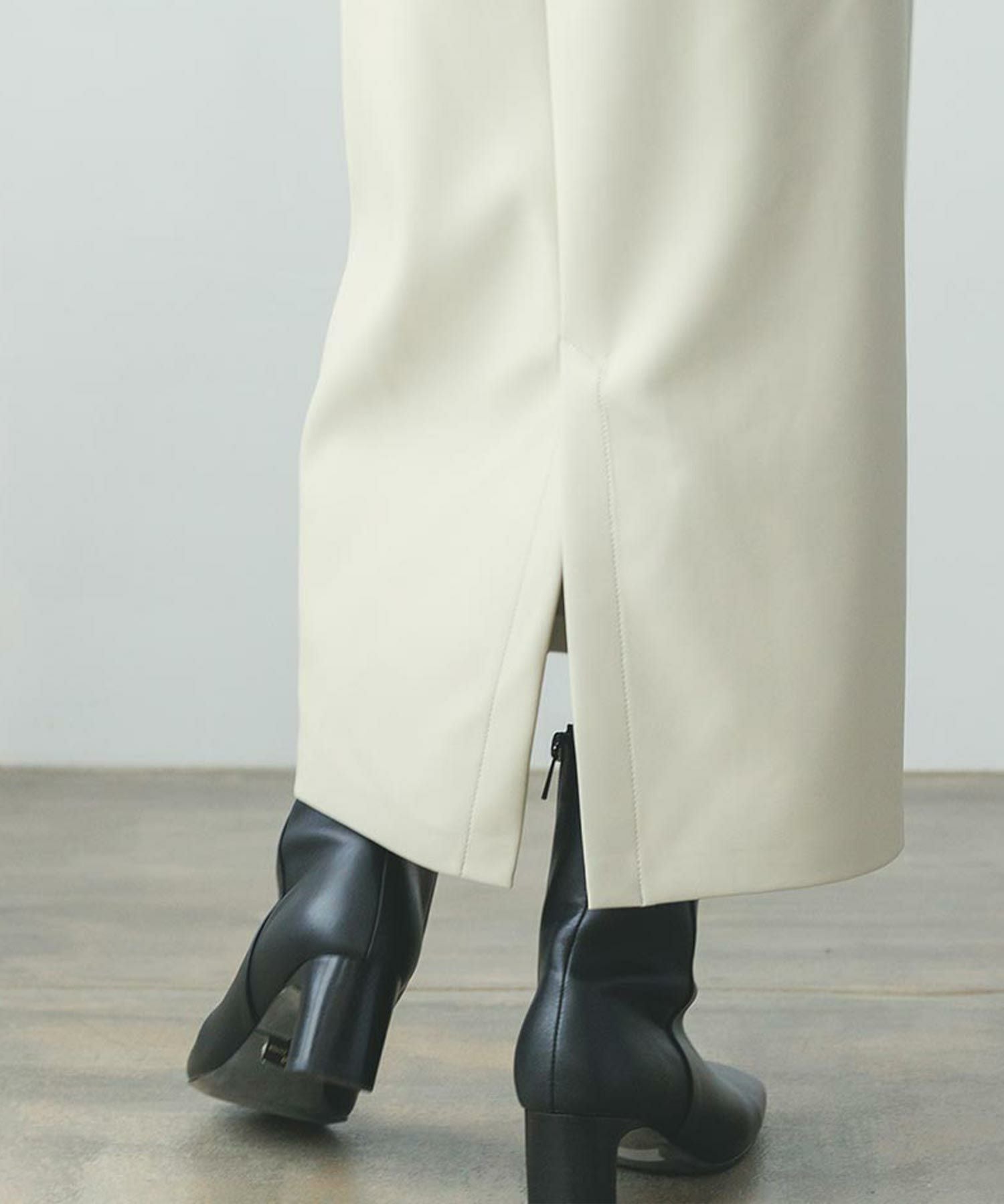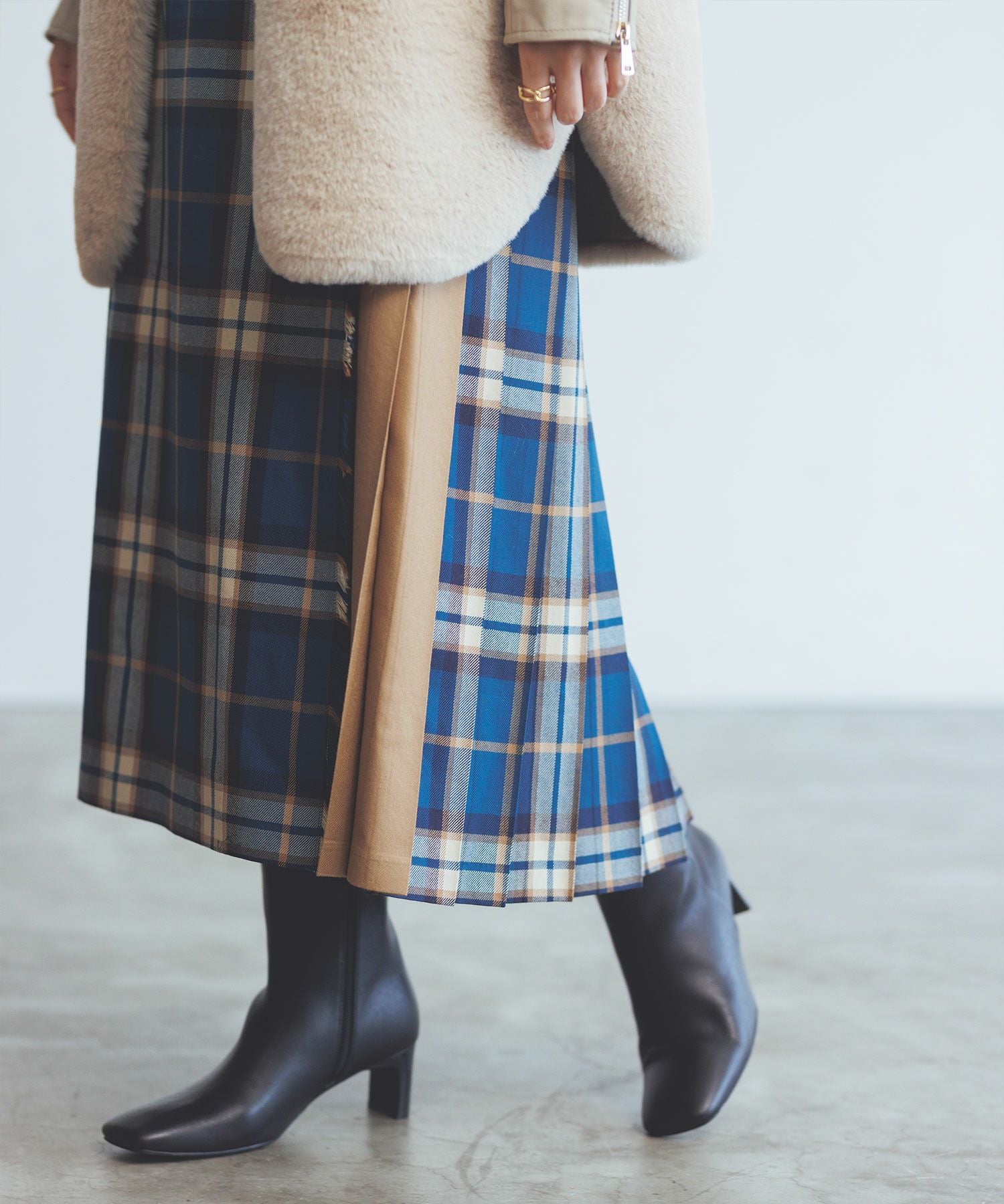 少し長めの丈で筒周りも細身なので、ブーツのデザインが少し見えるようなミディ丈のスカートと相性抜群です◎