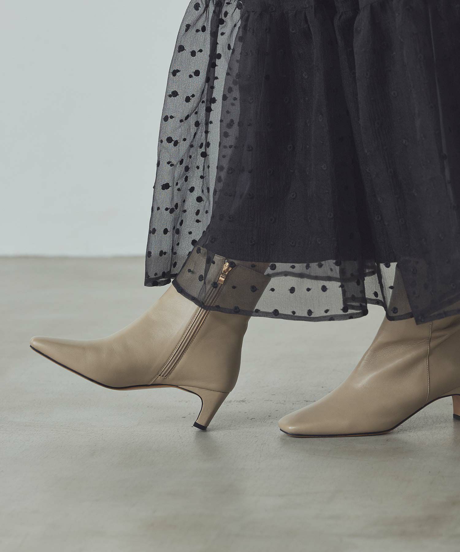 スクエアトゥと細めの筒回りがすっきりとしたバランスで、女性らしい足元が叶います。
