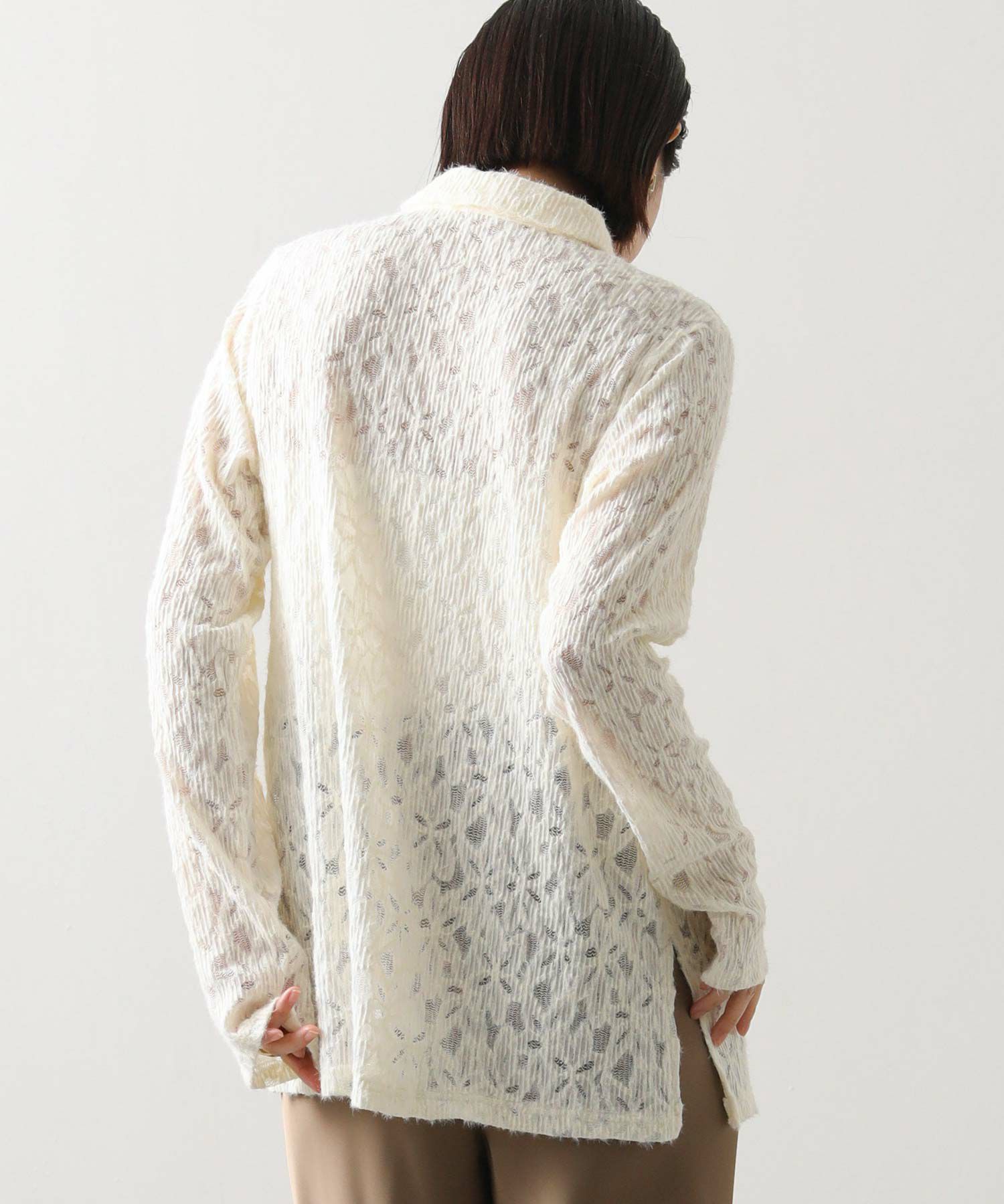 総レースで仕立てたシャツ。