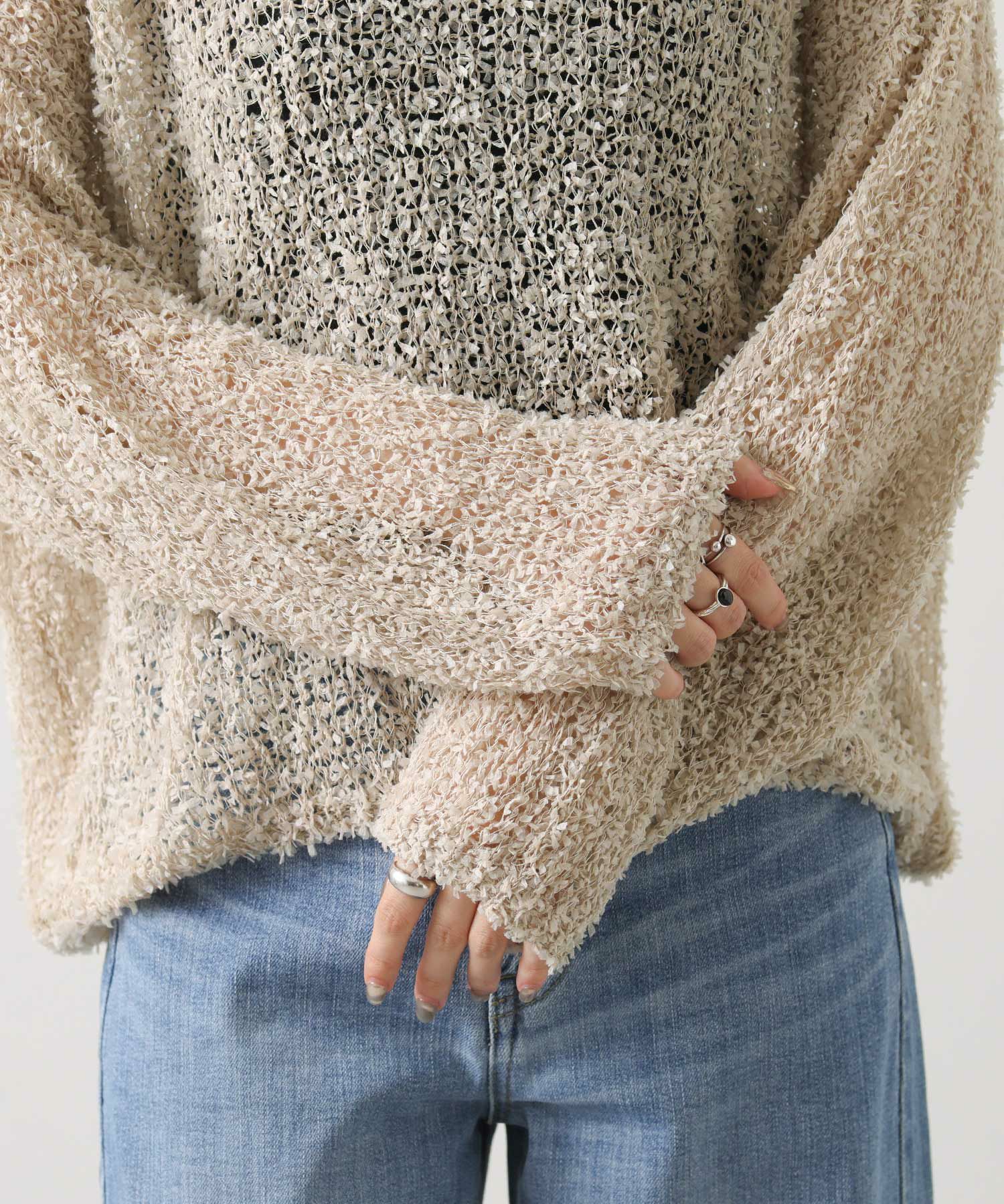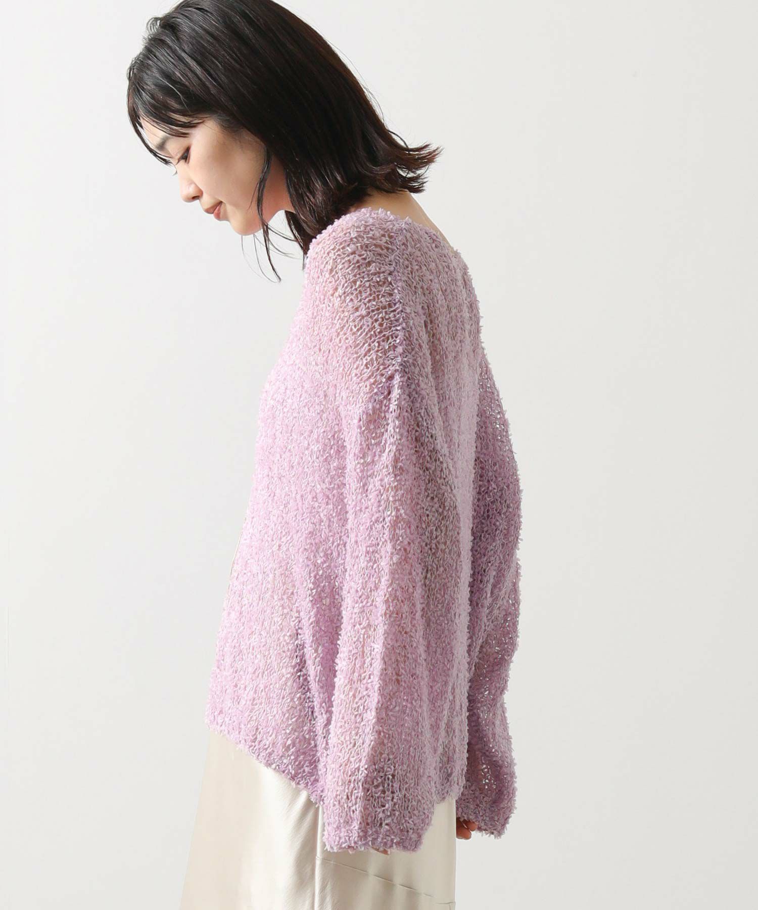 【tomberduciel(トンベドゥシェル】から、春夏人気だった、リボンのようなテープが軽やかに躍る、表情豊かな糸で編み立てたニットプルオーバーをカラー別注。