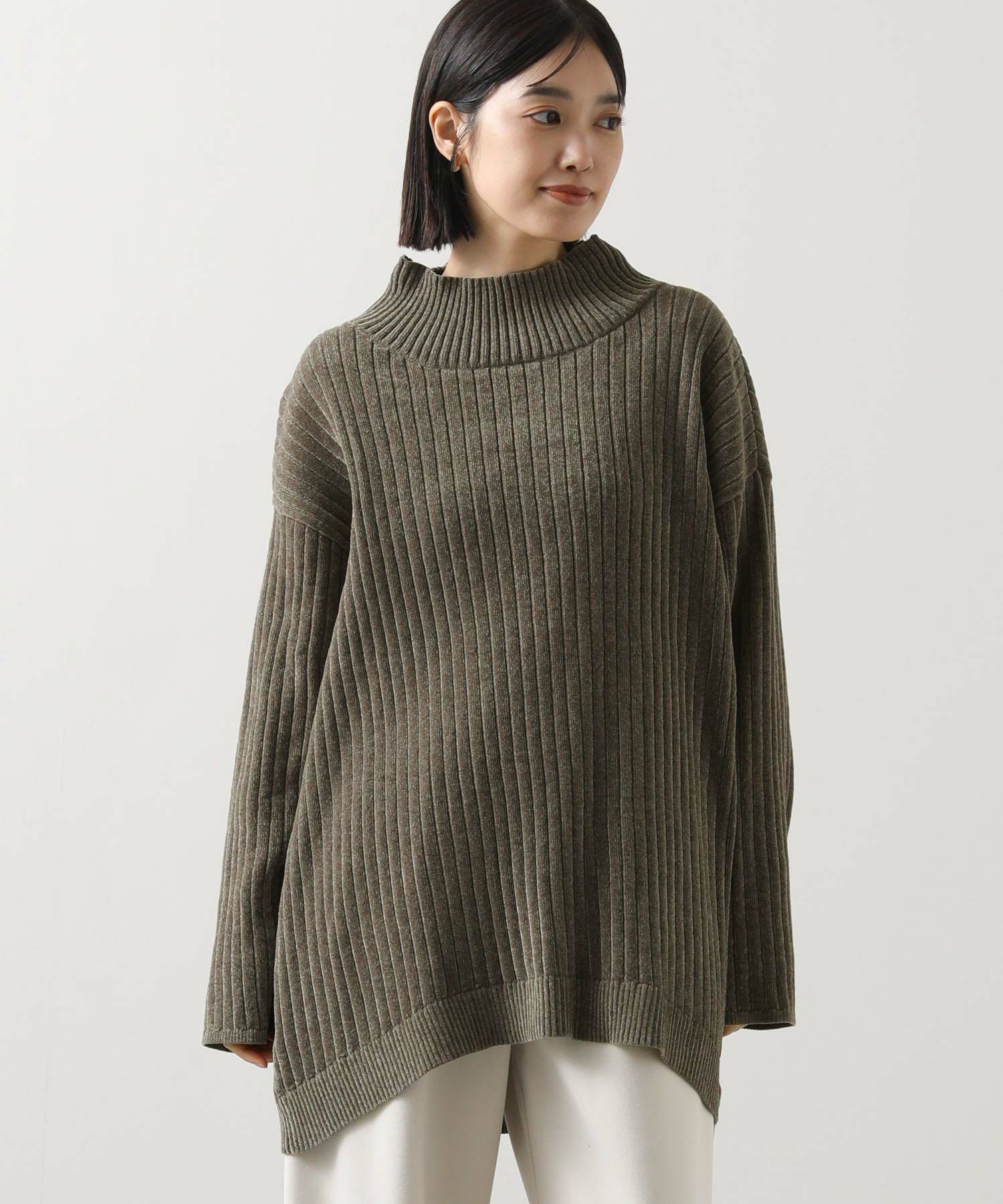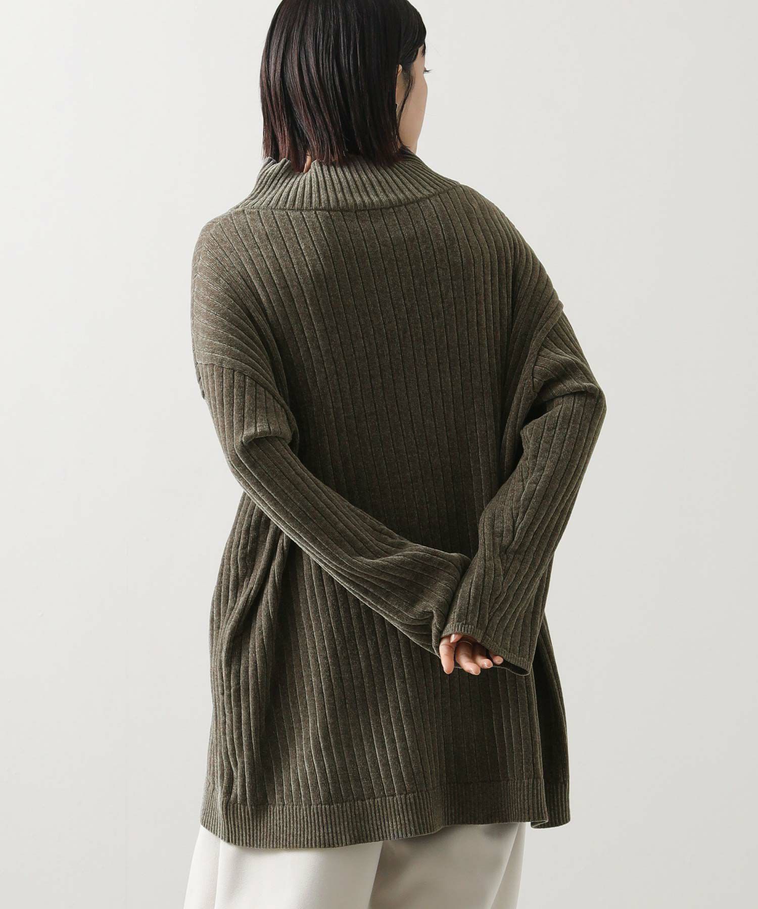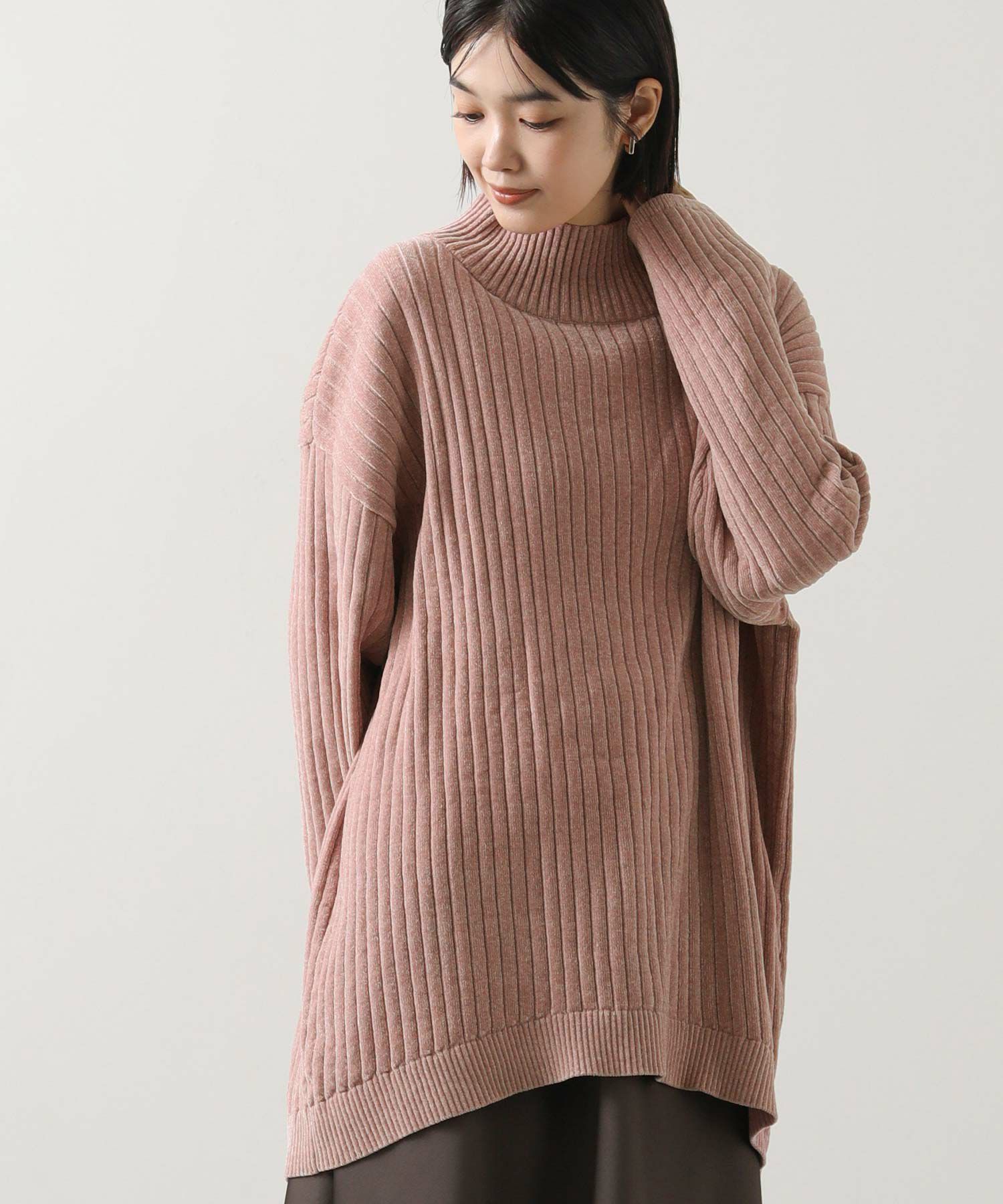 ヒップをカバーするチュニック丈と、ワイドリブデザインでスッキリ見えします。