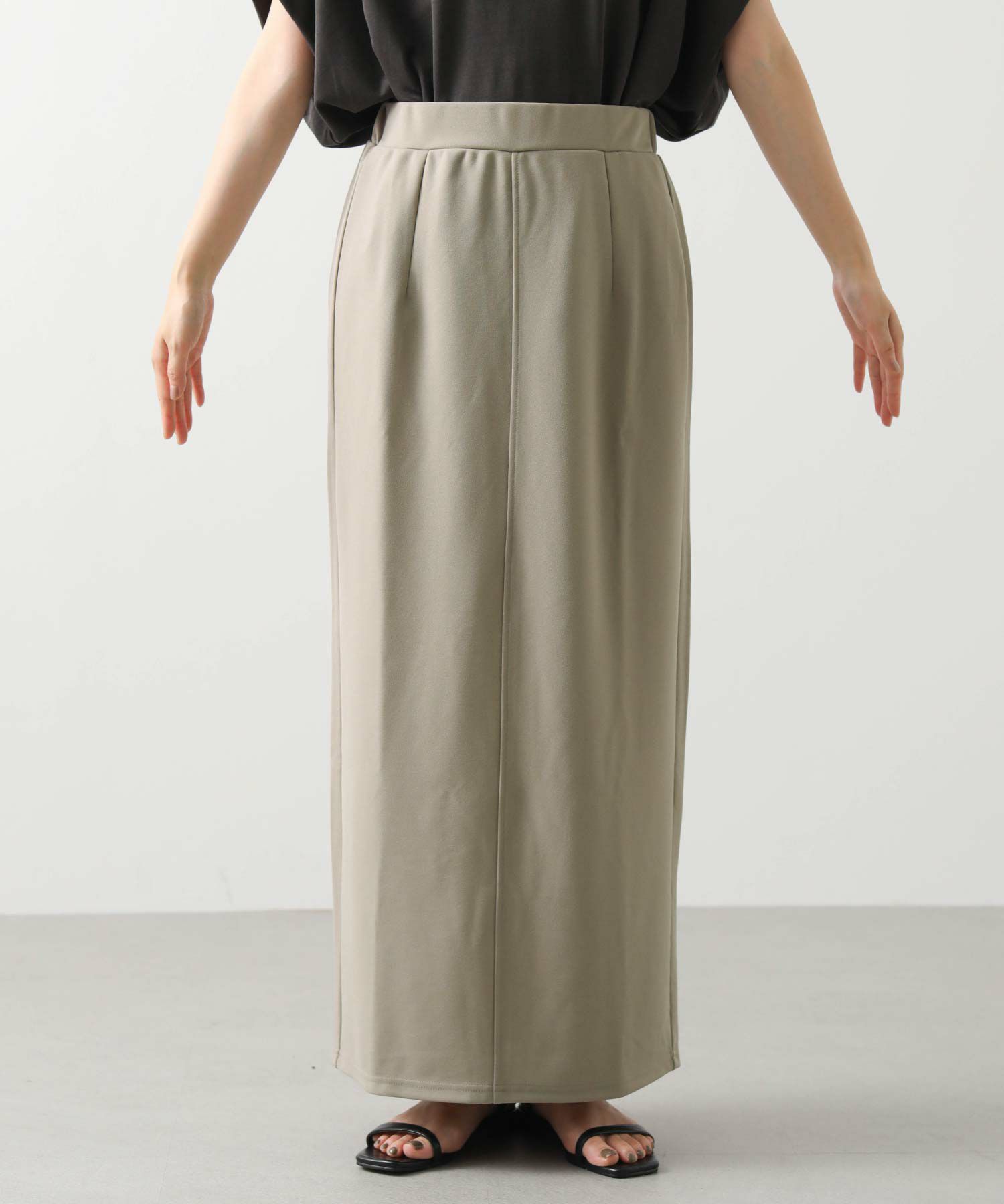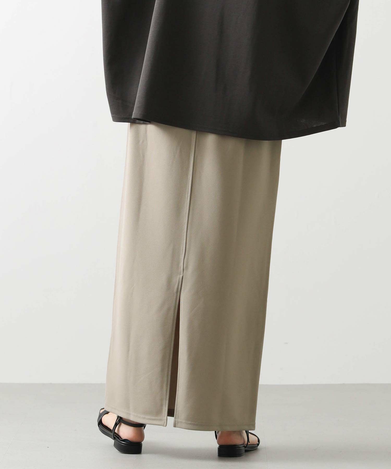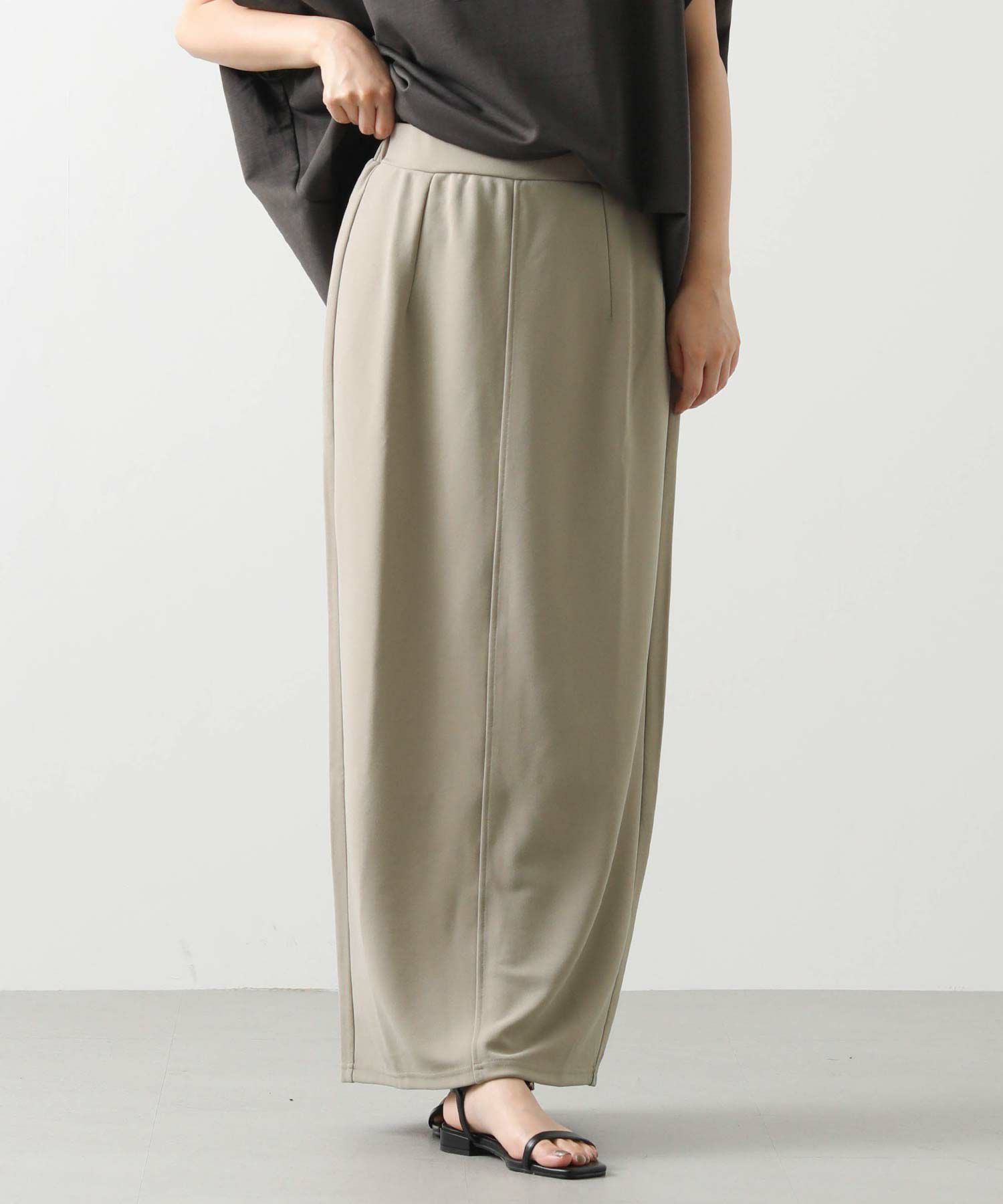 伸縮性のあるカットジョーゼット生地のIラインシルエットのスカート。