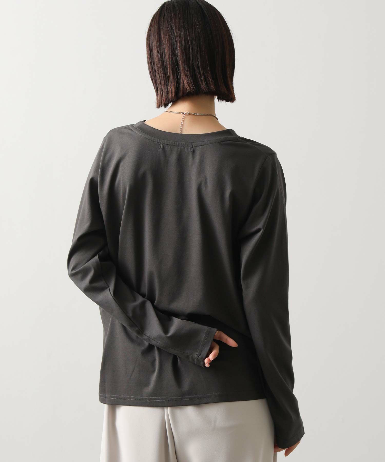 ジャケットやカーディガンのインナーとしてはもちろん、サロペットやレイヤードスタイルにもオススメ。日常のカジュアルを品良く格上げしてくれる、大人な1枚。