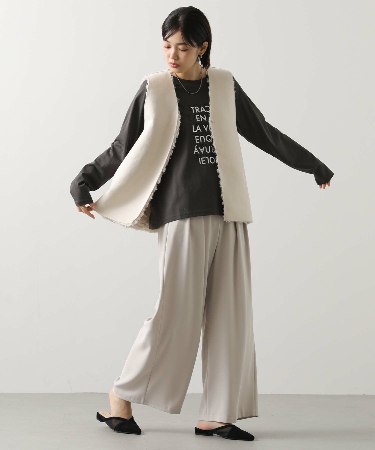 ※着用画像は撮影状況、光の当たり具合で色みが違って見える場合がございます。実際の色みについては、画像一覧の最後に掲載している詳細画像をご参照ください。