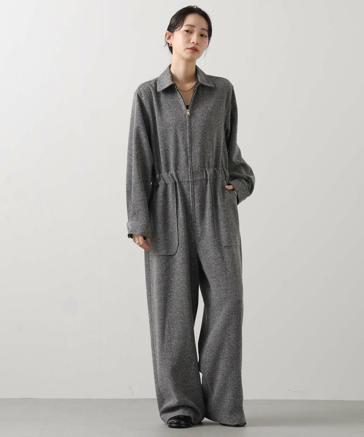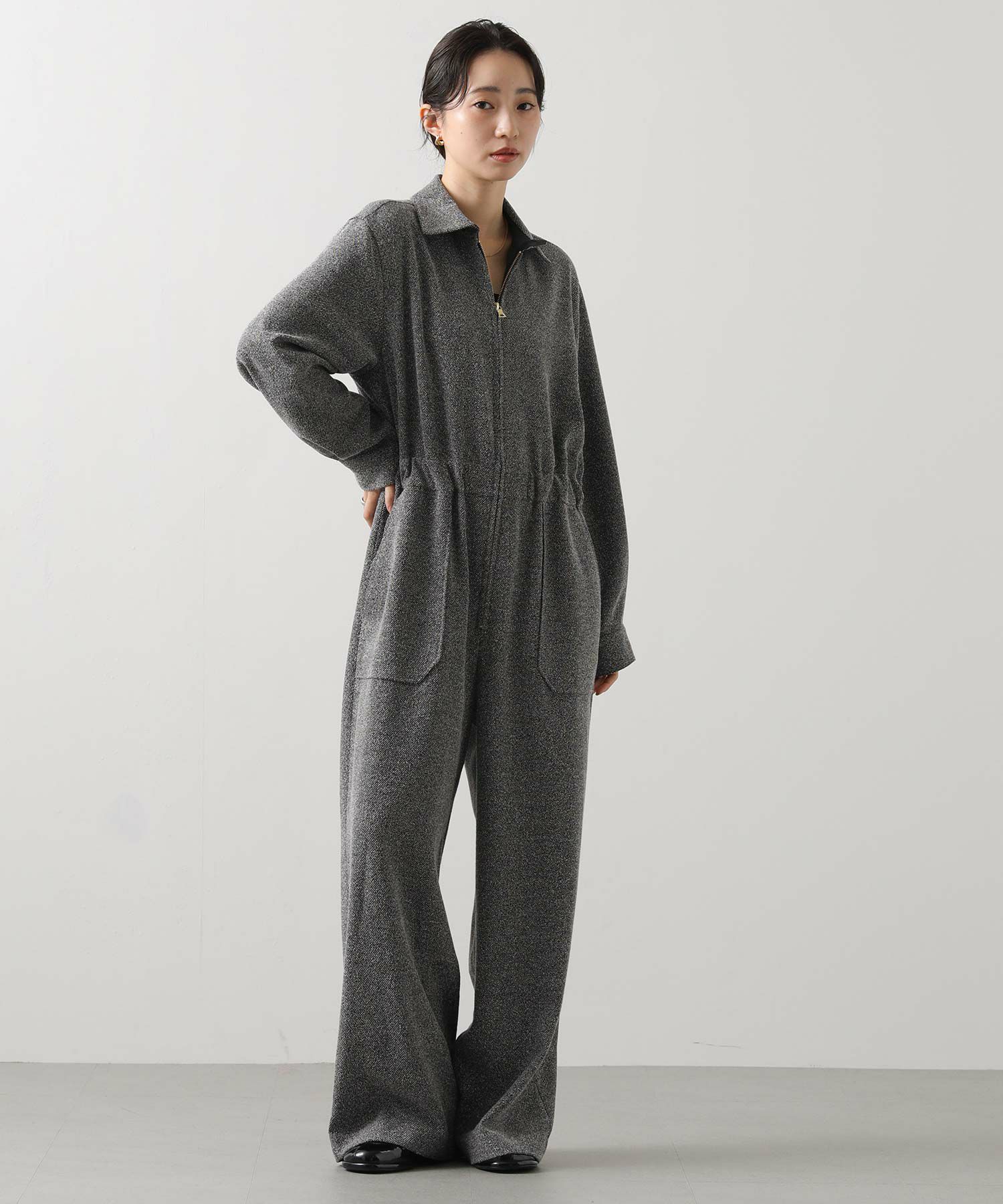 上品なツイード素材を贅沢に使ったクラシックなオールインワン。