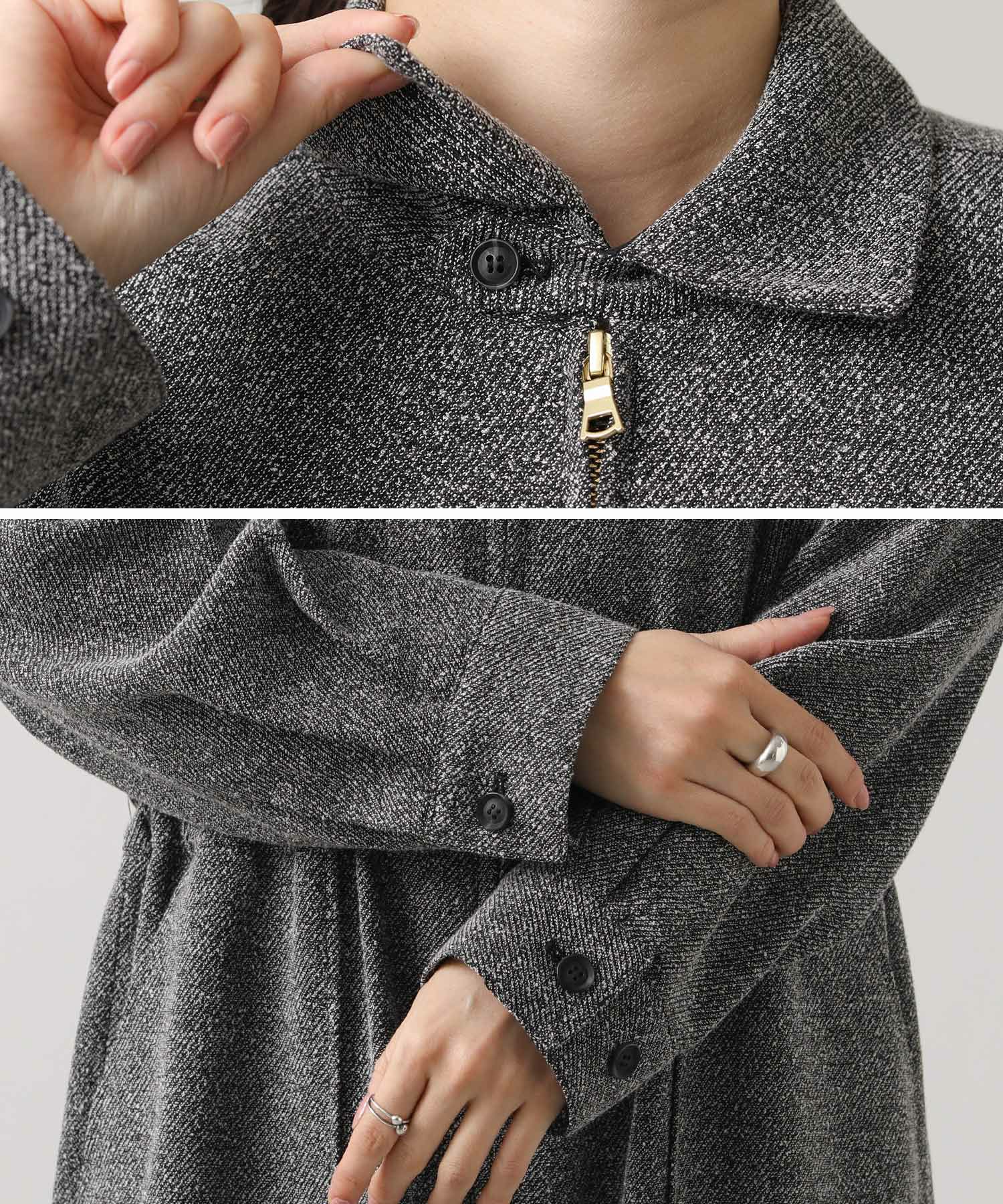 ※着用画像は撮影状況、光の当たり具合で色みが違って見える場合がございます。実際の色みについては、画像一覧の最後に掲載している詳細画像をご参照ください。