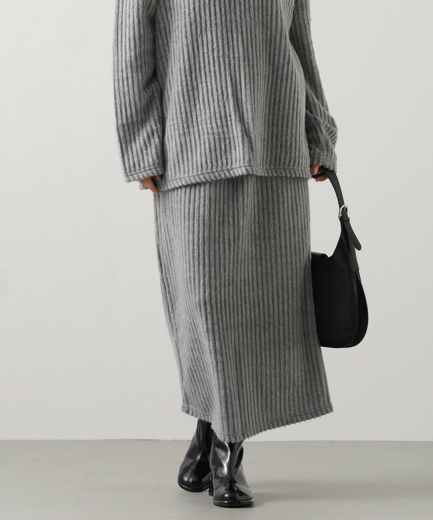 縦畝のあるリブ素材が、すっきりとした印象を演出するロングスカート。