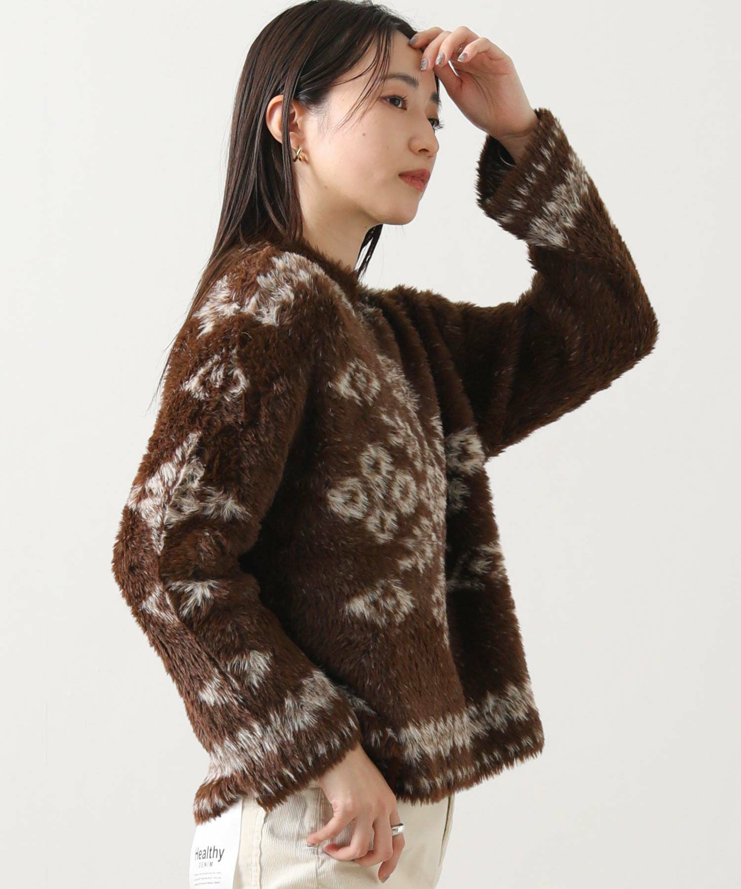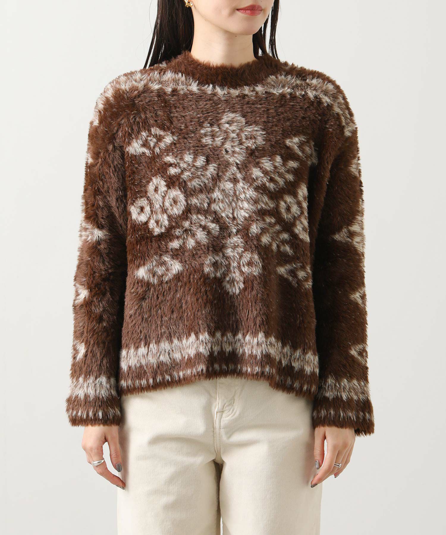 シャギーのふわっとした柔らかい糸で大胆なパネル柄を作りだした、冬の気分が上がる主役ニット。