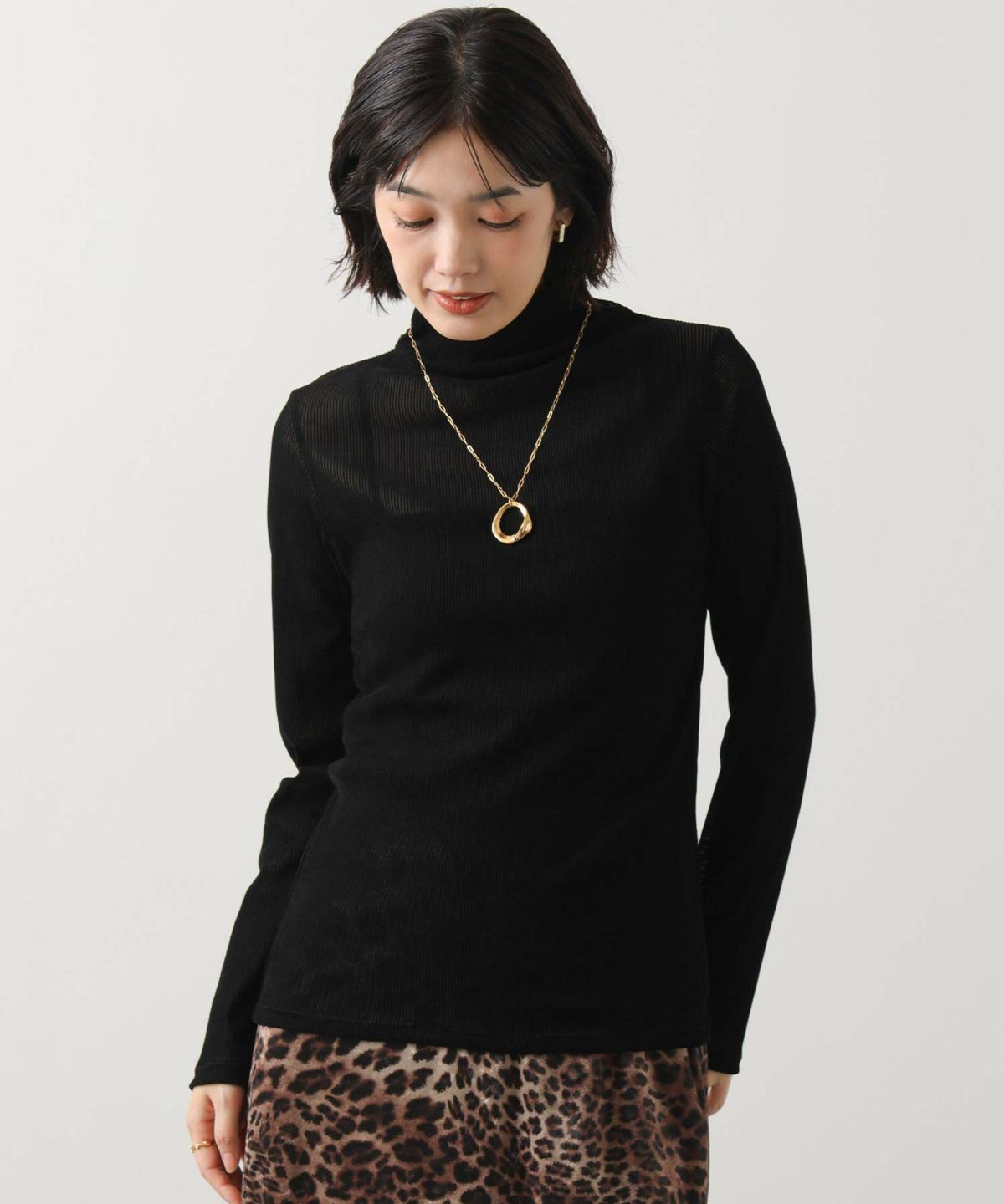s.リーフ柄シアーカットソー