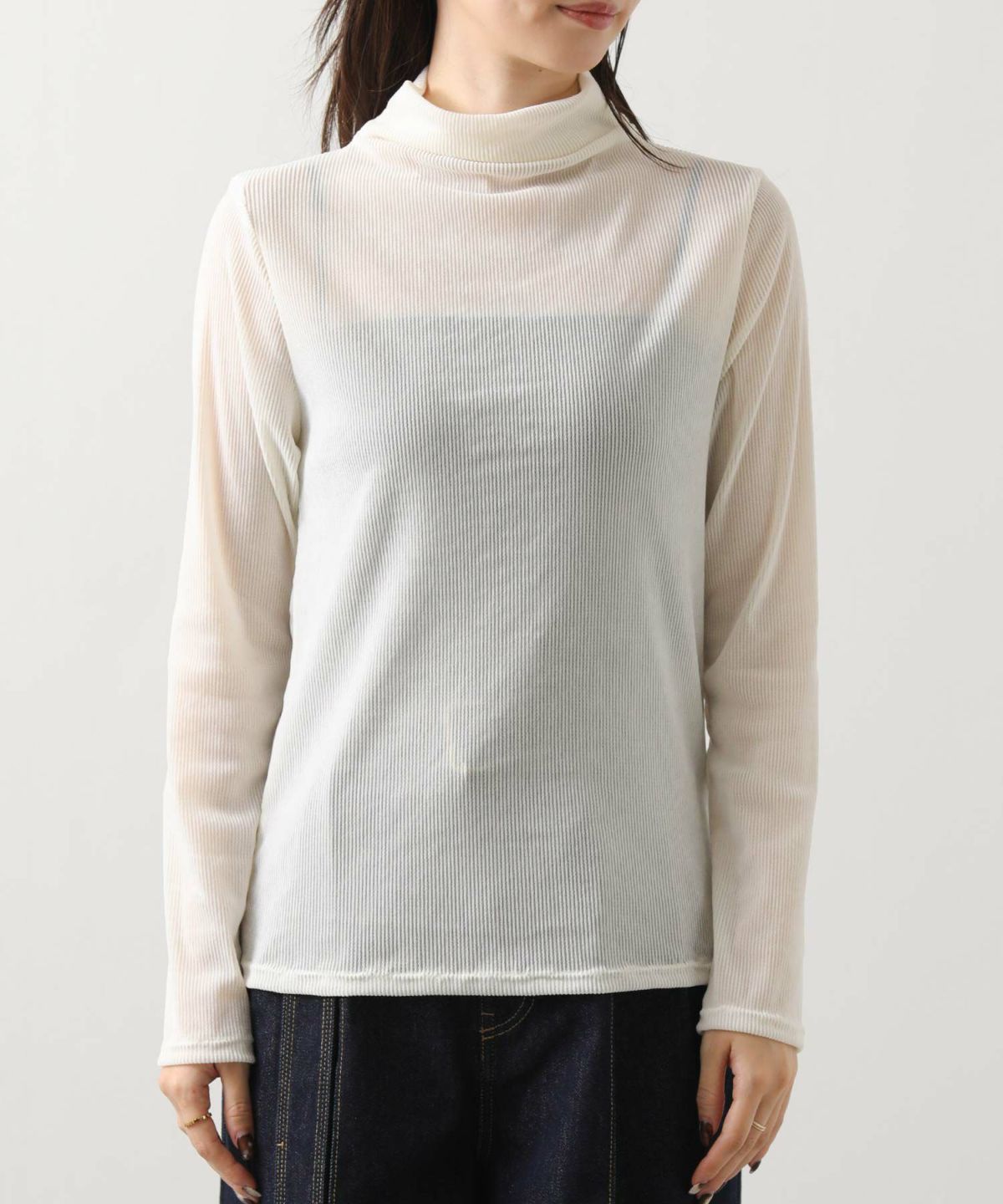 フロッキーストライプモックネックトップス