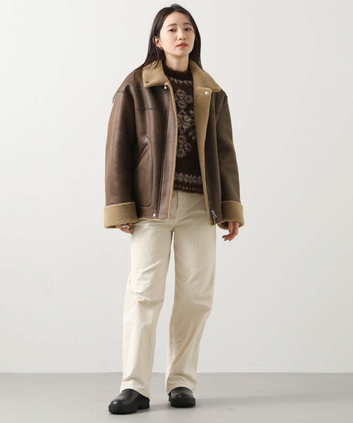 他の画像を見る Gready Brilliant【2026年3月10日AM10:00販売終了】ムートンリバーシブルブルゾン 定価 ¥ 39,600 のところ ¥ 19,800 税込 カートに入れる お気に入りに登録する MORE