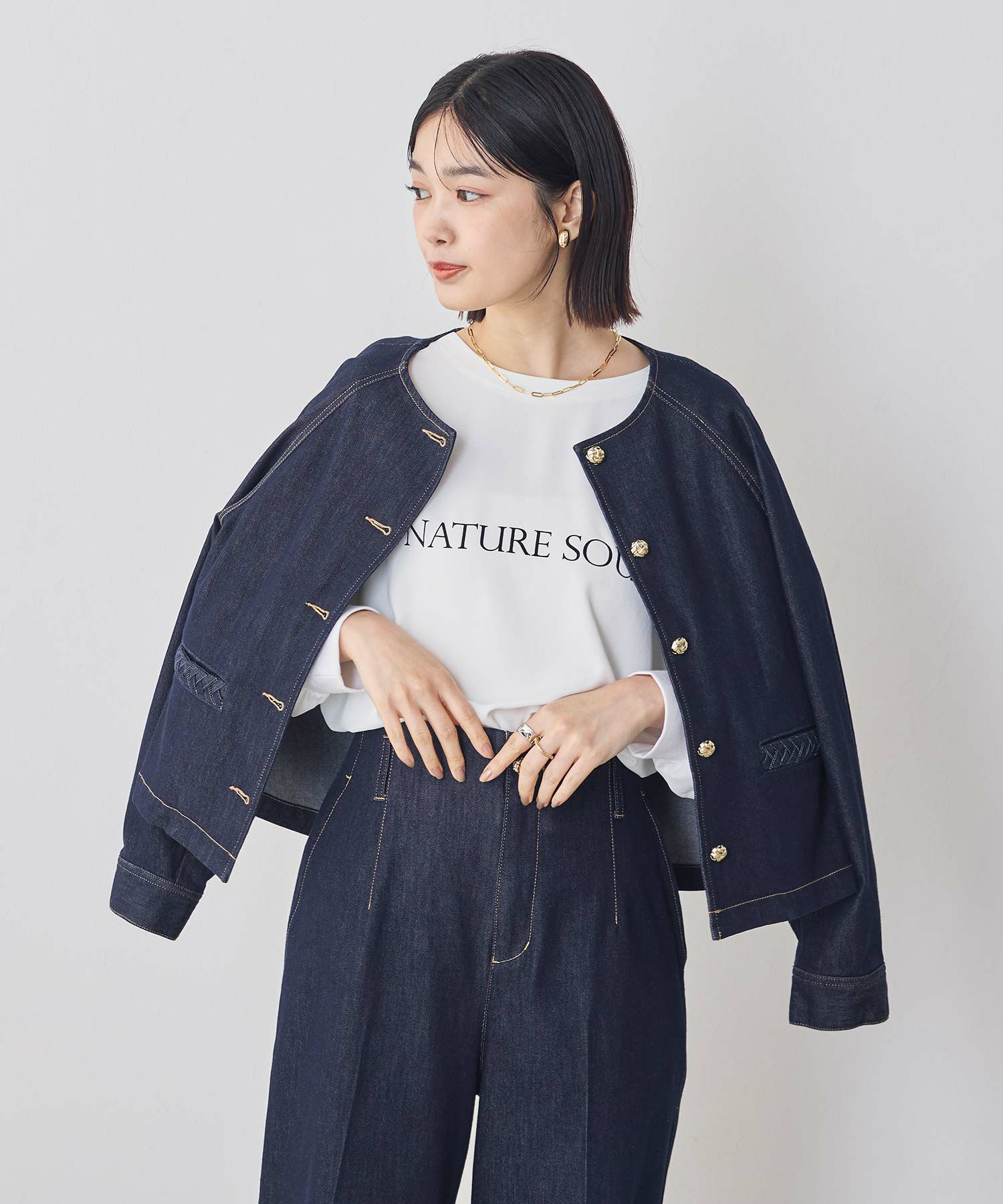※着用画像は撮影状況、光の当たり具合で色みが違って見える場合がございます。実際の色みについては、画像一覧の最後に掲載している詳細画像をご参照ください。