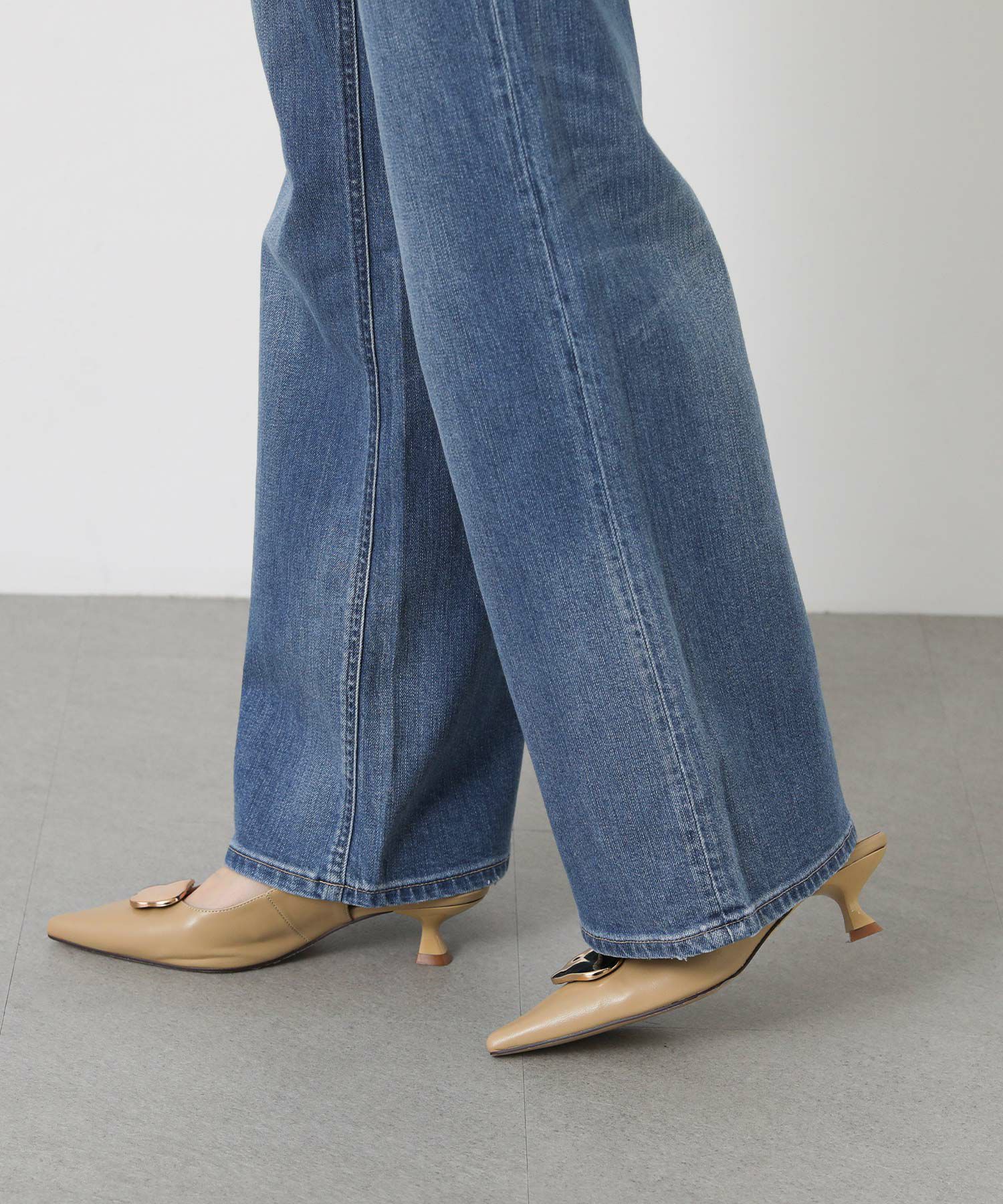 程よい太さでほんのりフレア見えする5ポケットのデニム。