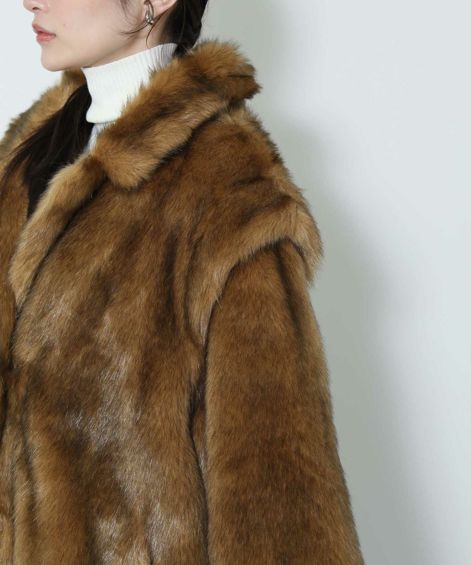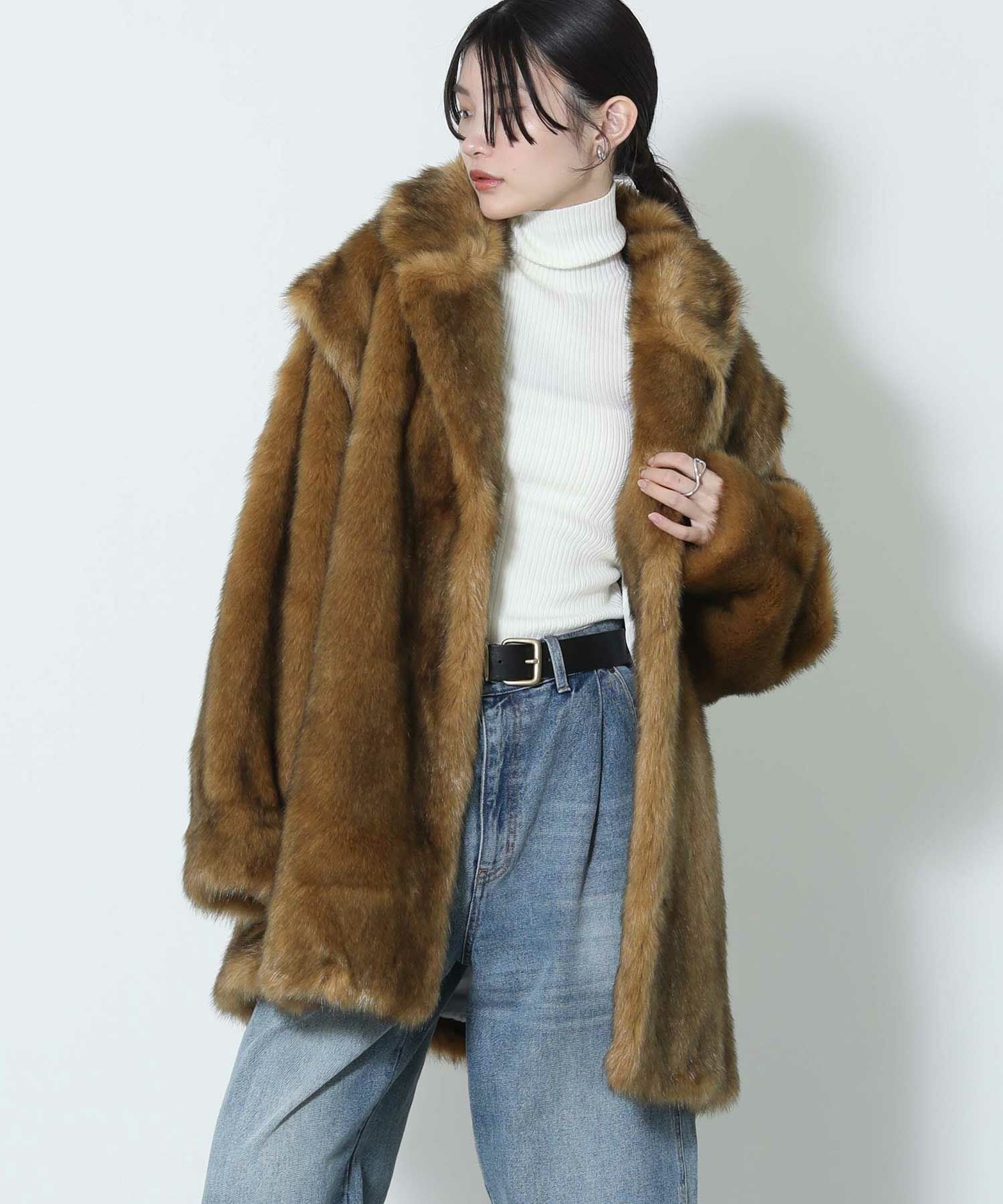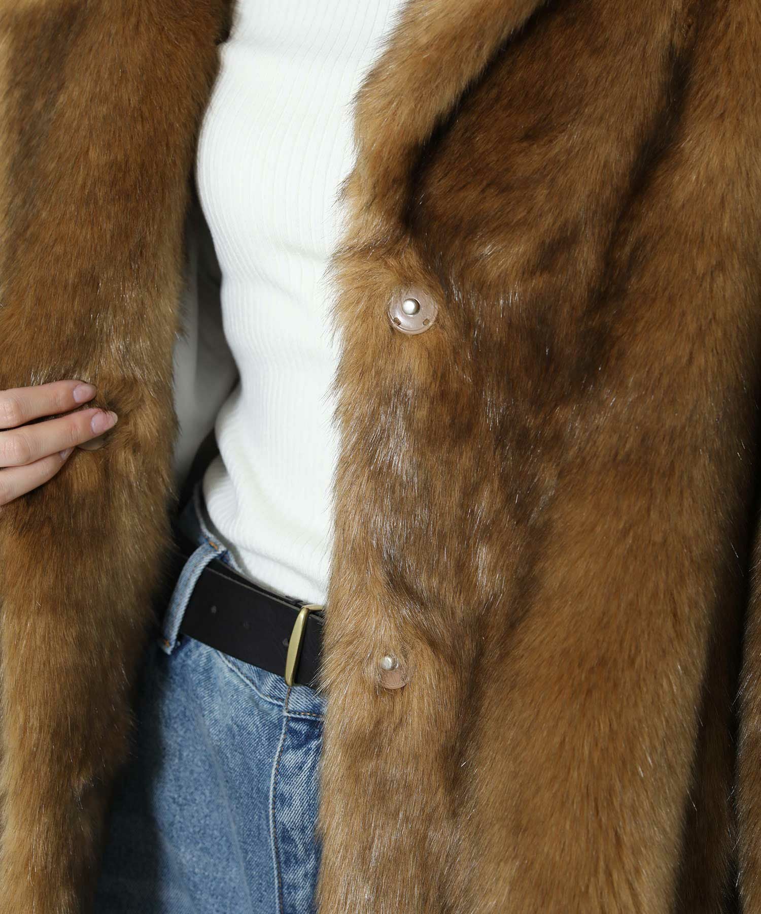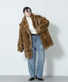 毛足長めなフェイクファー素材のコート。