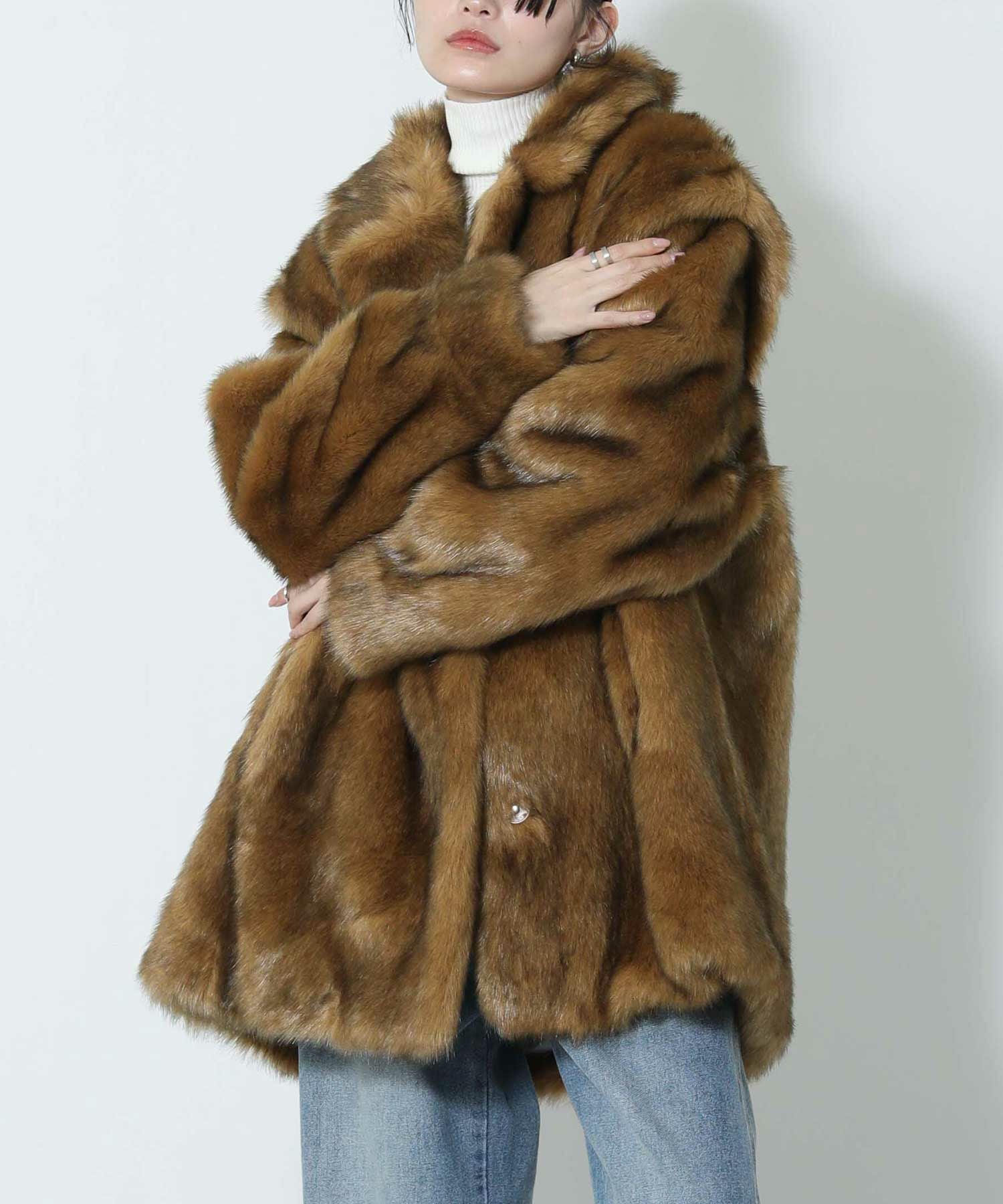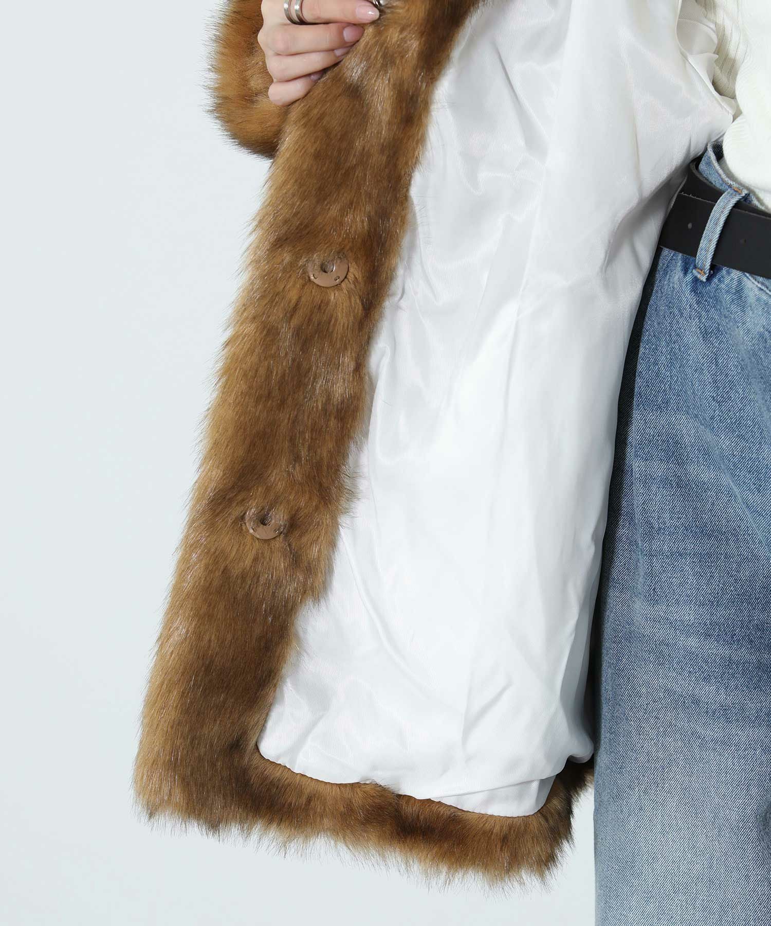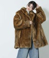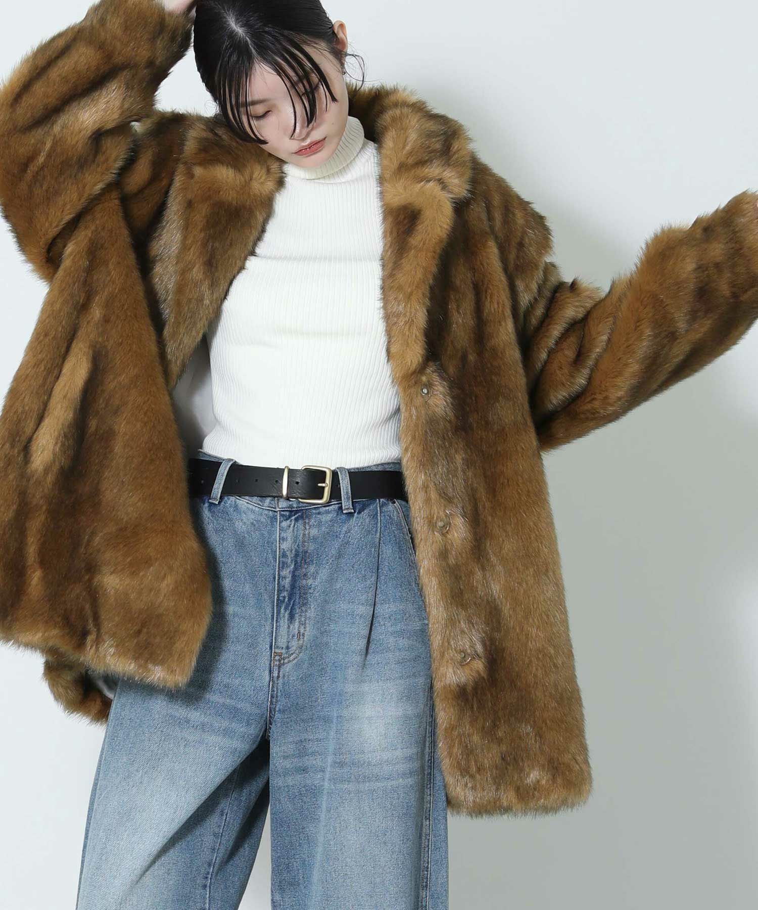 毛足長めなフェイクファー素材のコート。