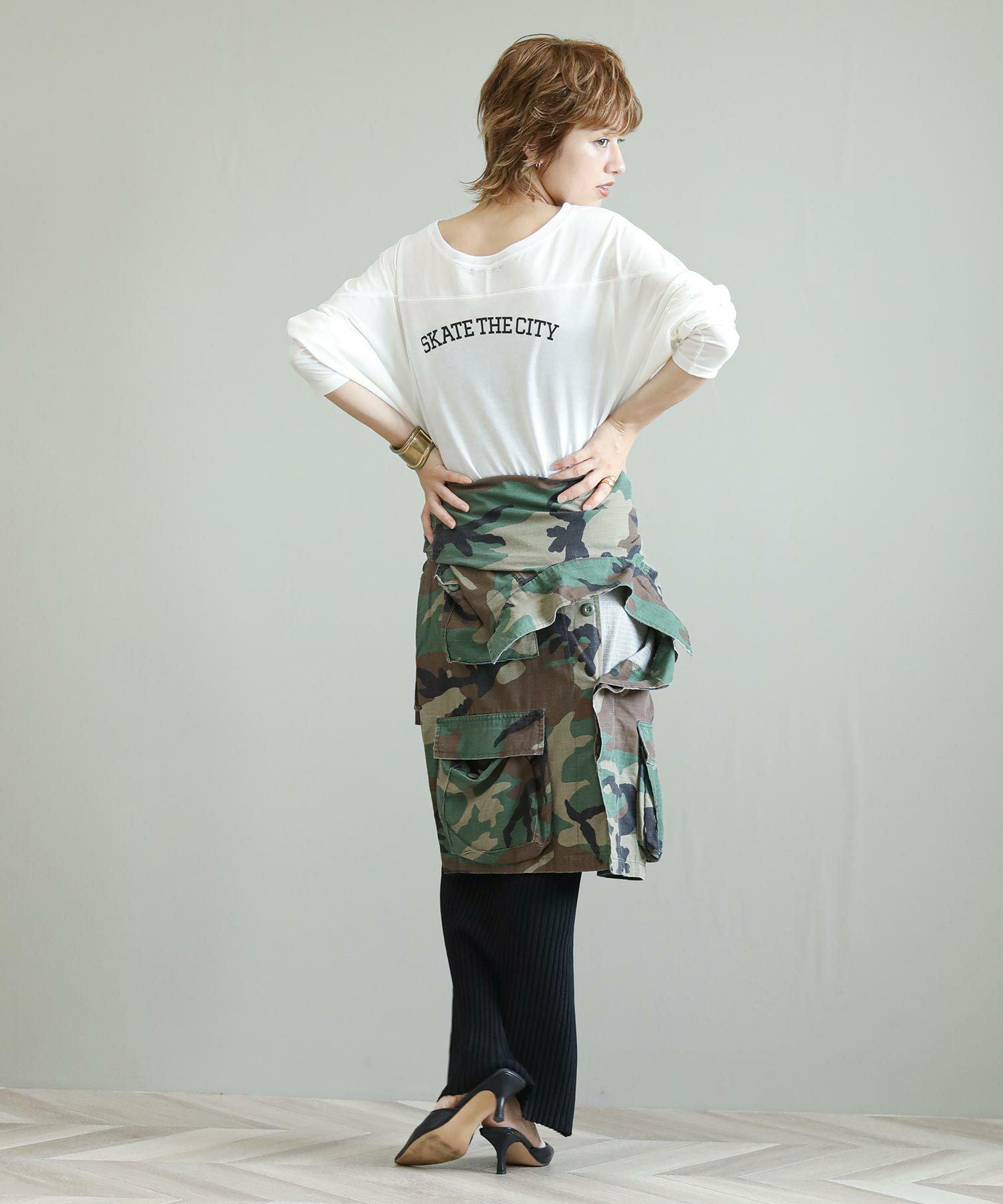 BDUは(バトル・ドレス・ユニフォーム)アメリカ軍が採用していたミリタリーウエア。強度のあるリップストップ生地を使用。ショート丈のオーバーサイズシルエットにアレンジされタウンユースに合わせやすいデザインに落とし込まれています。今シーズンはアメカジトレンドのムードを汲んでカモフラをセレクトしました。タイトスカートやスラックスなど綺麗めボトムと合わせるのがおすすめです。