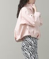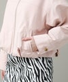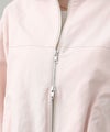 シワになりにくいマットなコットンツイル二重織り素材を使用。ショート丈にバルーンシルエットを掛け合わせ、太めの袖幅にスタンドカラーでモードなニュアンスをプラス。ダブルジップ仕様でレイヤードしやすく、シルバーのファスナーがシャープなアクセントに。華やかなピンクが春のスタイリングを明るく仕上げます。ショート丈なのでフレアスカートやワイドパンツともバランスがとりやすく好相性。