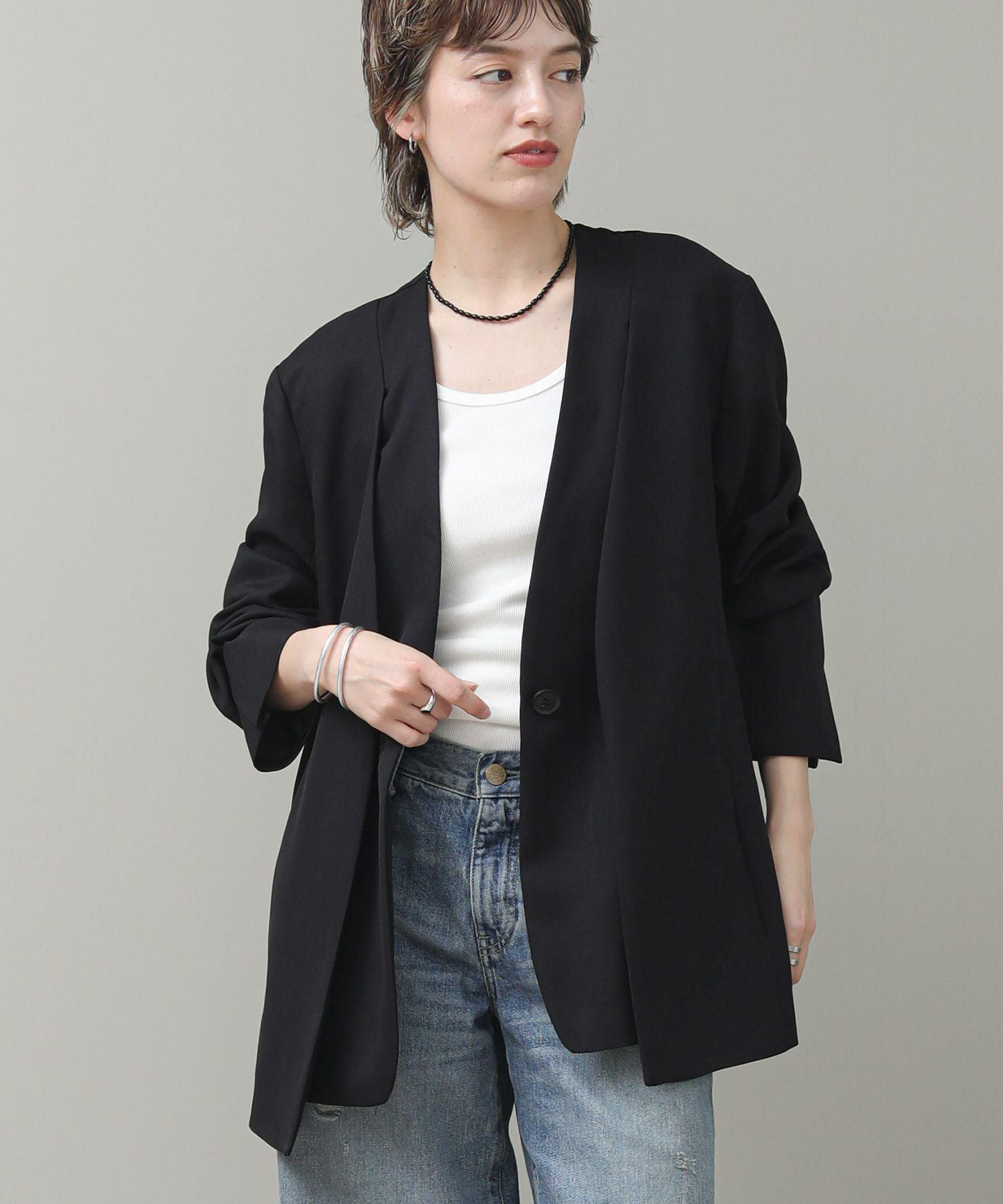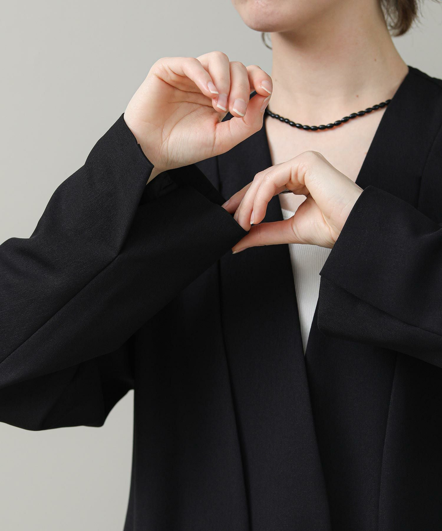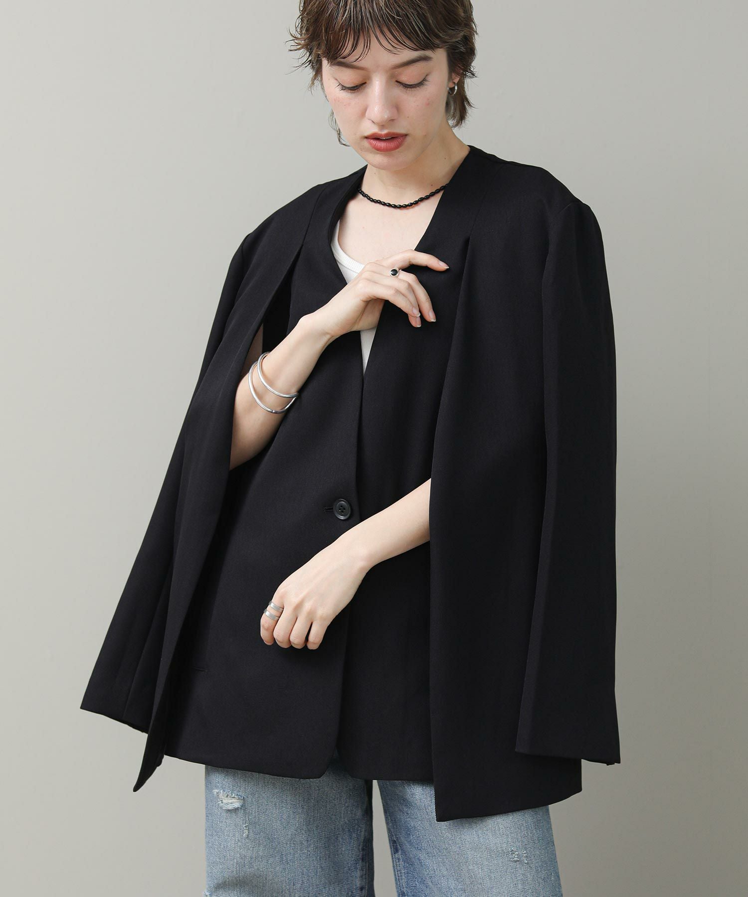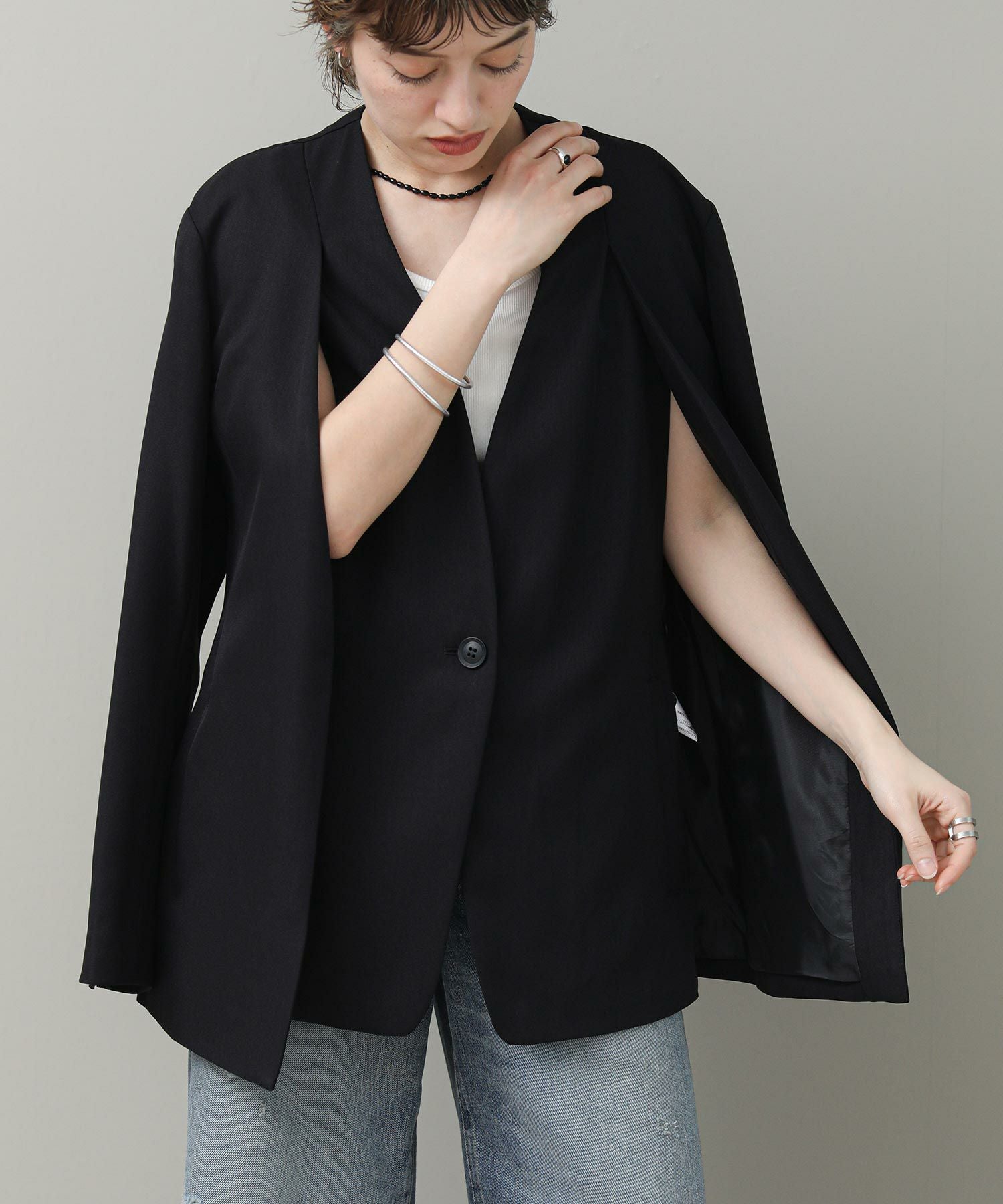 ベーシックでありながら洗練された印象を与えます。ストレスフリーな着心地と、シーンを選ばない着回し力が魅力の一枚です。腕を通して肩掛け風に着られるため、後ろにずり落ちにくく、ストレスなく快適に着用いただけます。