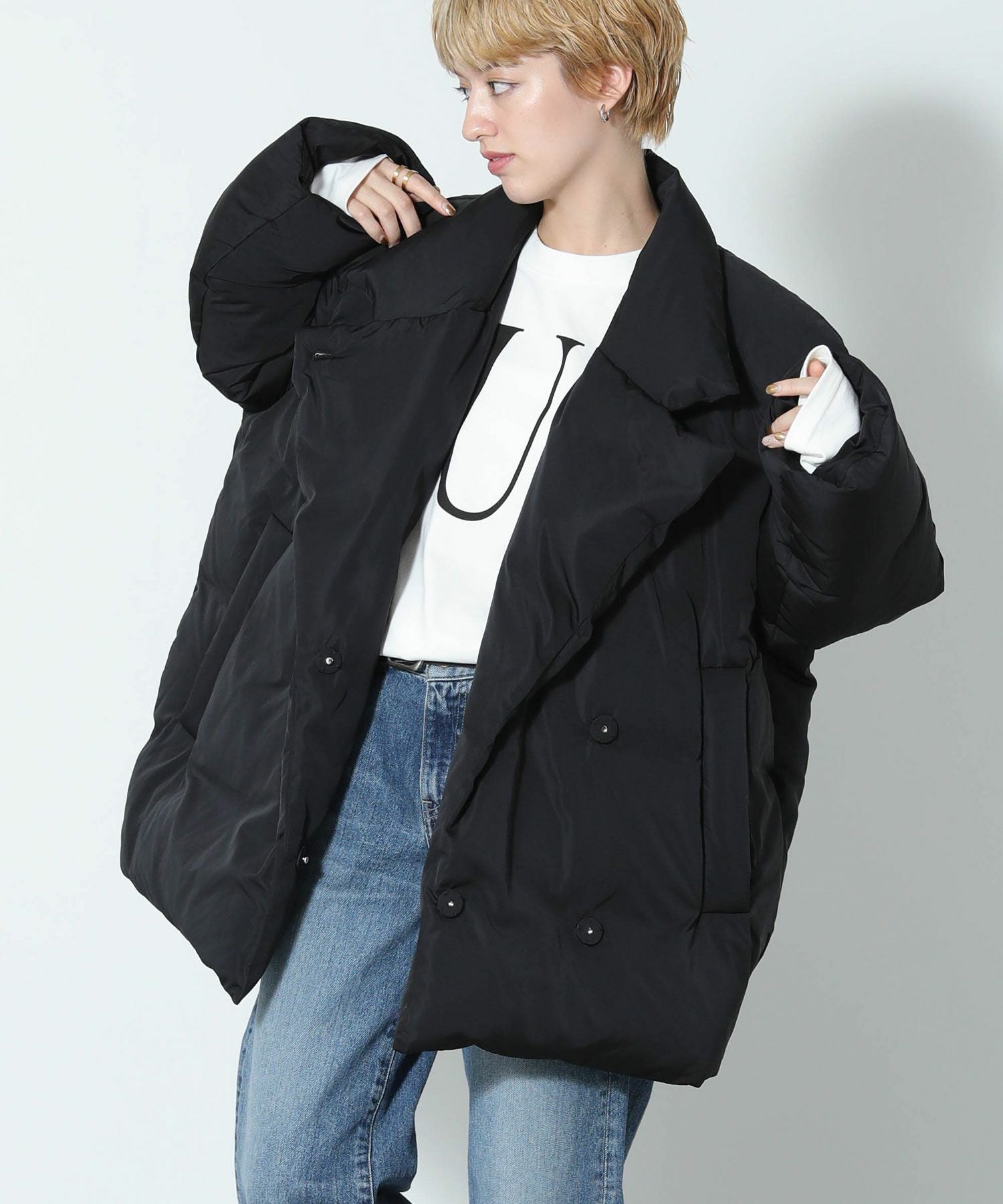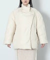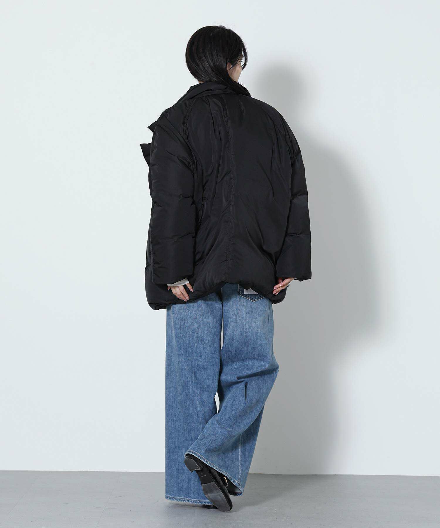カジュアルに見えがちな中綿ジャケットをテーラードシルエットできれいめな印象に仕上げました。