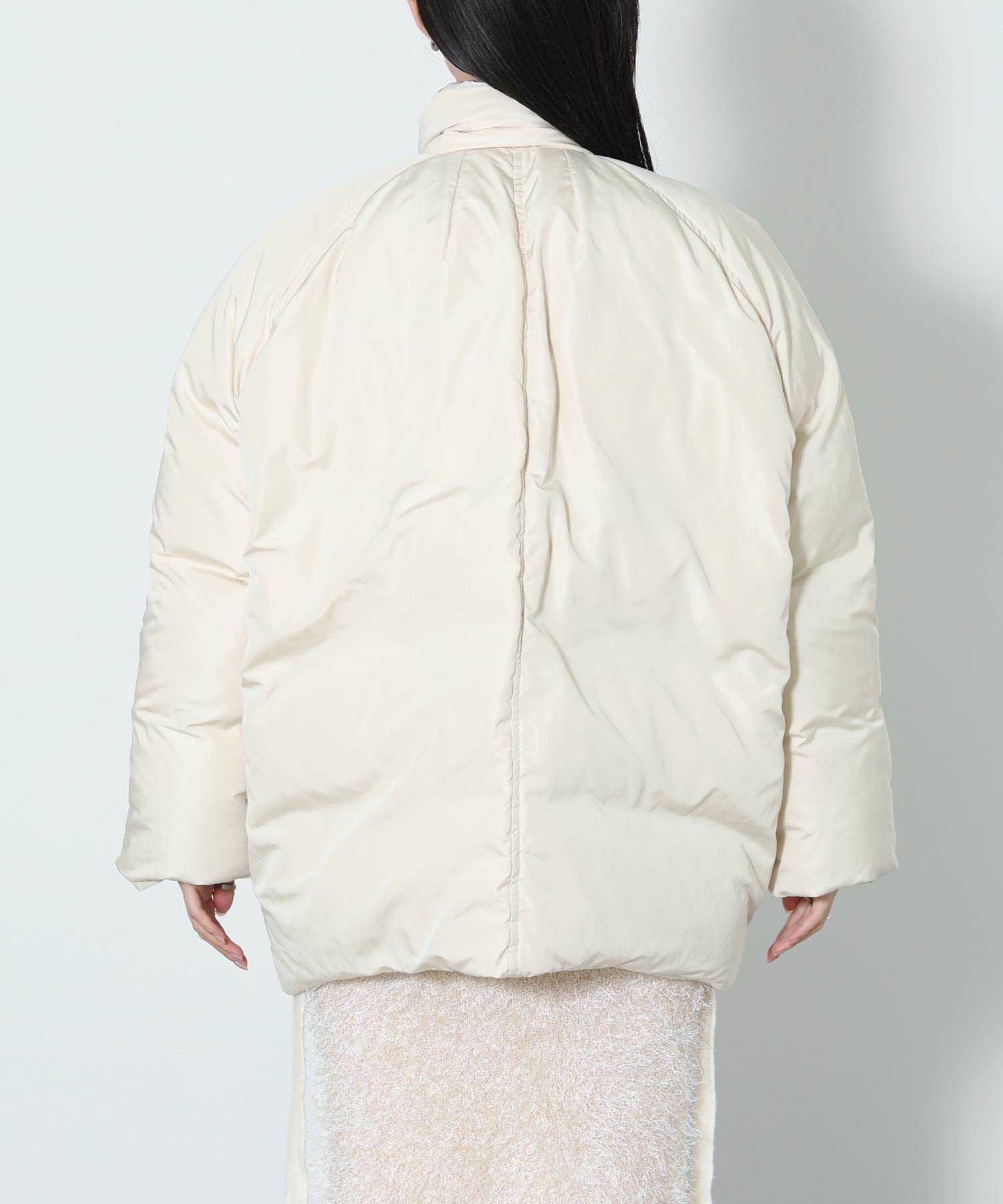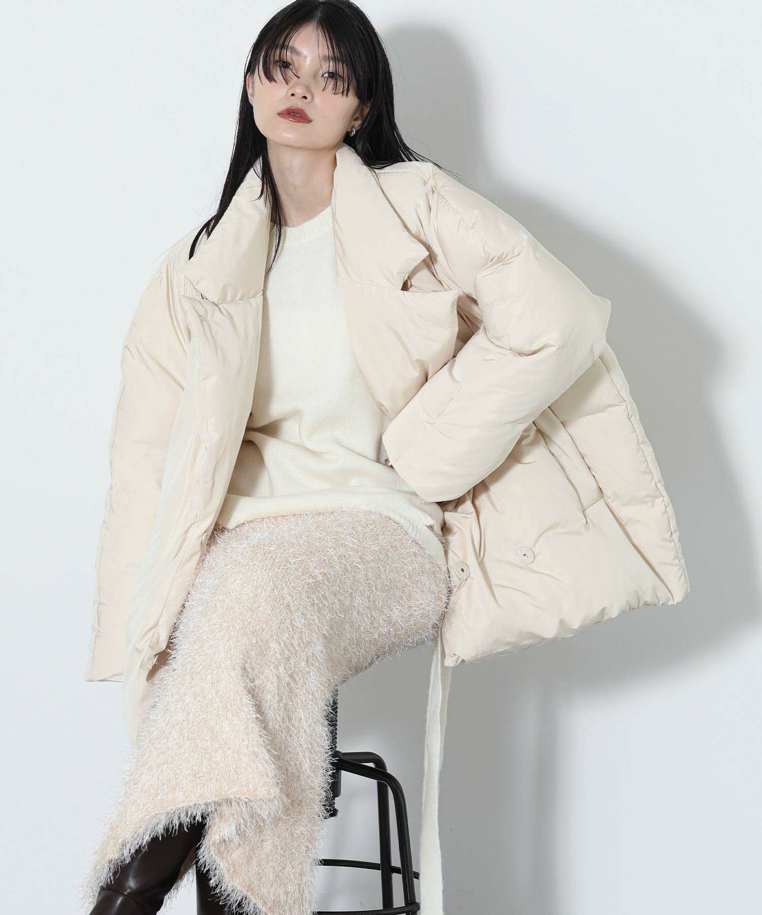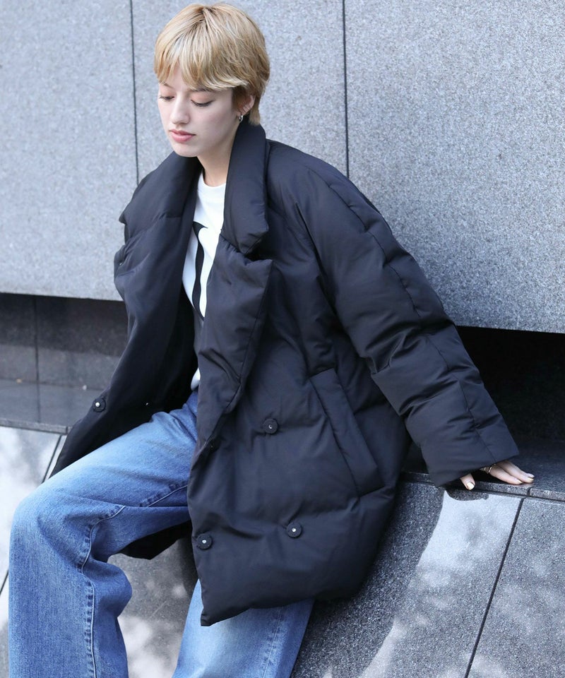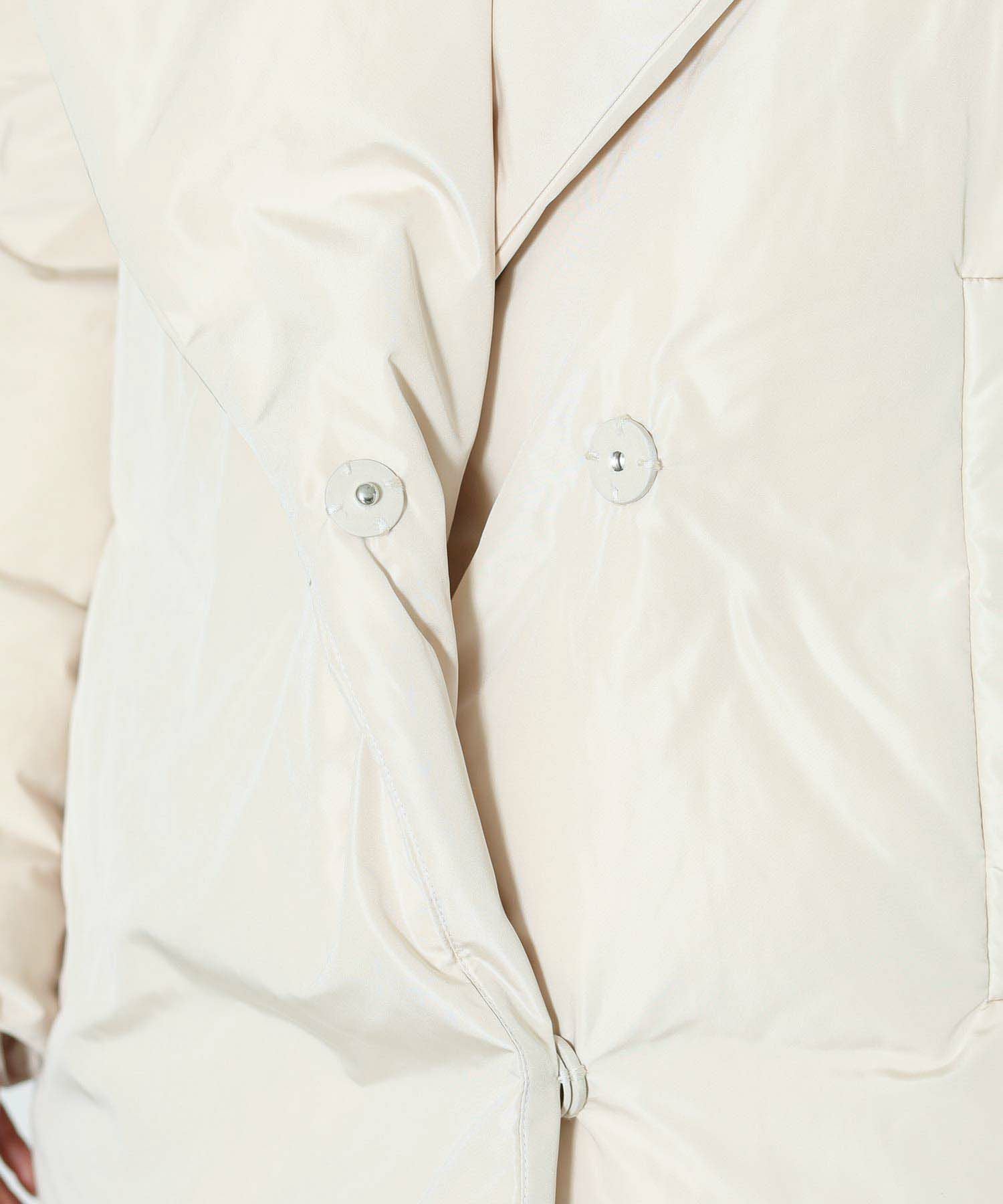 ビックカラーで小顔効果を発揮。首元まで隠れるステンカラーデザインでの着用も可能です。