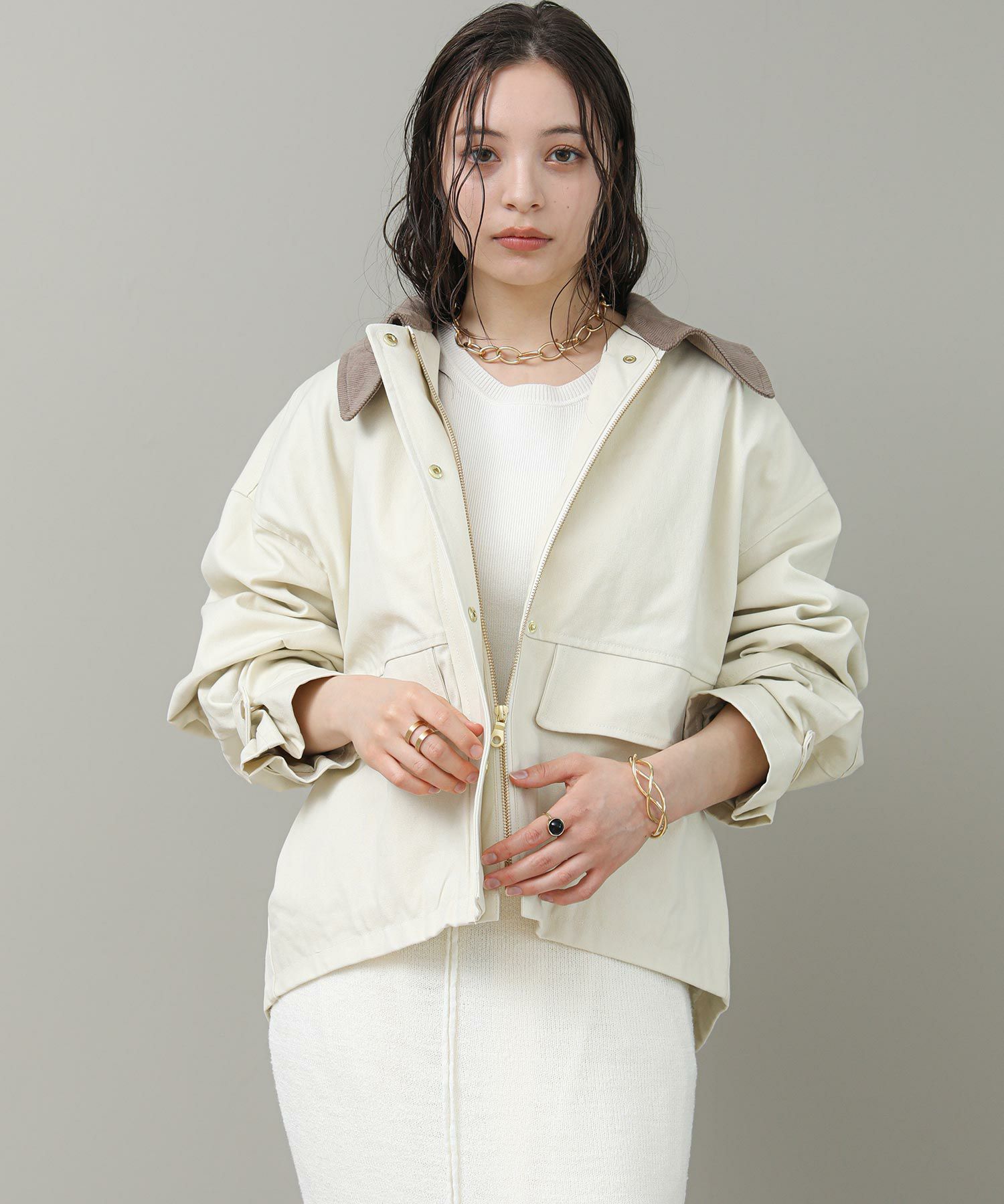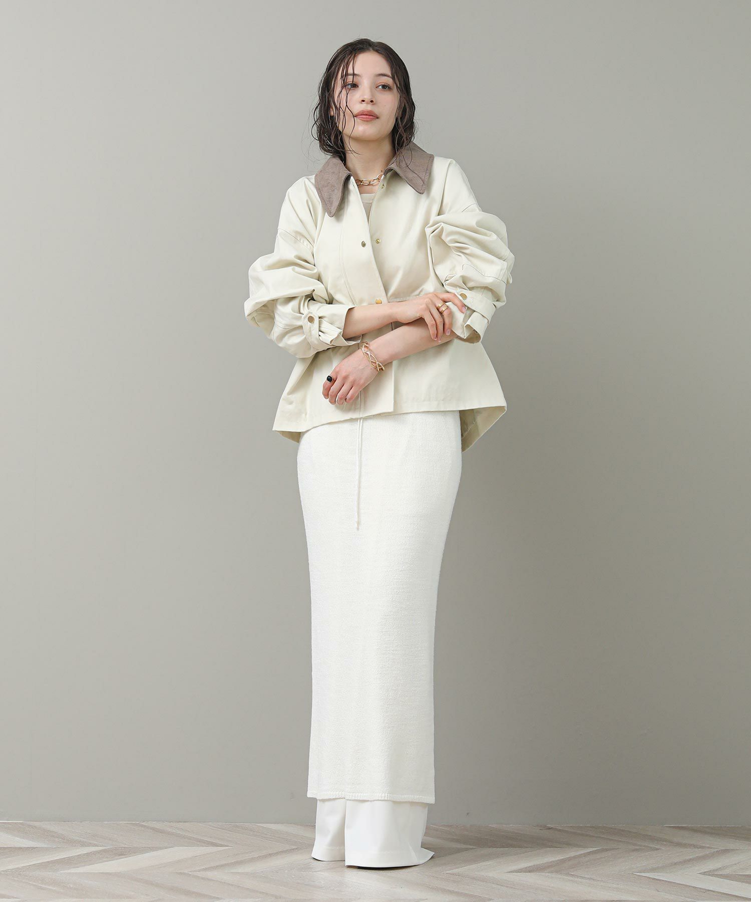 ※着用画像は撮影状況、光の当たり具合で色みが違って見える場合がございます。実際の色みについては、画像一覧の最後に掲載している詳細画像をご参照ください。