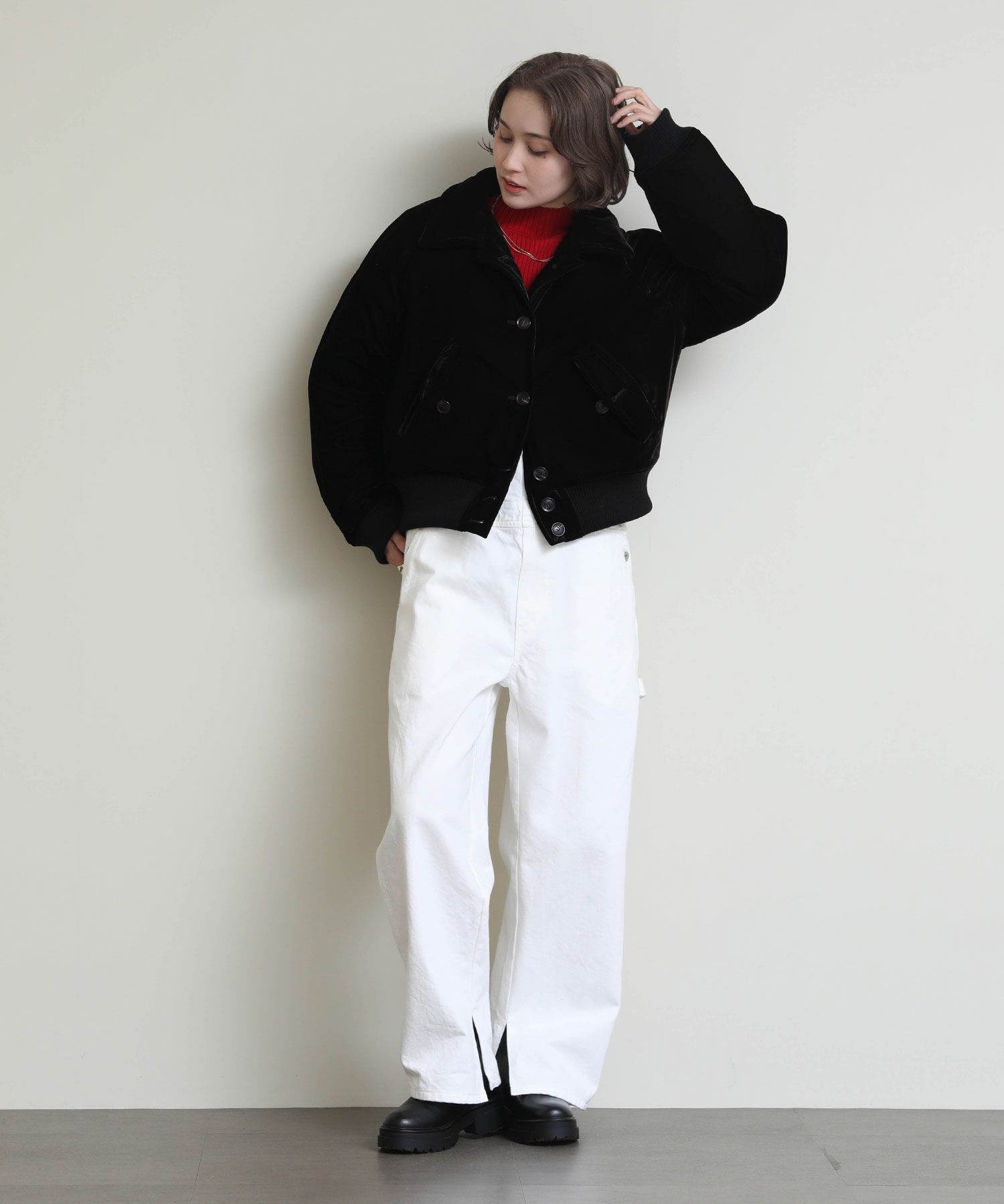 程よいボリューム感で、一枚でトレンドライクな着こなしに仕上がります。すっきりとした丈感なので、ルーズなボトムを合わせるのがおすすめです。フロントのボタンや大き目のポケットがコーディネートのアクセントに。