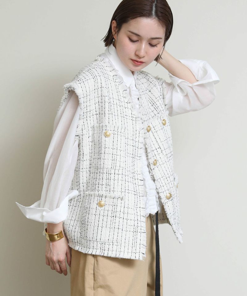 高級感のあるツイード素材のベストが登場。