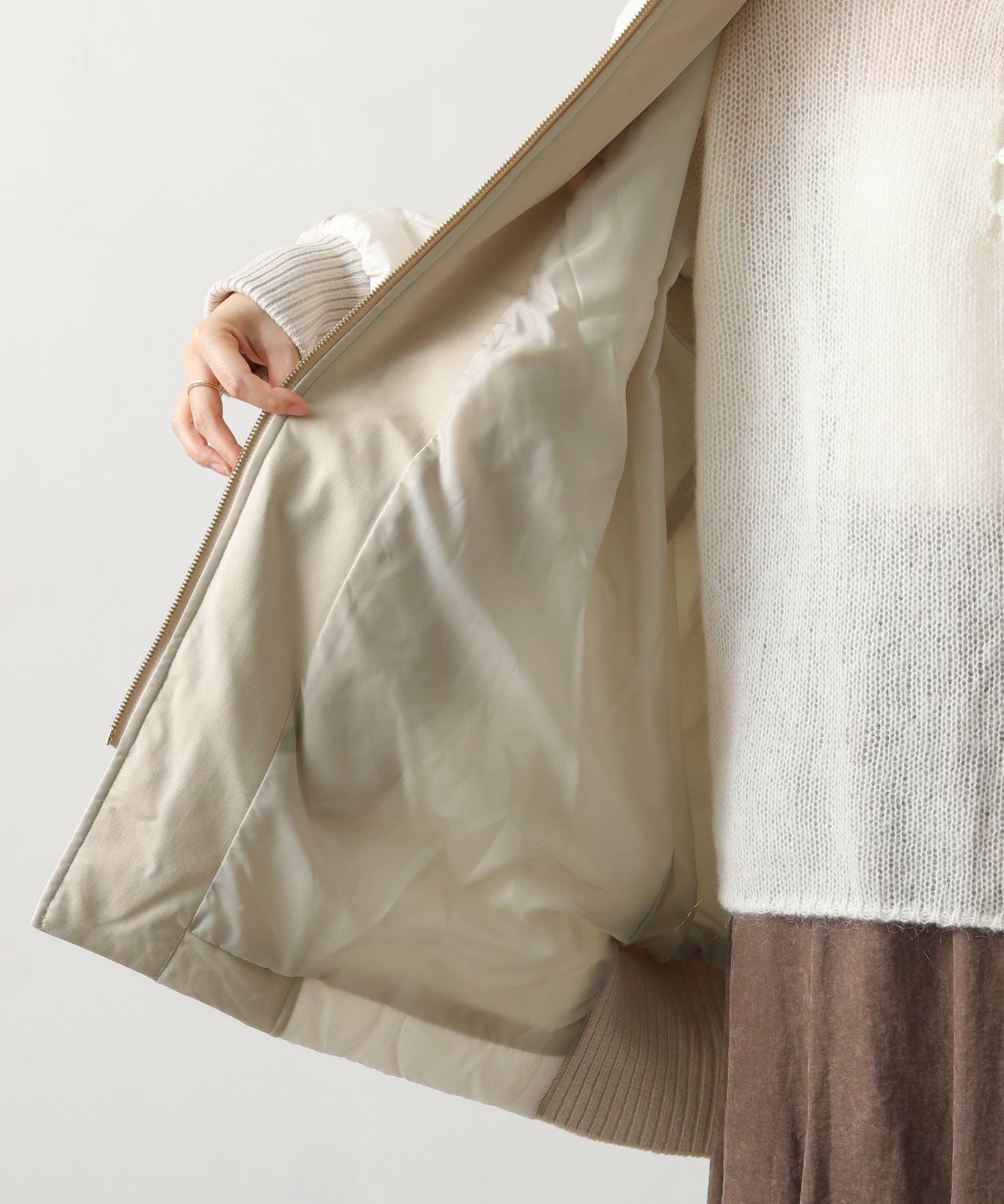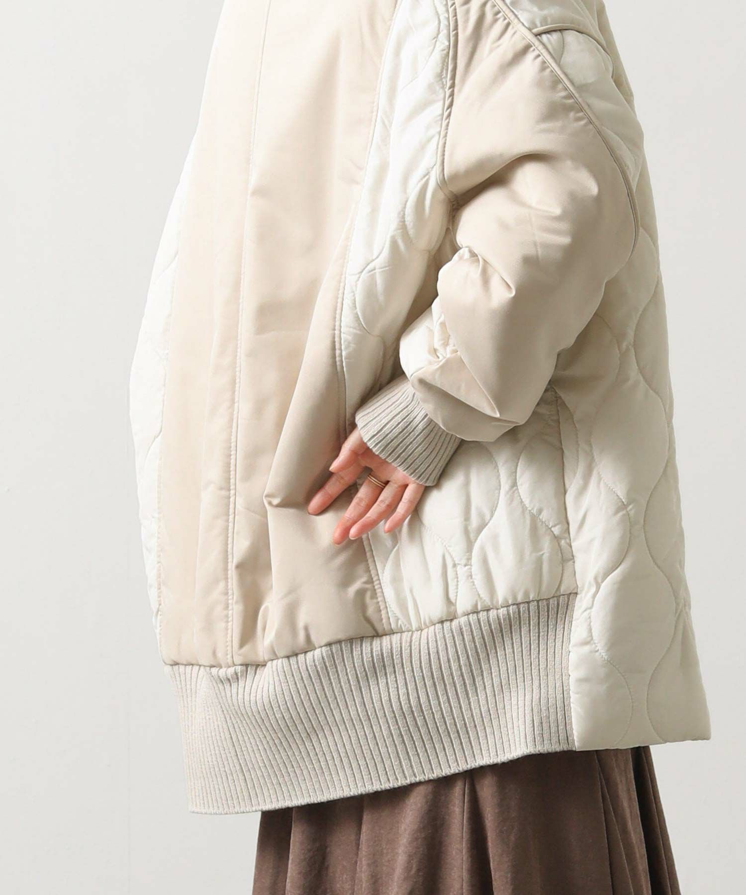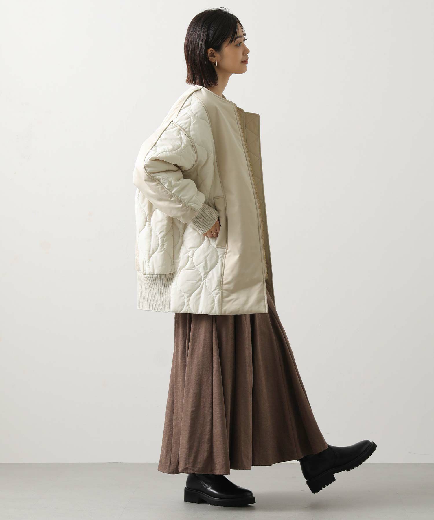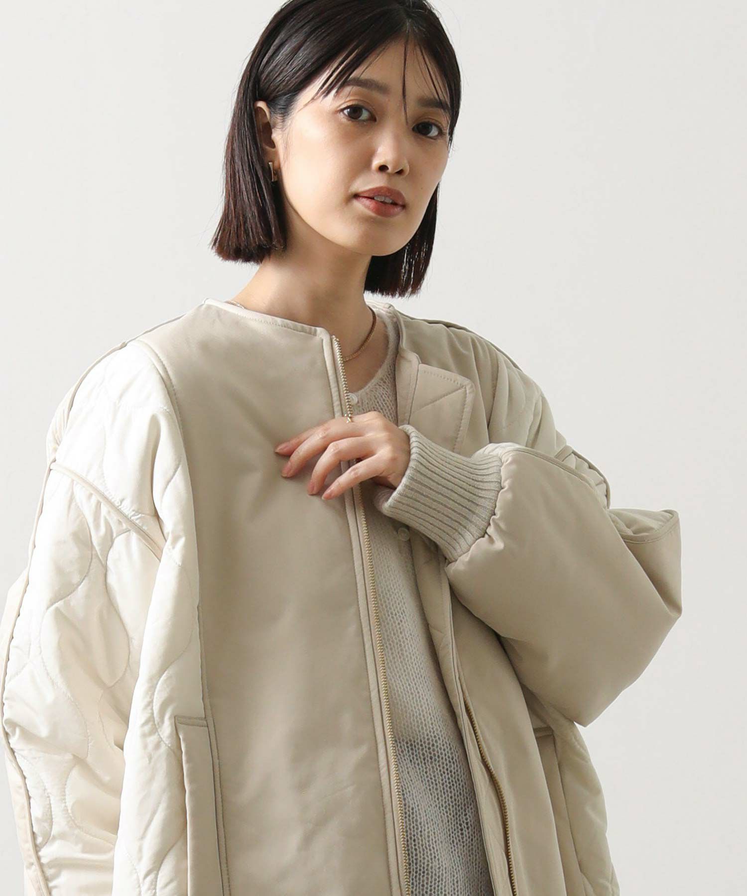 サイドのキルティングの切り替えがポイントの中綿コート。