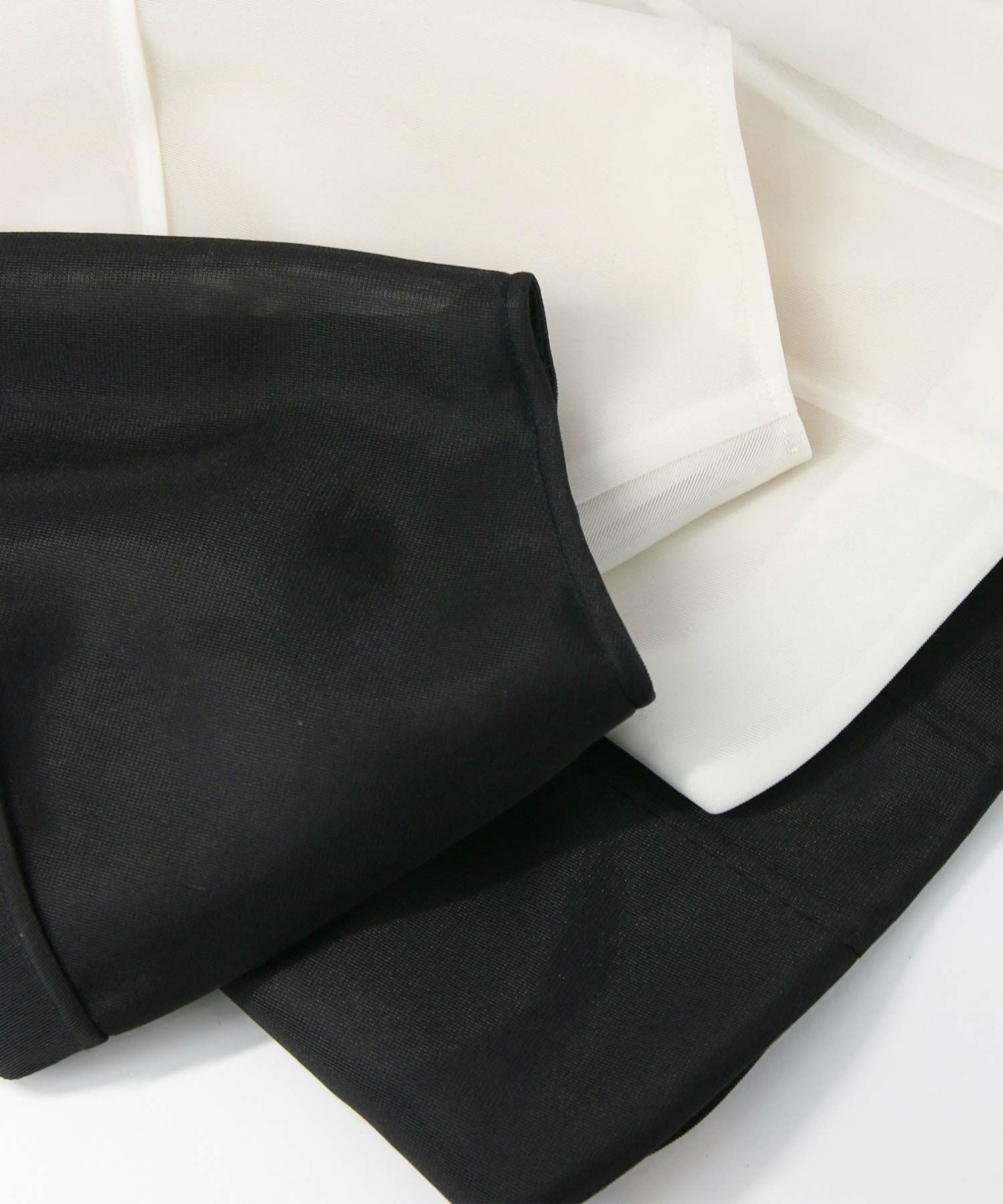 張り感と程よい厚みがありながらシアーで軽く、ストレッチ性も兼ね備えた新感覚素材を使用。