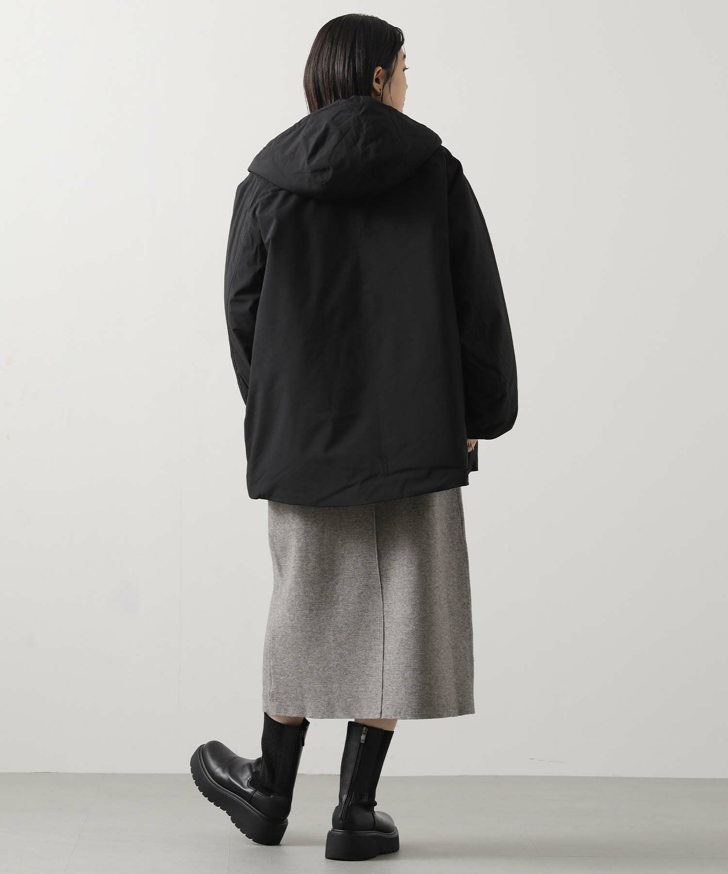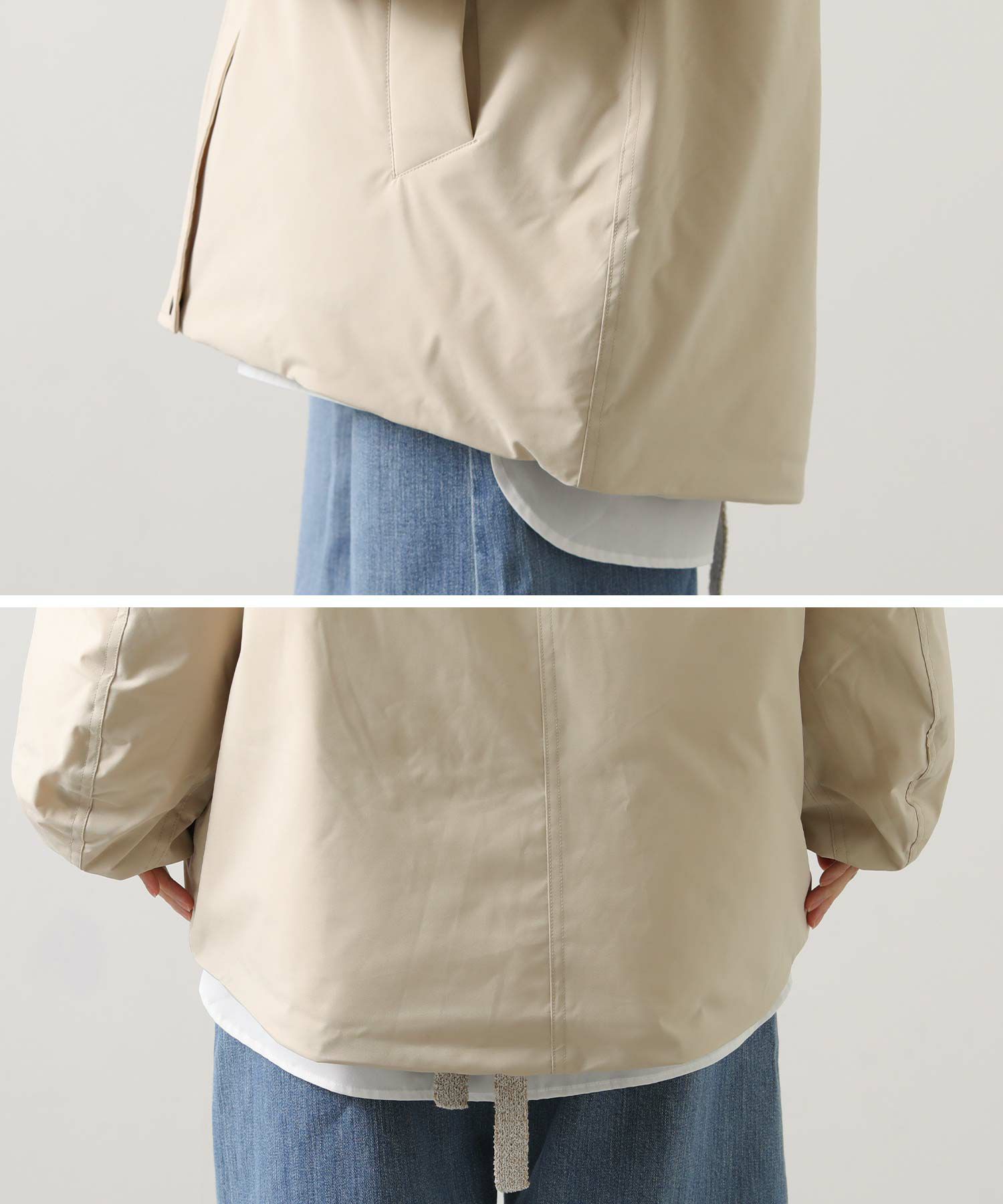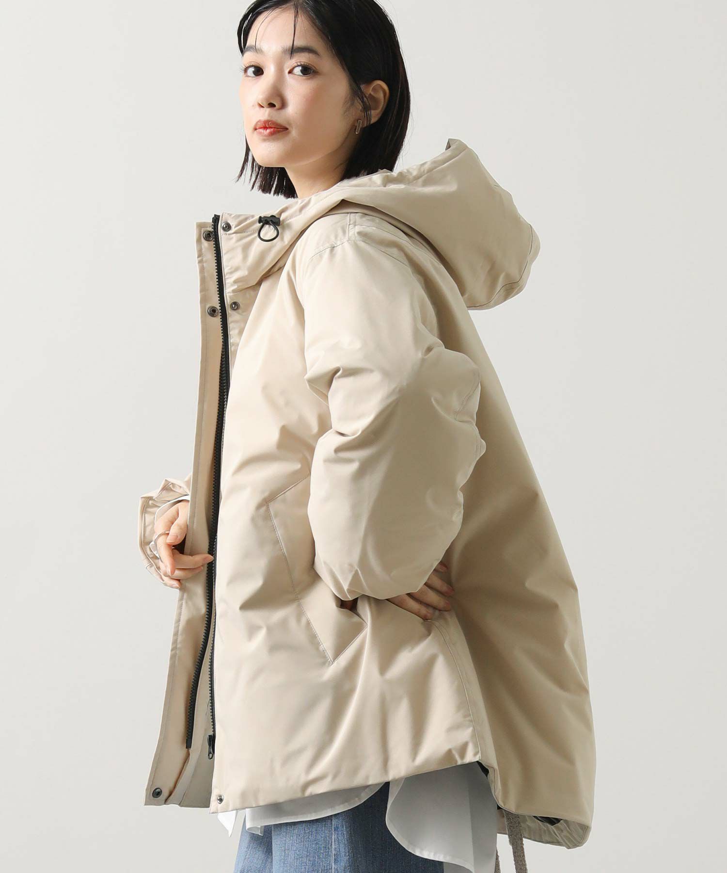 フード先にコードディティールを施し、程よくカジュアルなテイストをプラスしました。