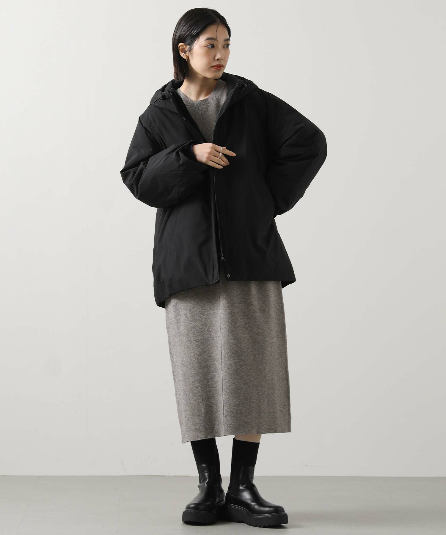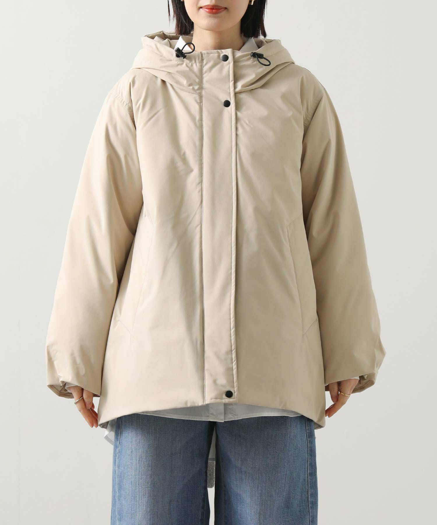 ダウンならではのふんわりとしたボリューム感がありながらも、スッキリとしたシルエット。