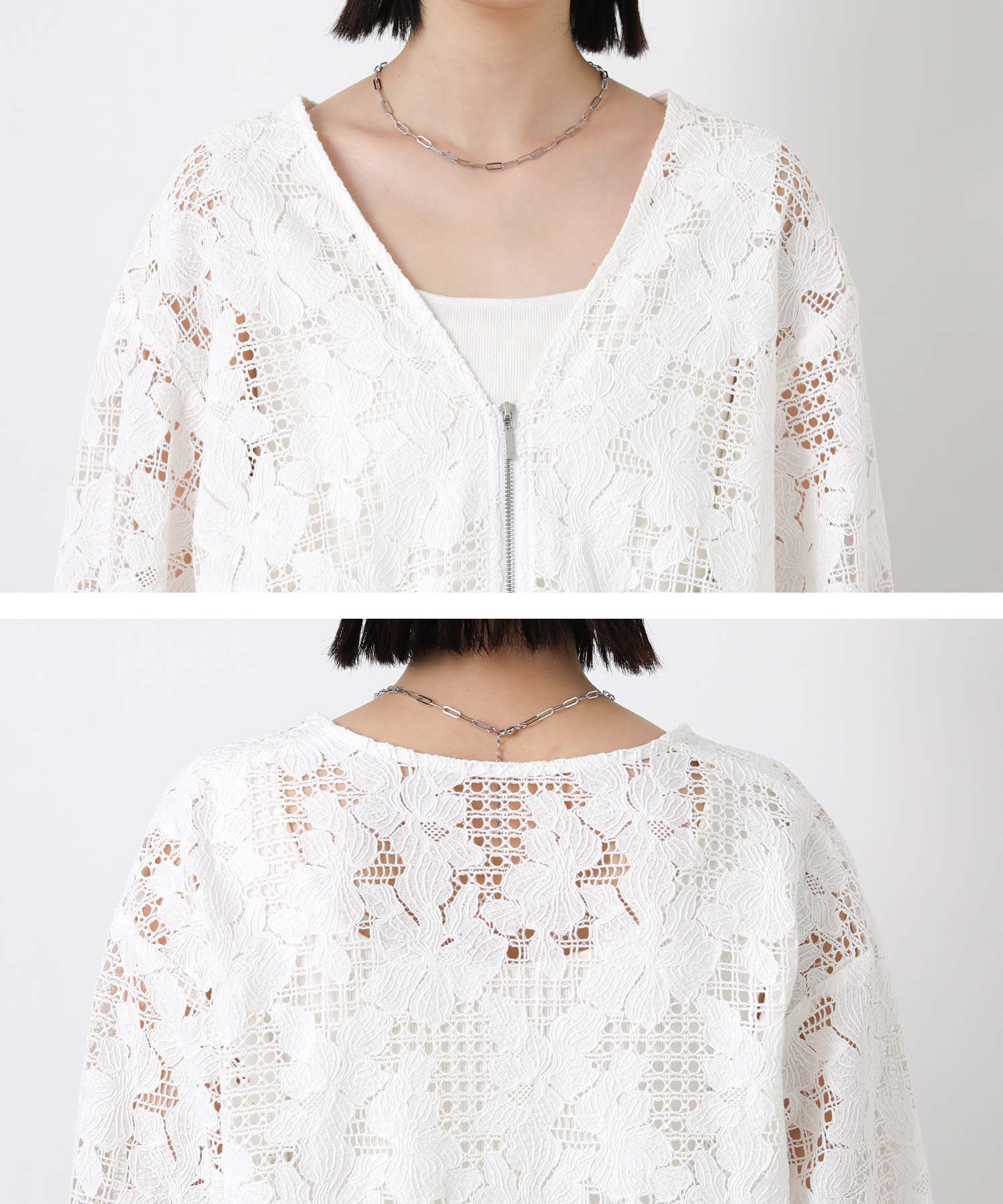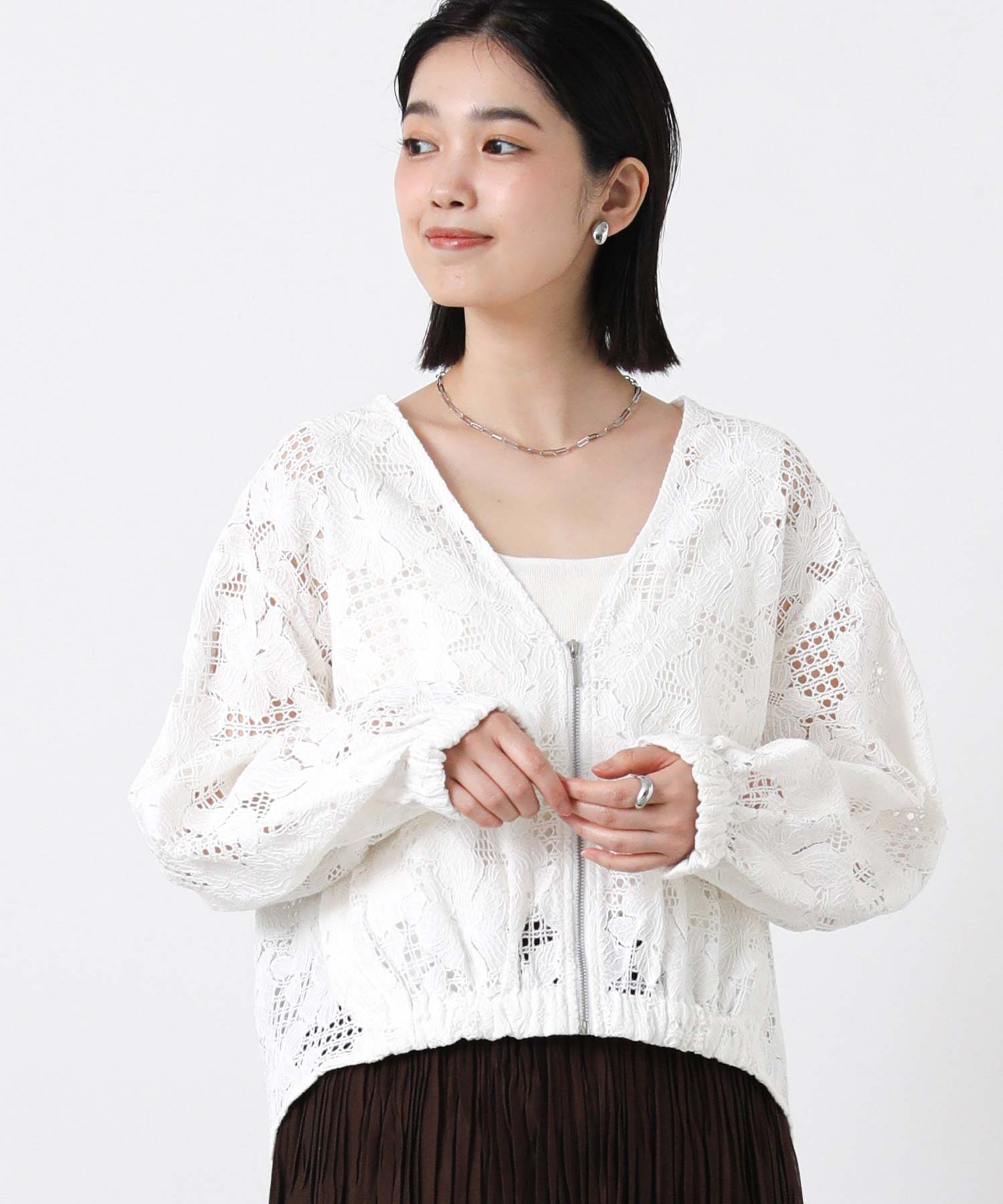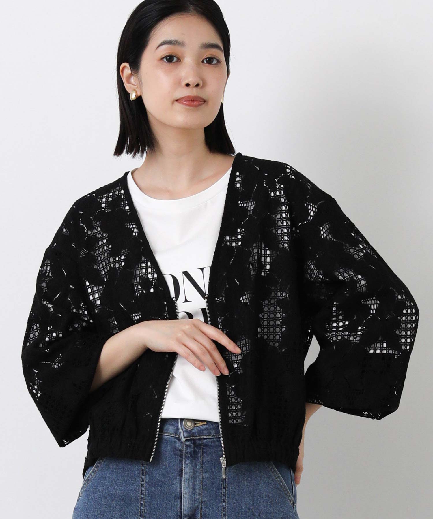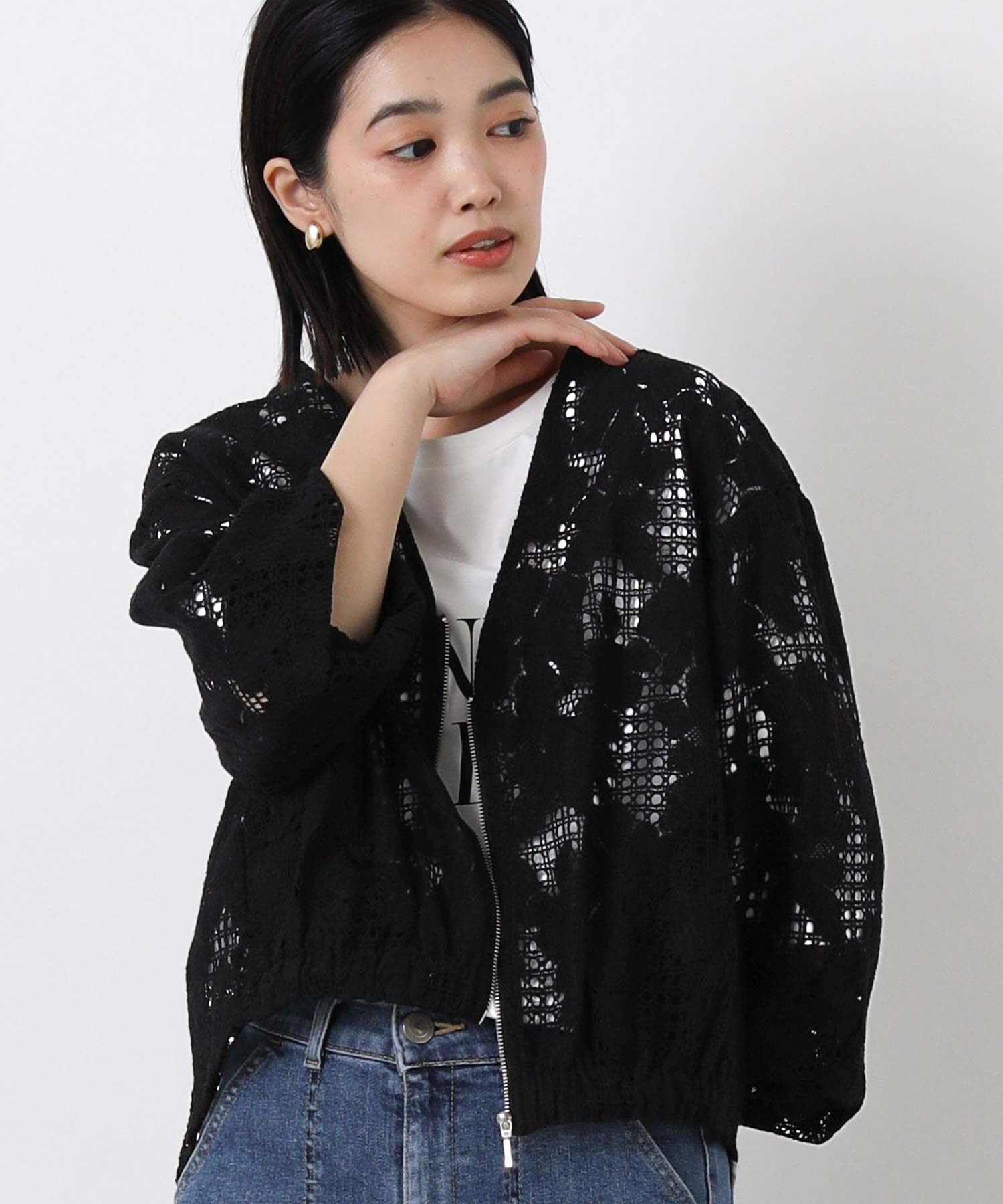 程よい透け感で抜け感のあるスタイルを叶えてくれる、コットンレースブルゾン。