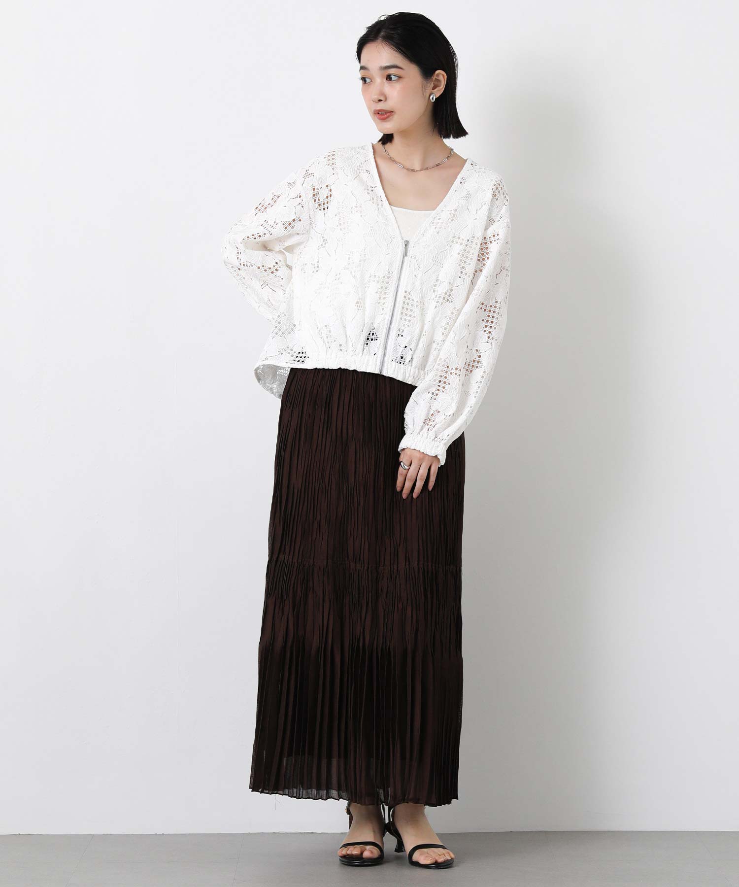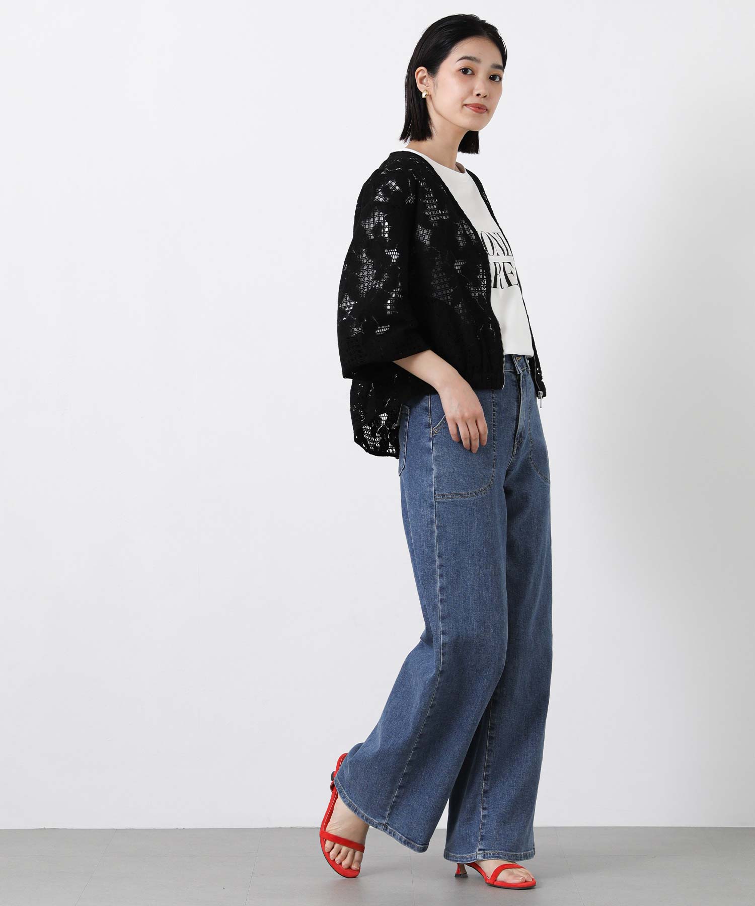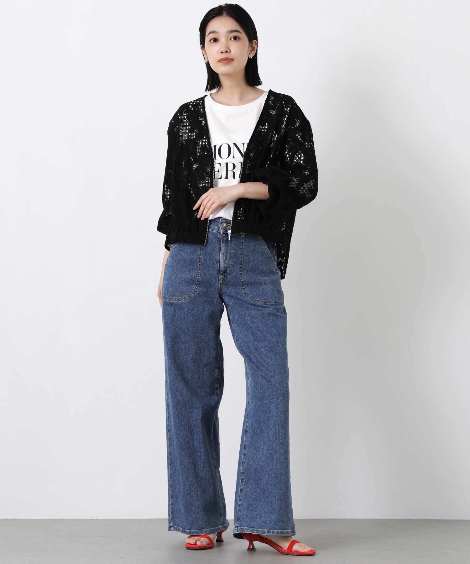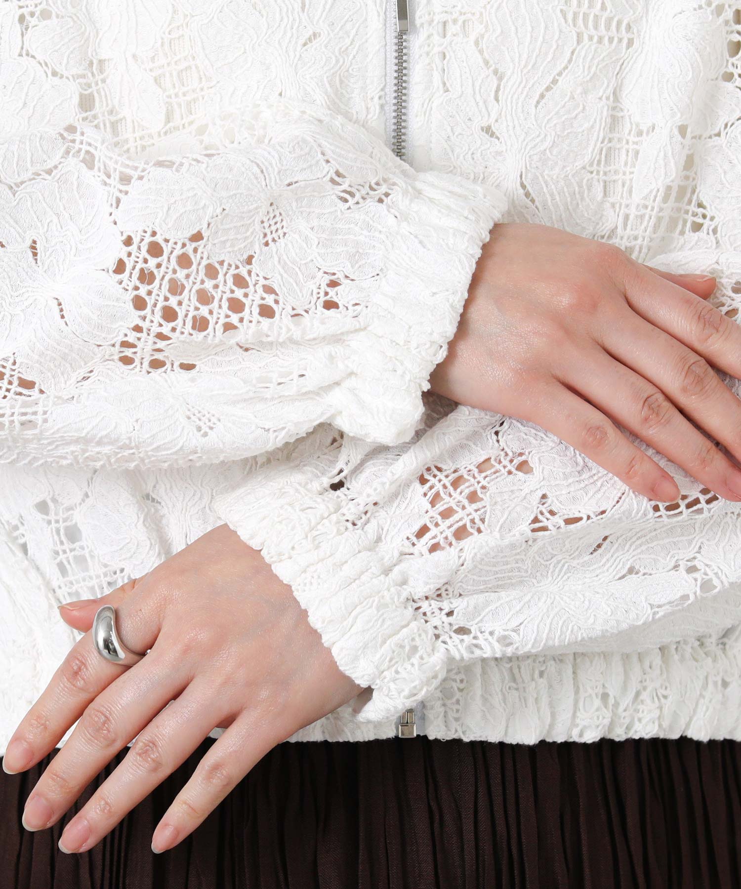 程よい透け感で抜け感のあるスタイルを叶えてくれる、コットンレースブルゾン。